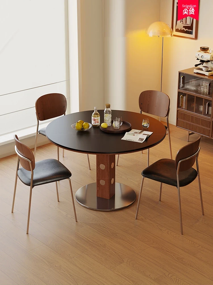 Modern Minimalist Round Dining Table - Vintage Chinese Style Solid Wood with Rock Plate, Perfect for Small Spaces, Elegant and Luxurious Design for Your Home