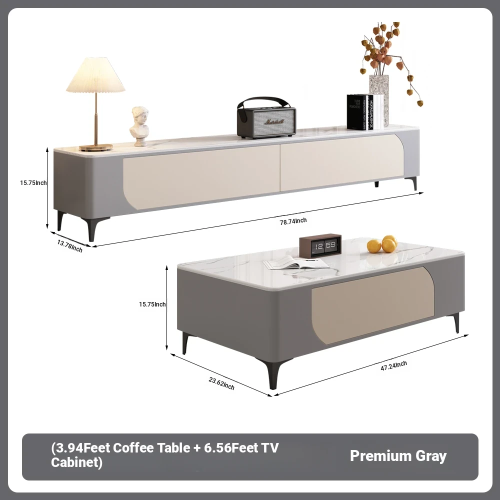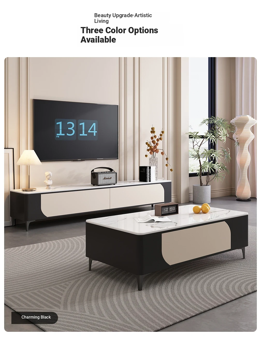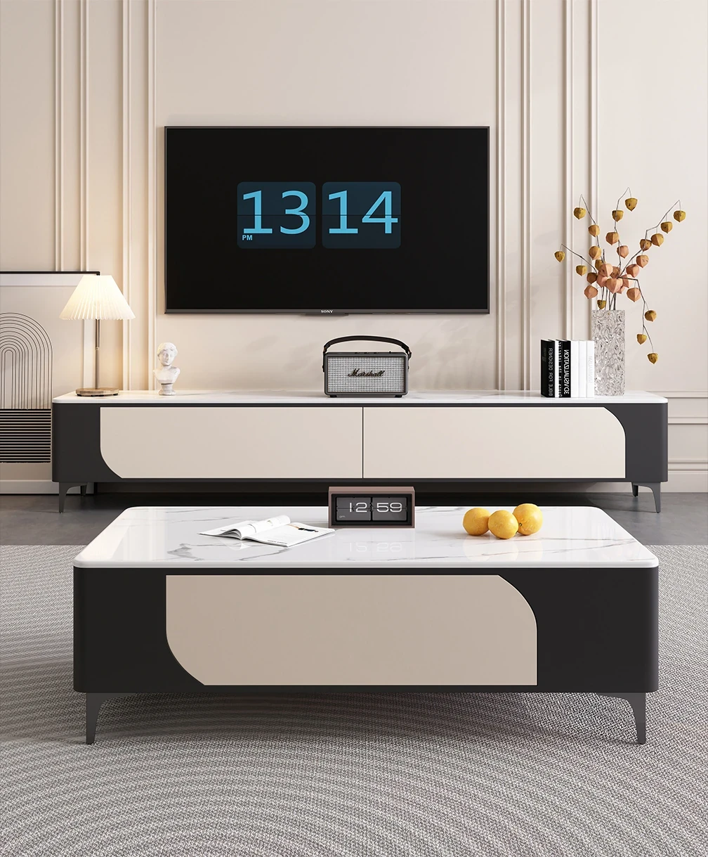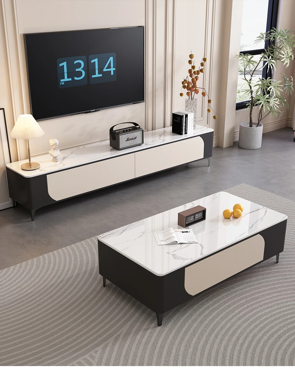 2025 Minimalist Luxury Marble Coffee Table & TV Stand - Cat Scratch Resistant, Perfect for Cozy Living Rooms with a Creamy Aesthetic