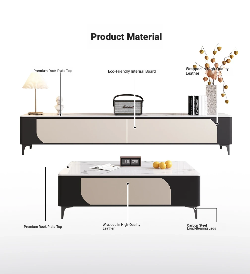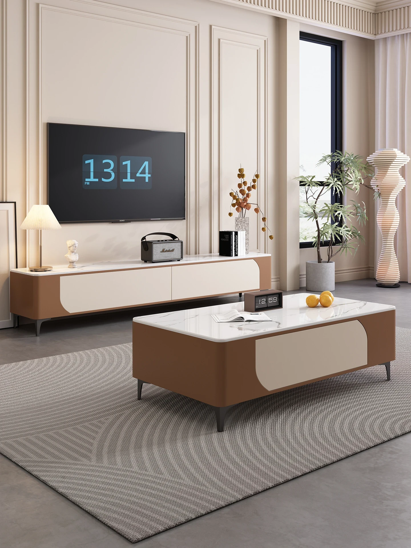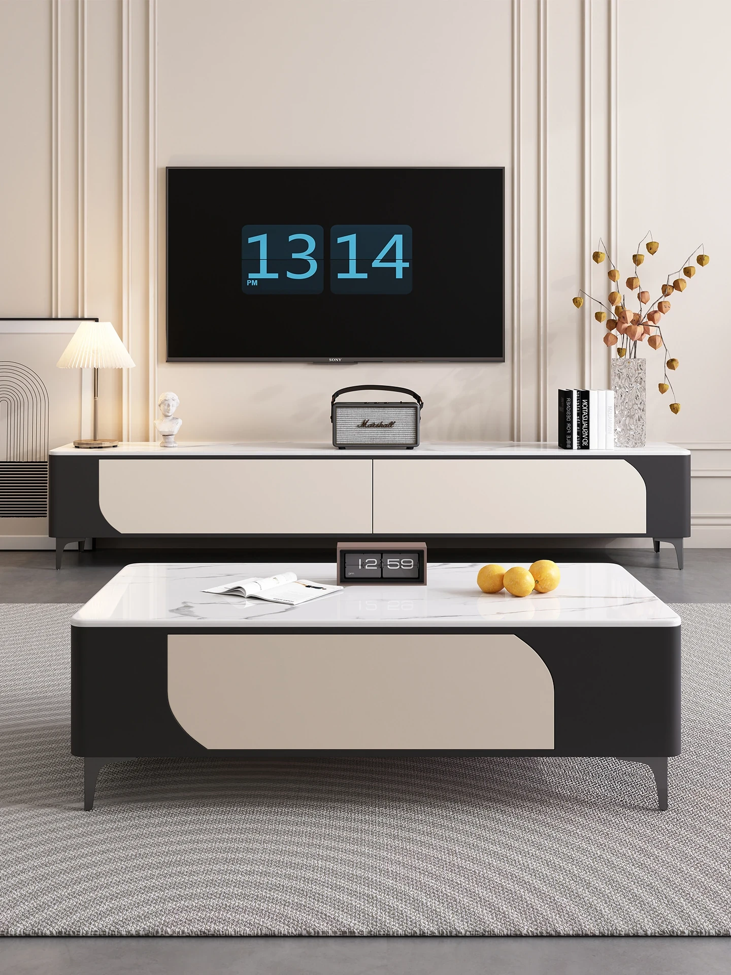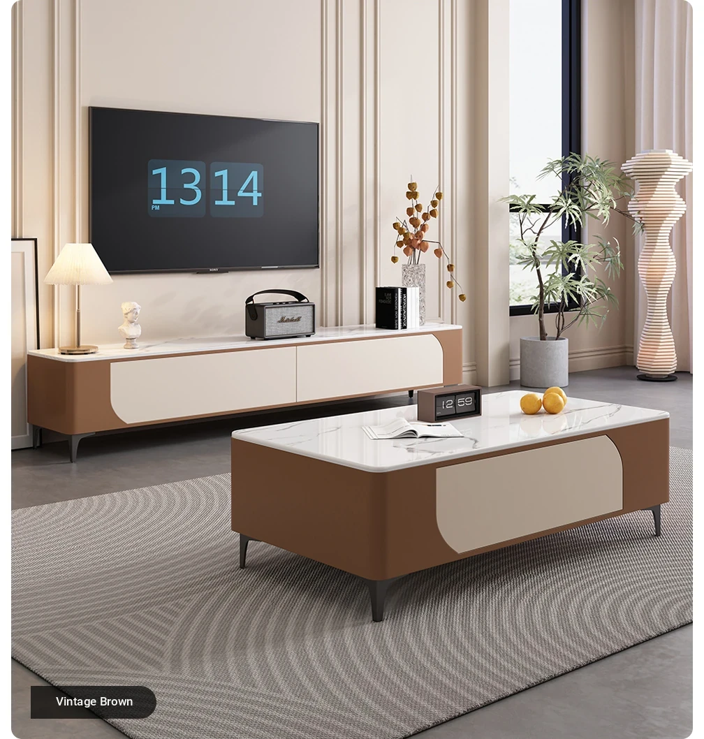 2025 Minimalist Luxury Marble Coffee Table & TV Stand - Cat Scratch Resistant, Perfect for Cozy Living Rooms with a Creamy Aesthetic