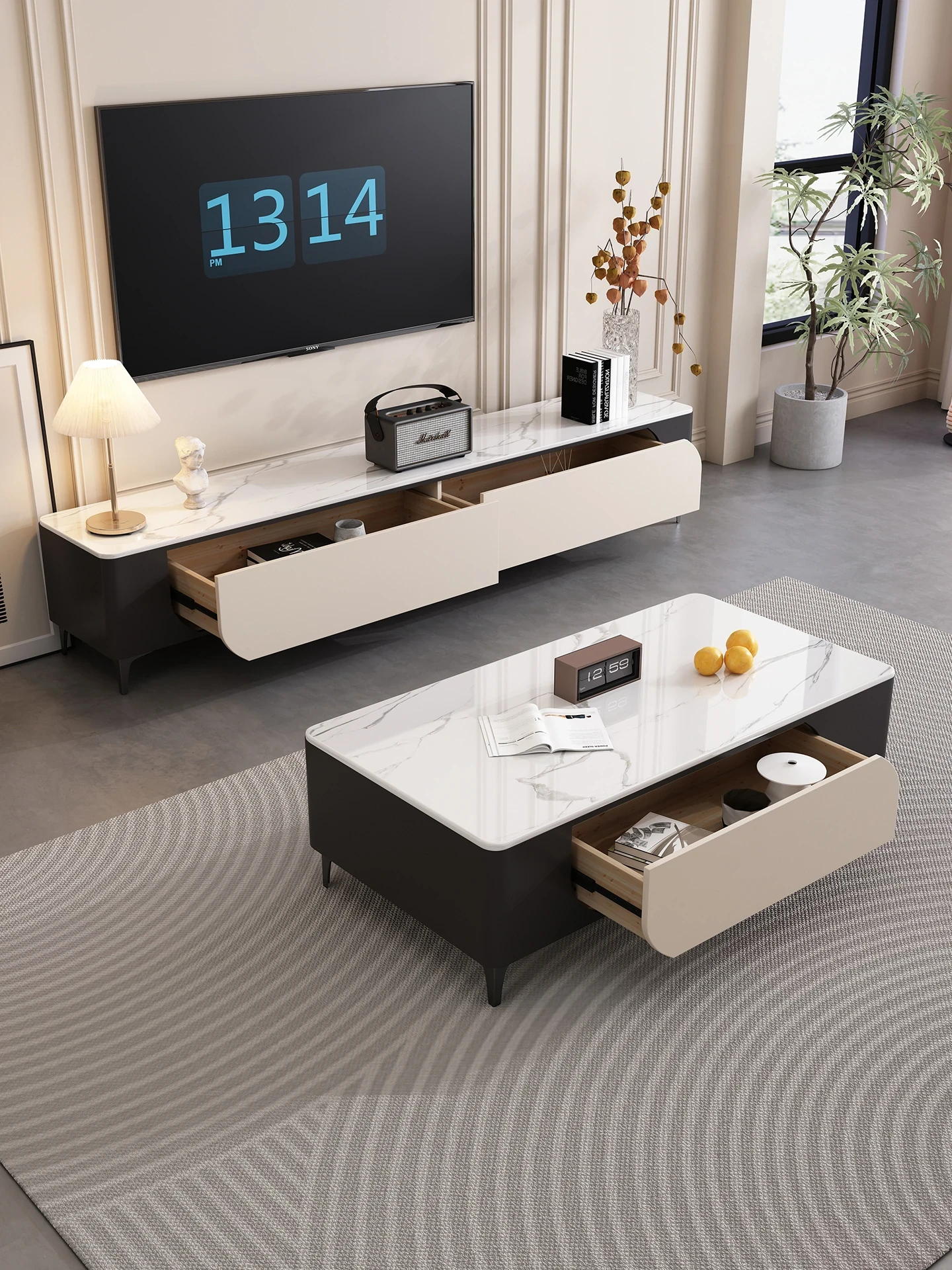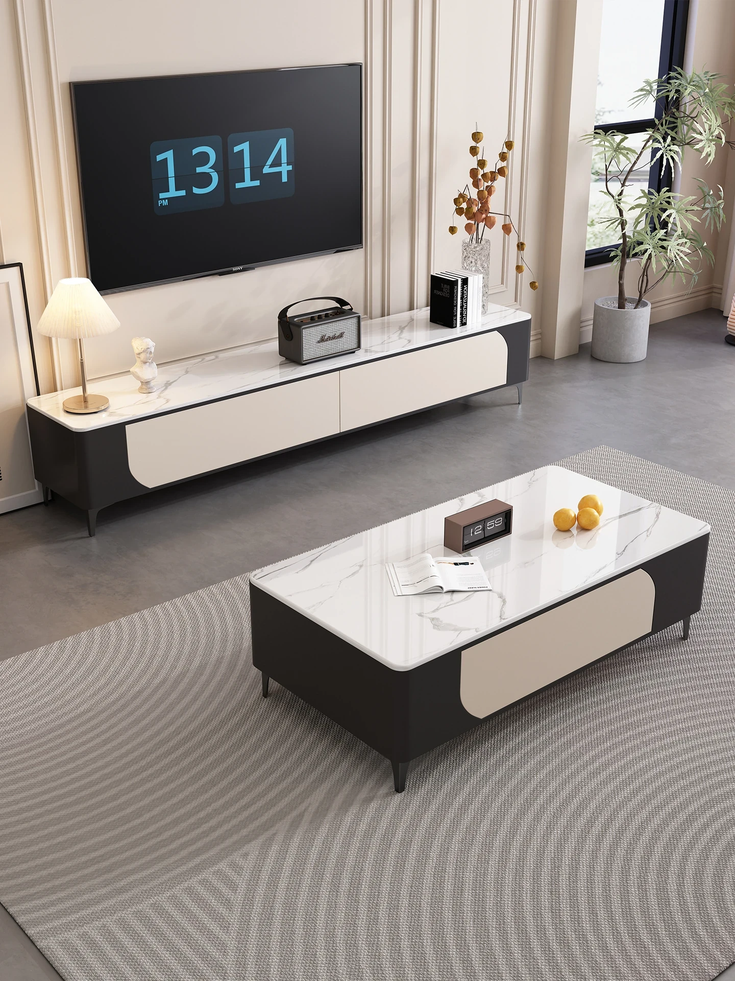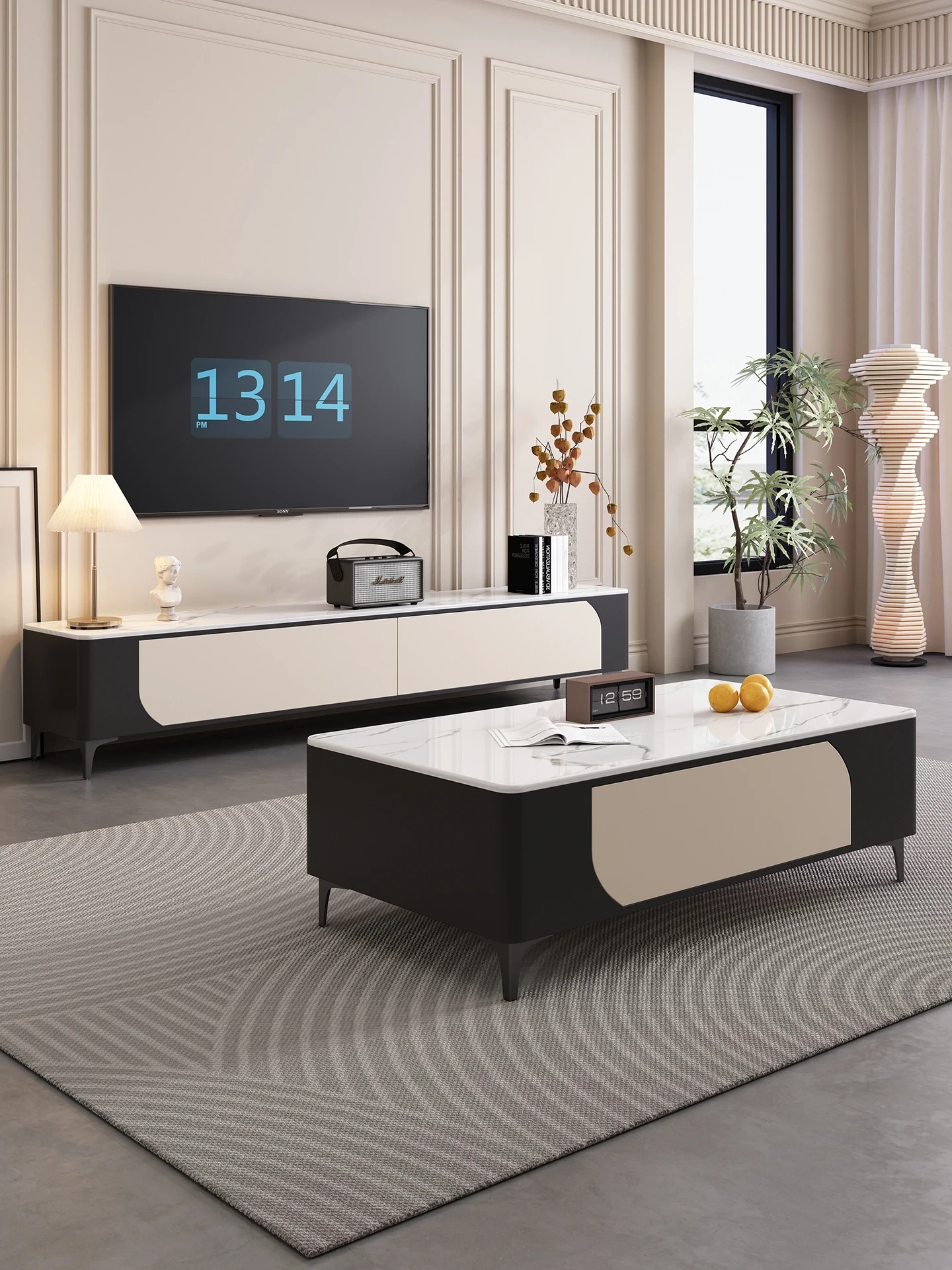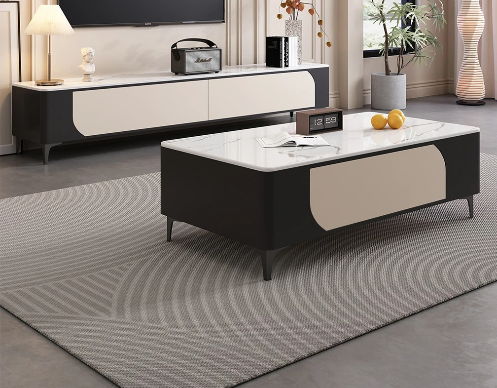 2025 Minimalist Luxury Marble Coffee Table & TV Stand - Cat Scratch Resistant, Perfect for Cozy Living Rooms with a Creamy Aesthetic