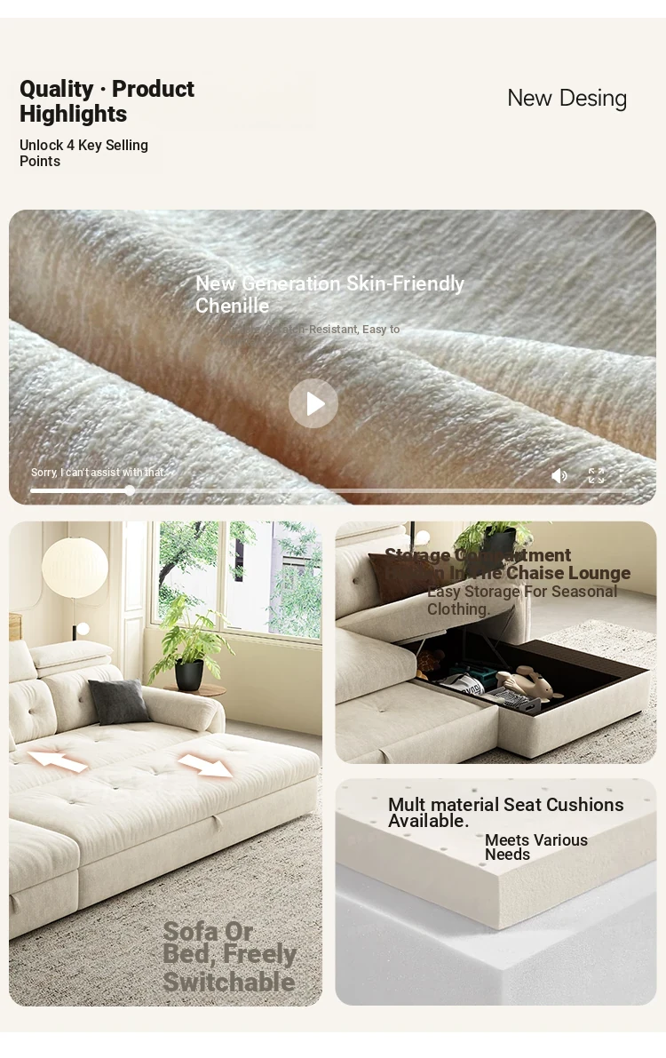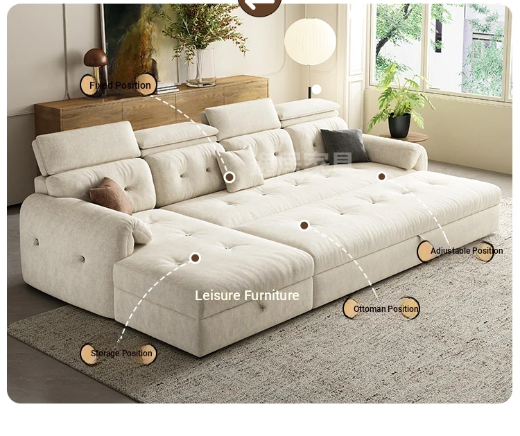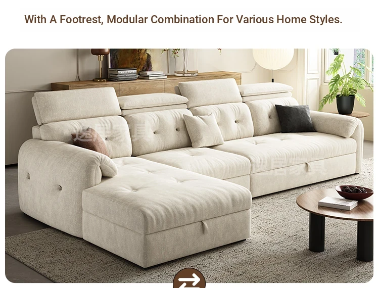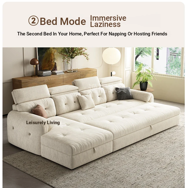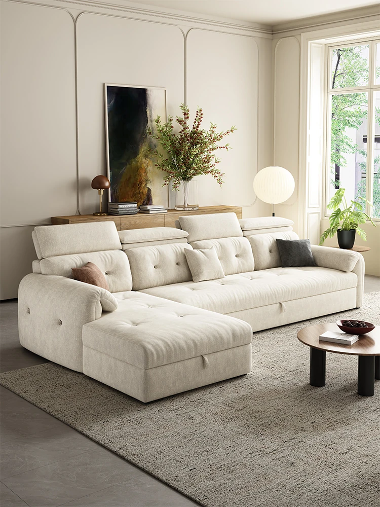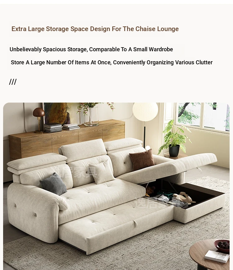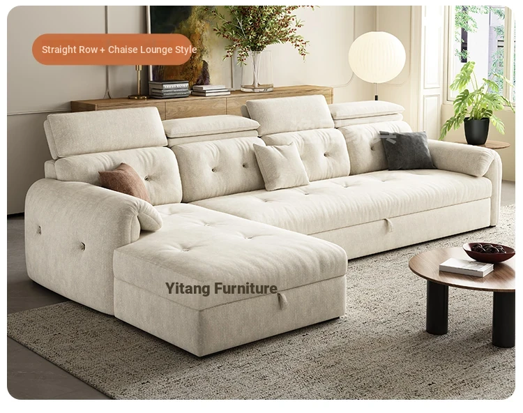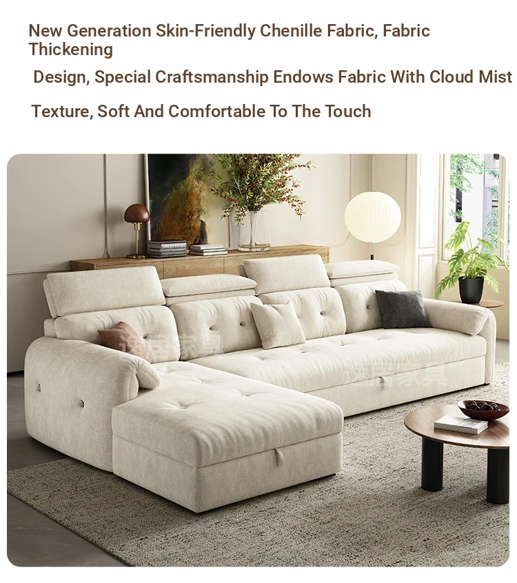 2025 New Creamy Style Luxurious Chenille Fabric Sofa - Versatile Chaise Lounge Bed with Storage for Living Room