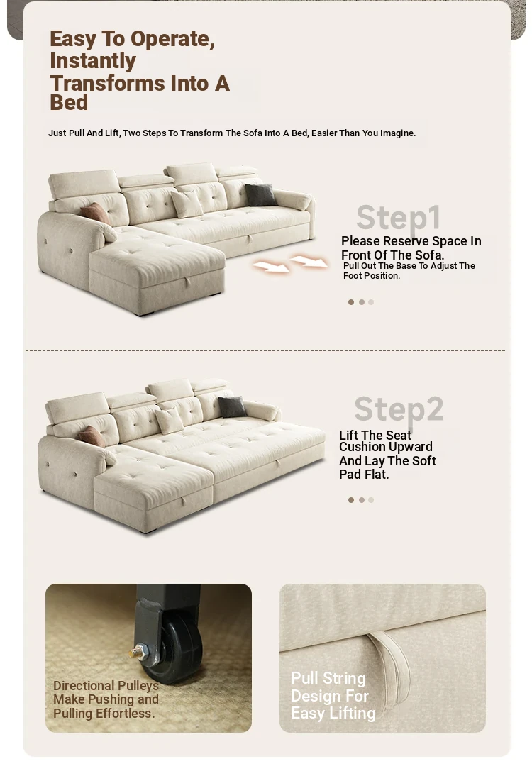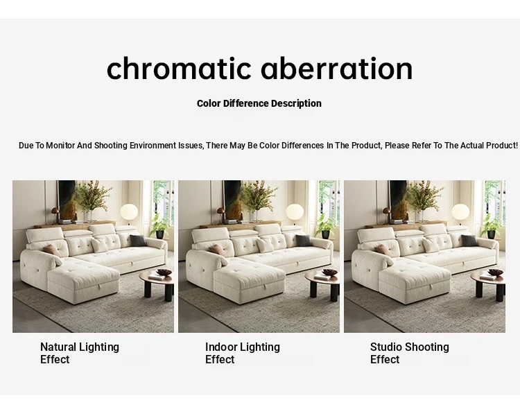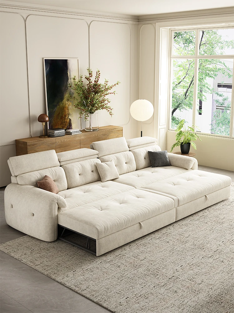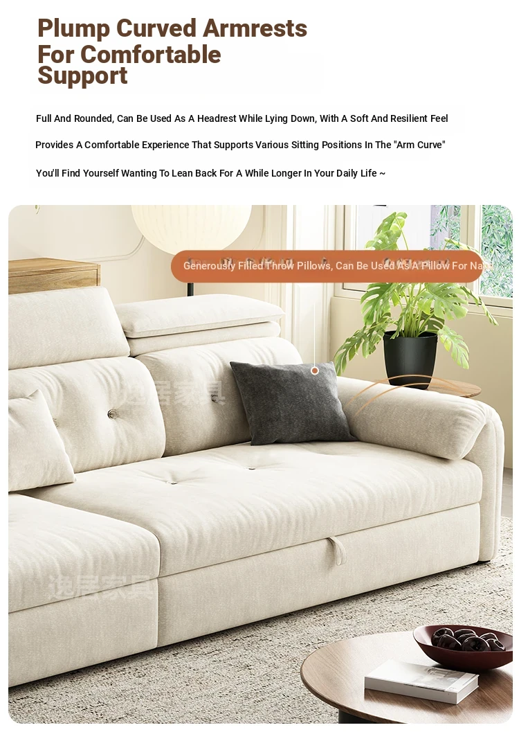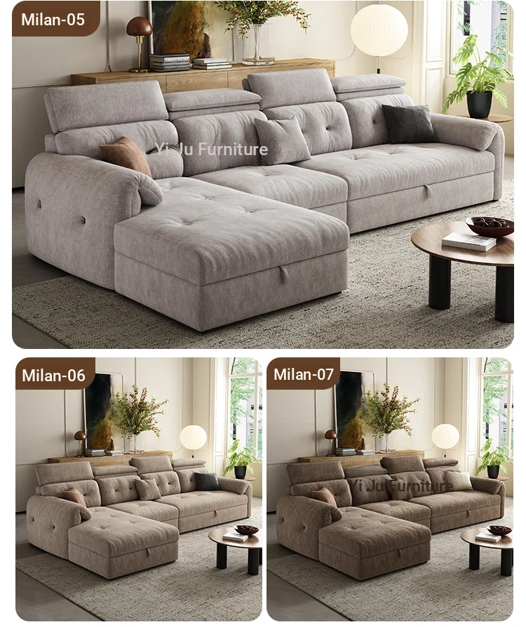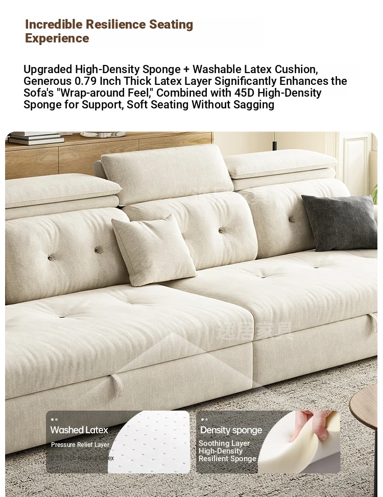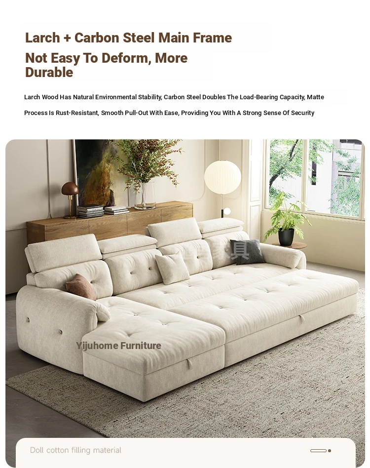 2025 New Creamy Style Luxurious Chenille Fabric Sofa - Versatile Chaise Lounge Bed with Storage for Living Room