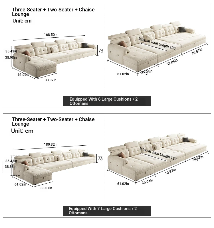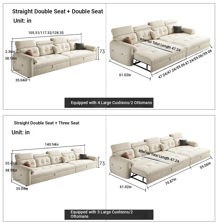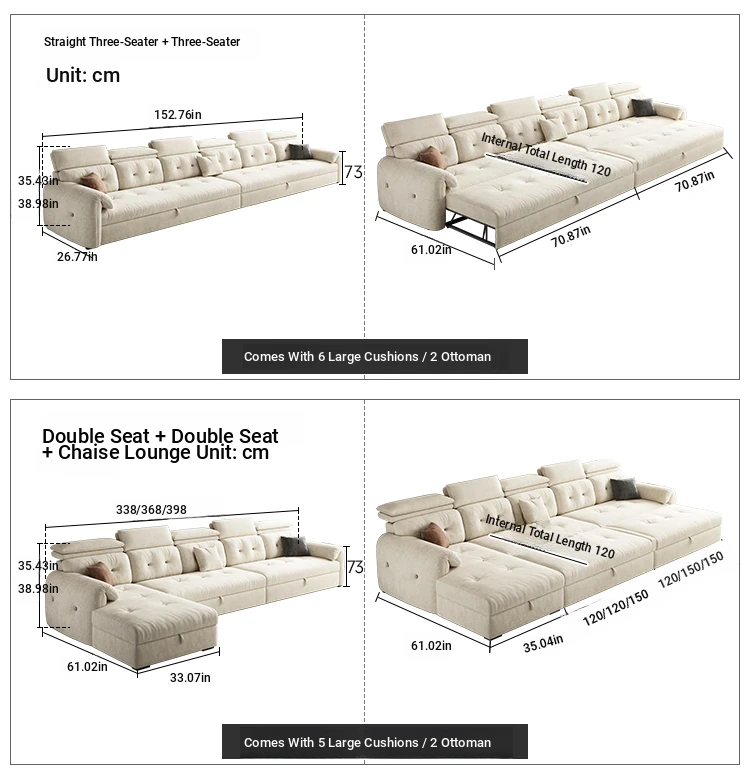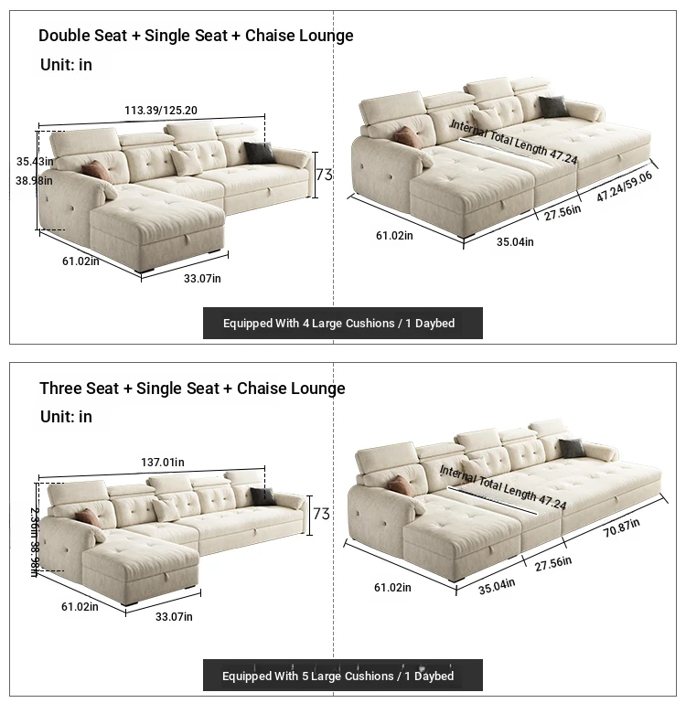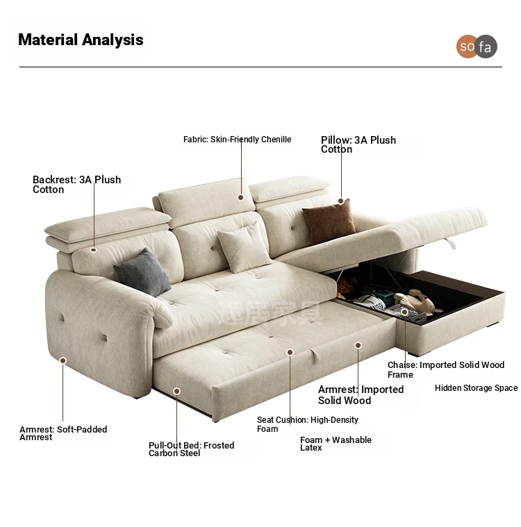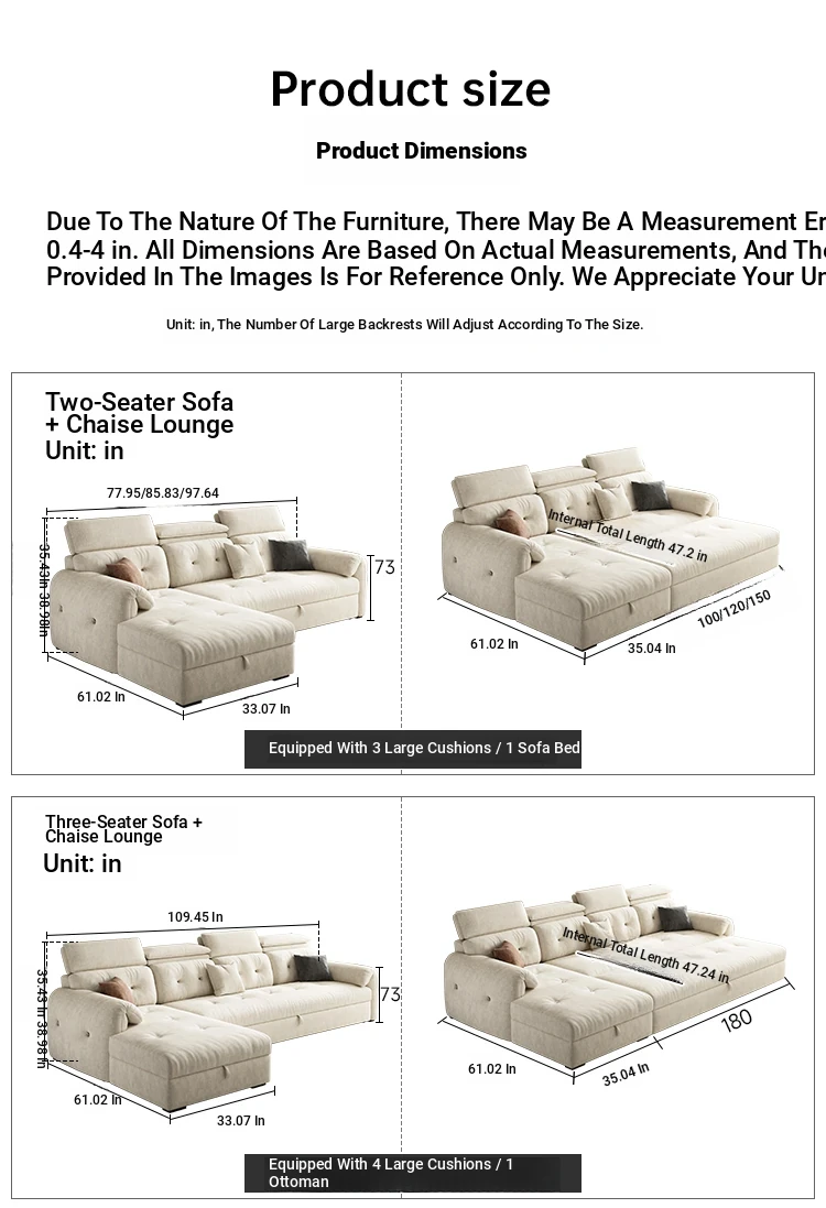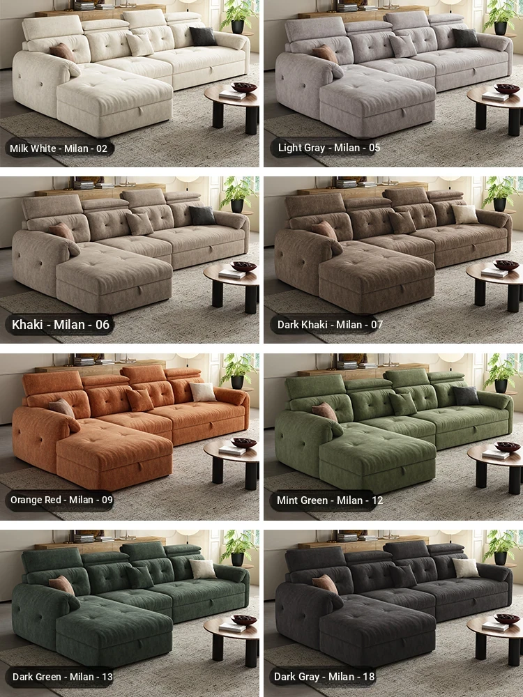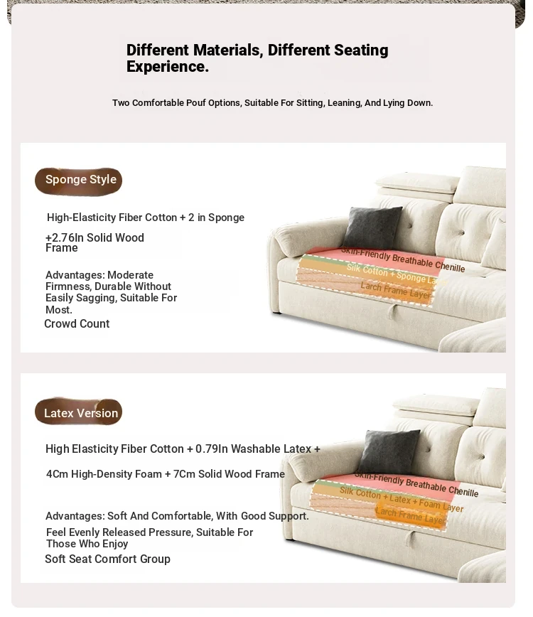 2025 New Creamy Style Luxurious Chenille Fabric Sofa - Versatile Chaise Lounge Bed with Storage for Living Room