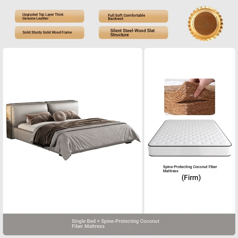 Single bed + Coconut Palm mattress (Italian nedifen leather + mute row skeleton)
