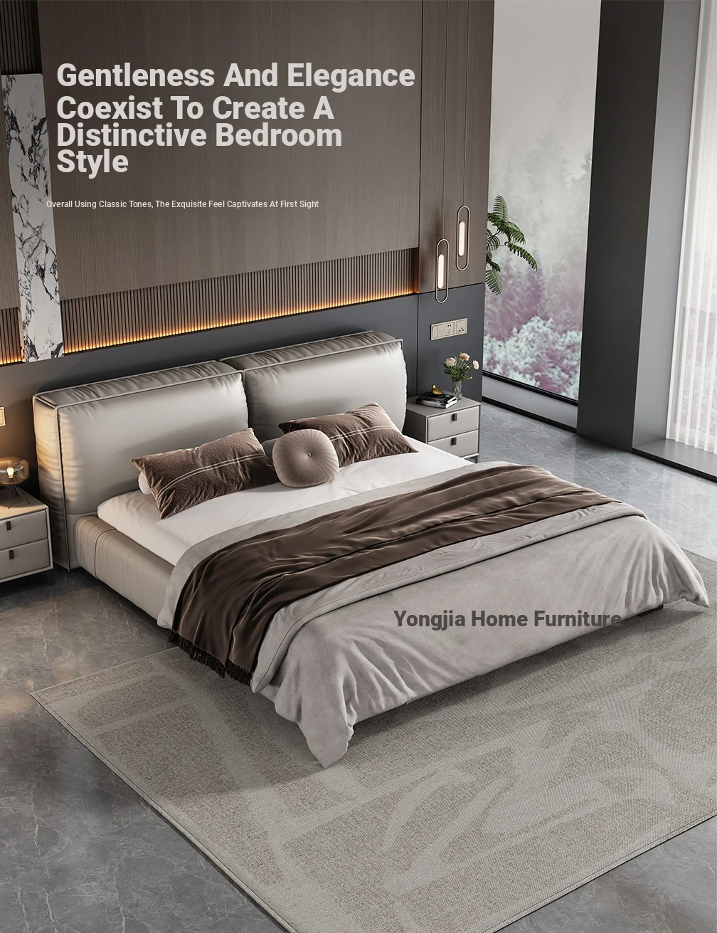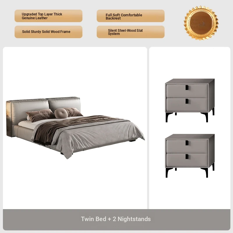 Single bed + two bedside tables (Italian nedifen leather + mute row skeleton)