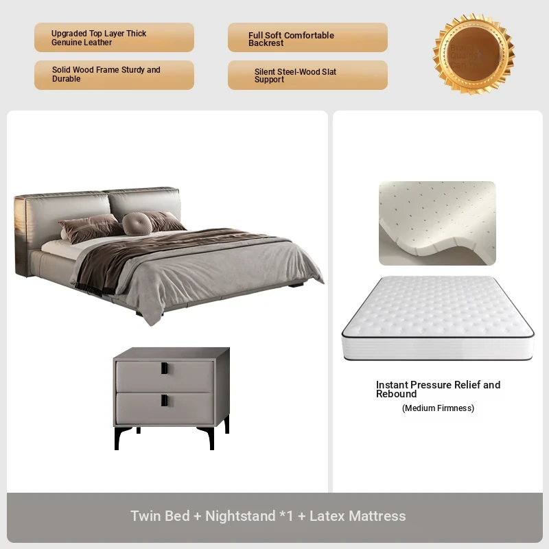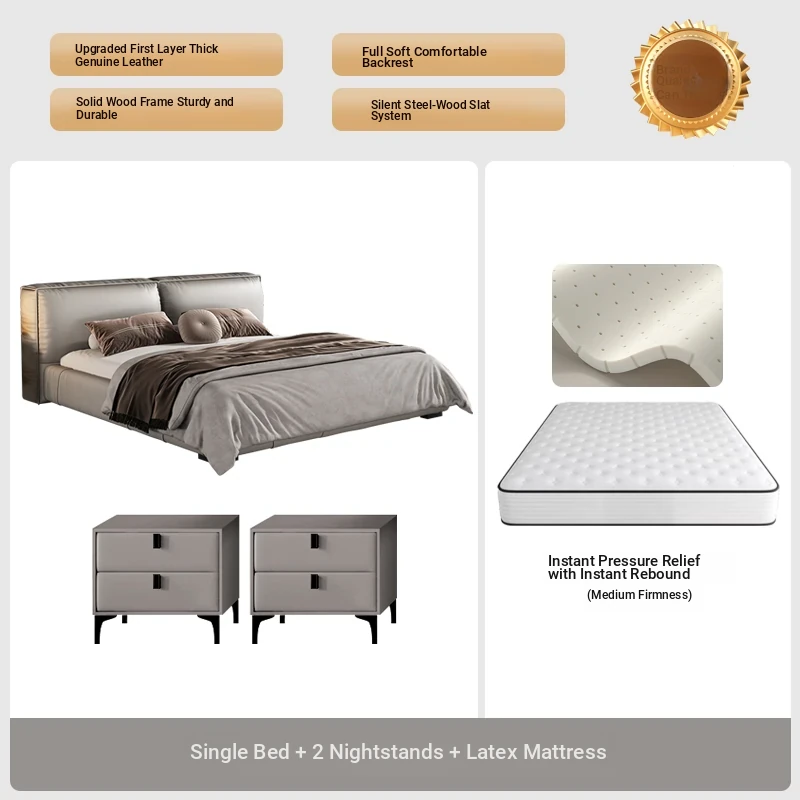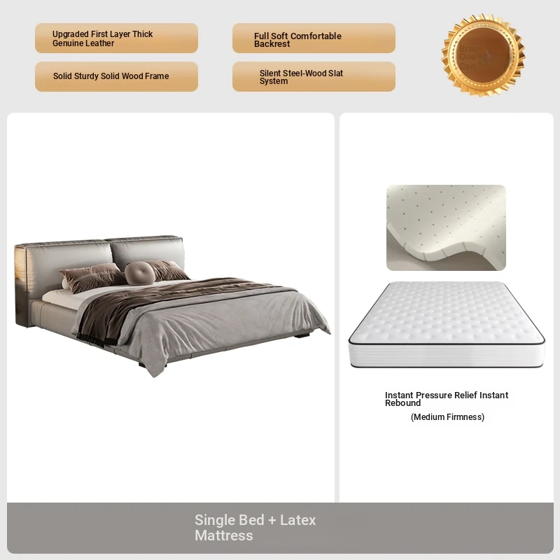 Single bed + Latex Mattress (Italian nedifen leather + silent row skeleton)