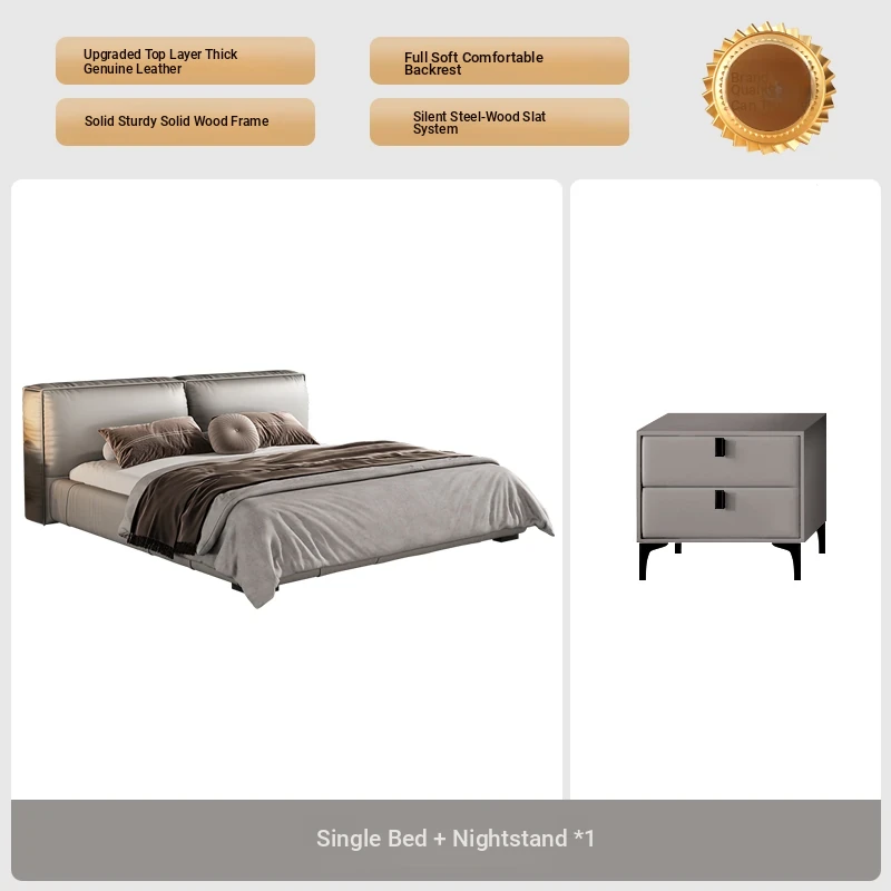 Single bed + one bedside table (Italian nedifen leather + mute row skeleton)