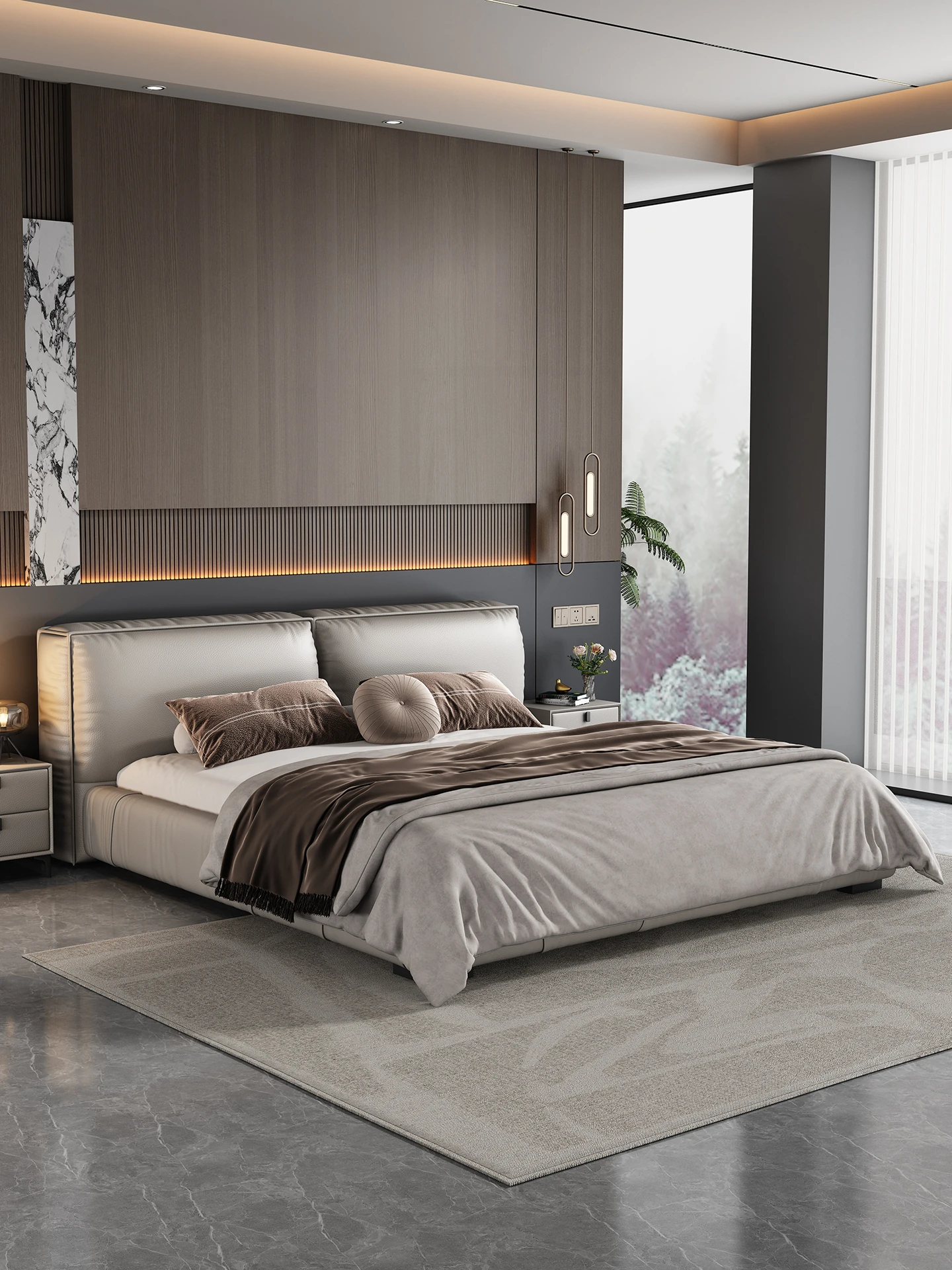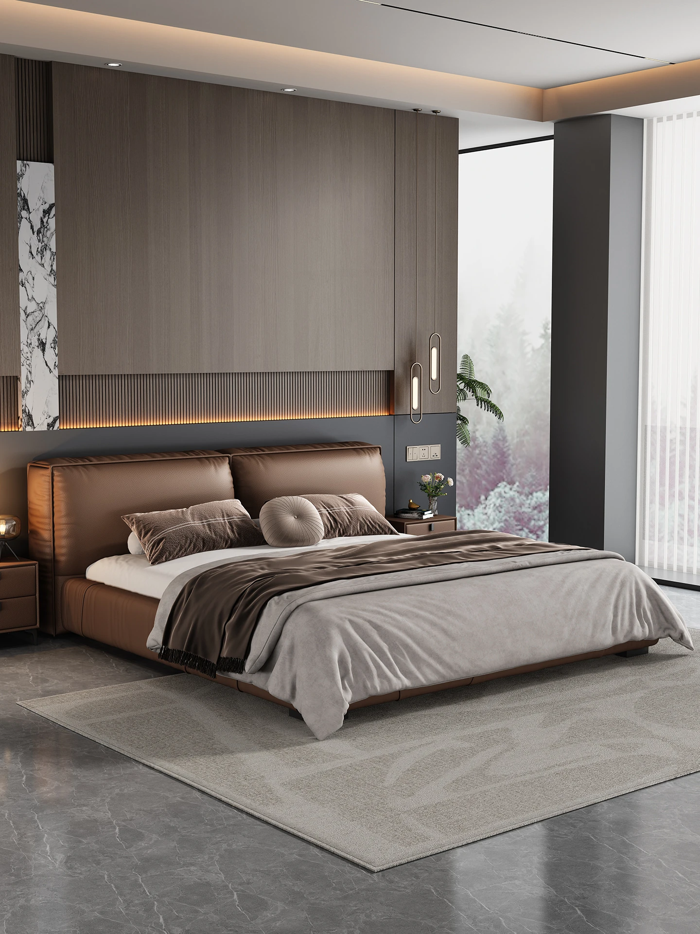 Single bed + Coconut Palm mattress + two bedside tables (Italian nedifen leather + mute row skeleton)