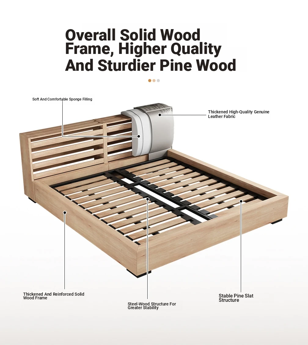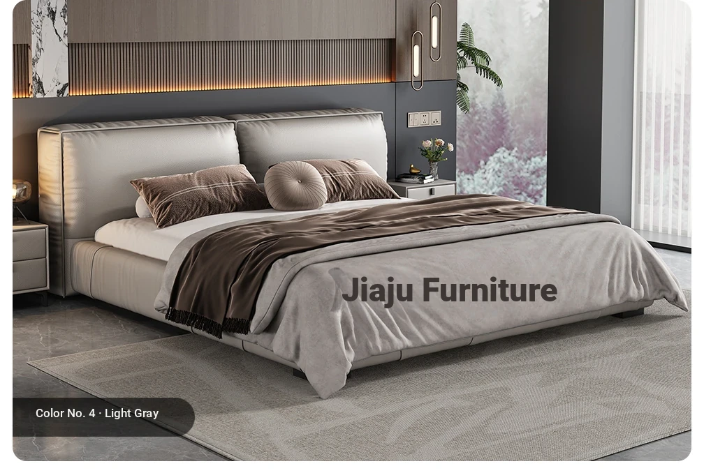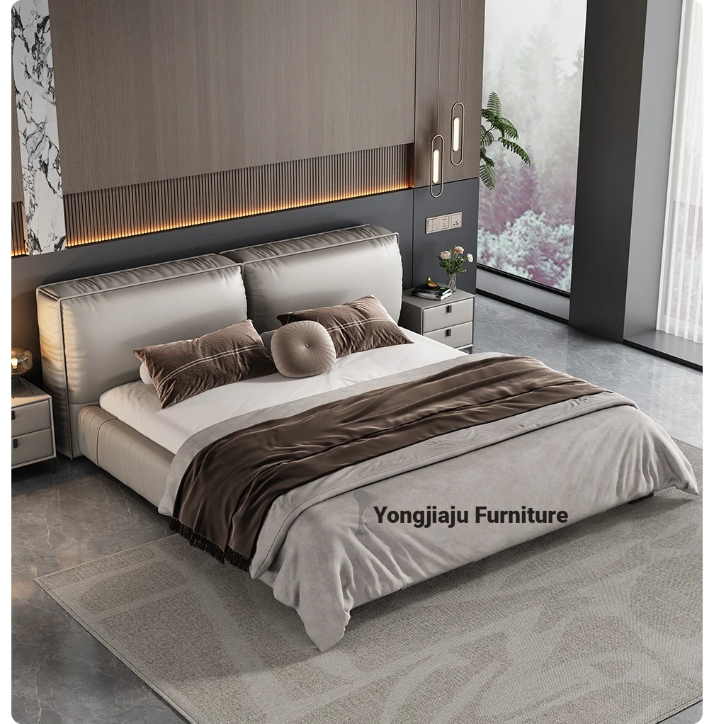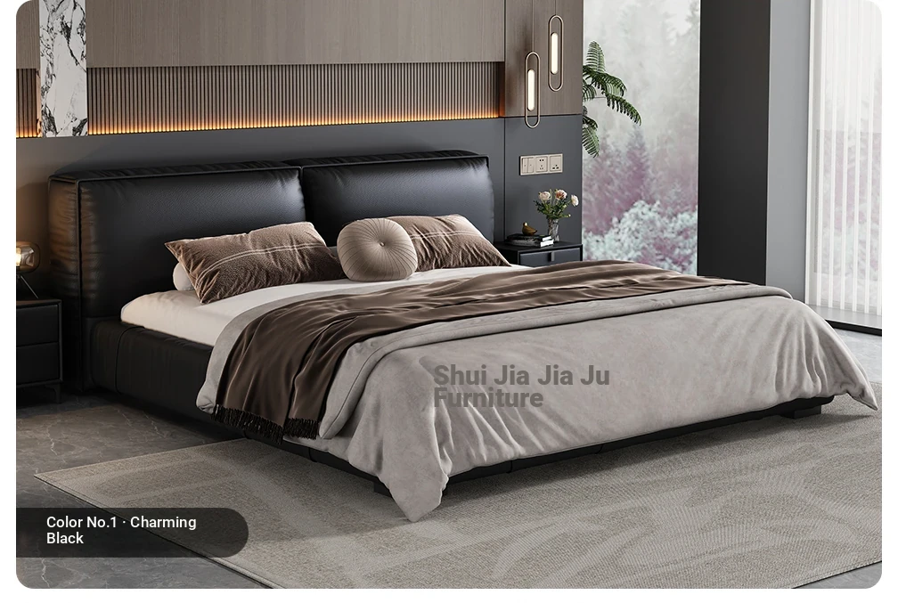 2025 New Floating Bed - Modern Minimalist Leather Bed with Soft Package, King Size in Black Genuine Leather - Perfect for Your Master Bedroom!