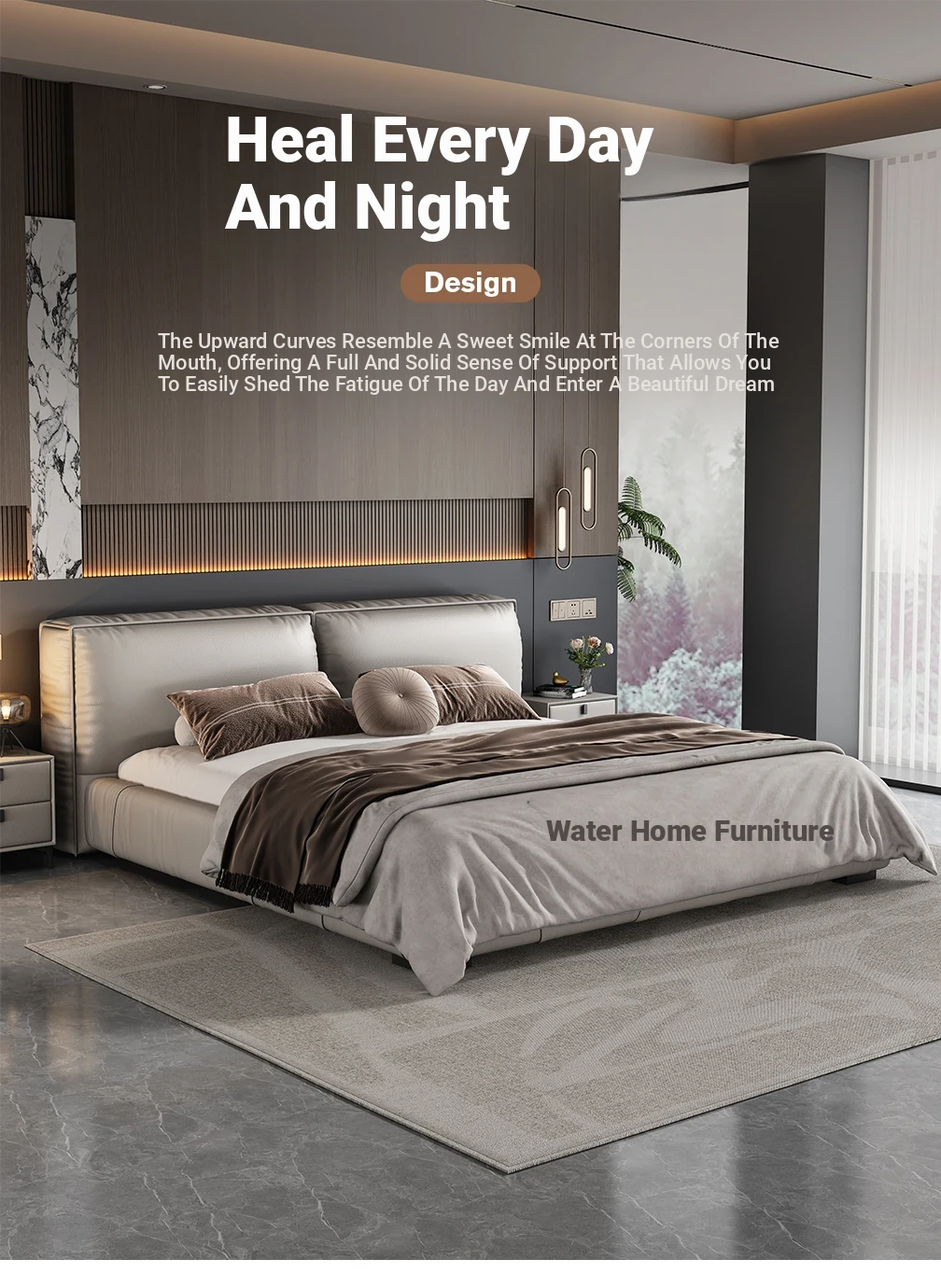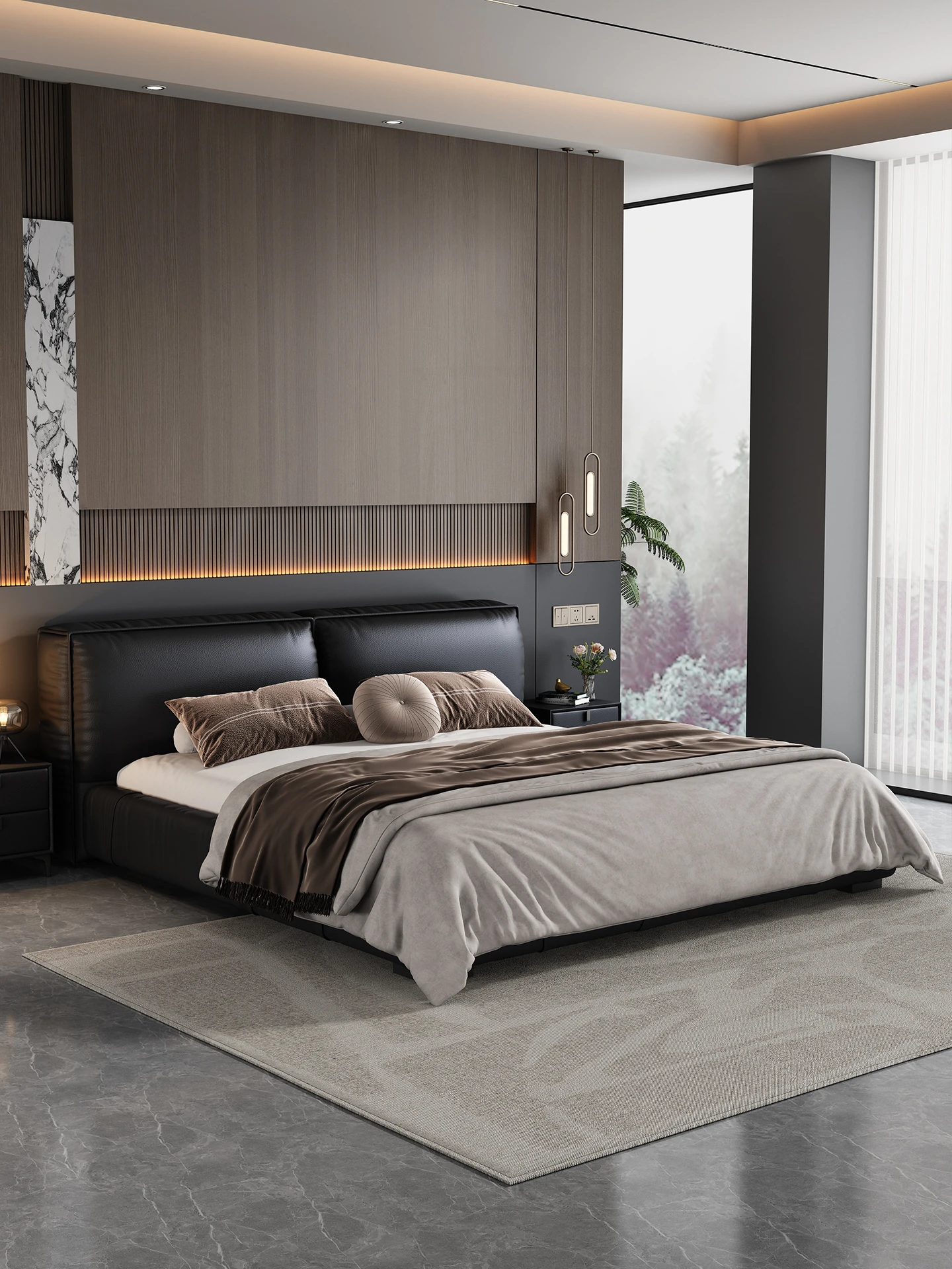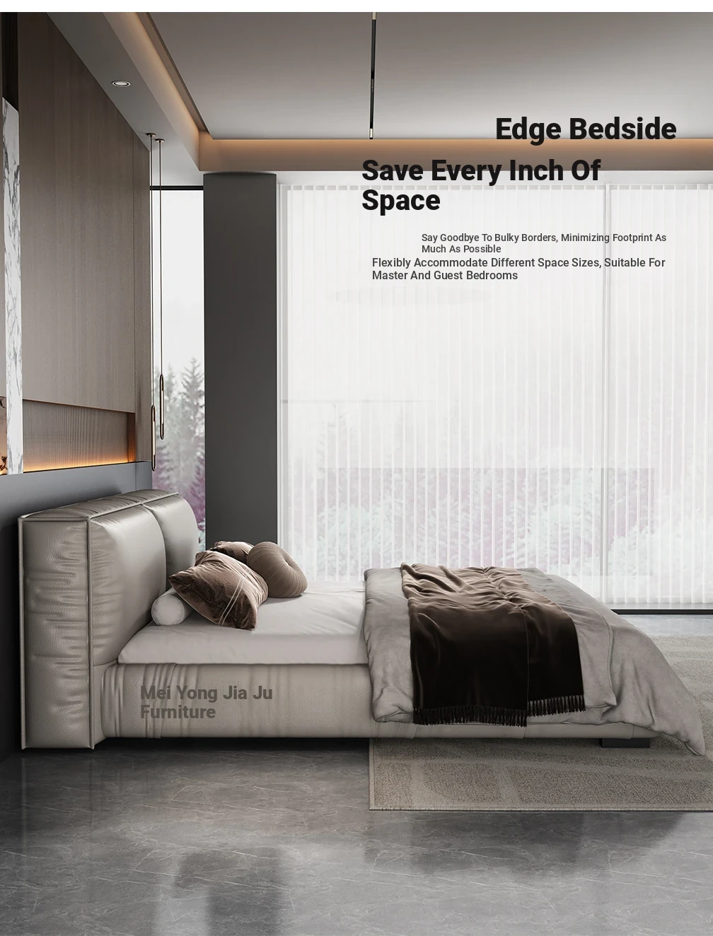 2025 New Floating Bed - Modern Minimalist Leather Bed with Soft Package, King Size in Black Genuine Leather - Perfect for Your Master Bedroom!