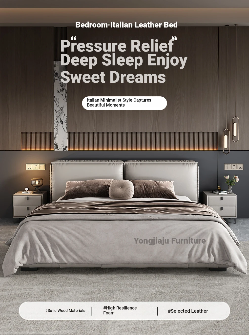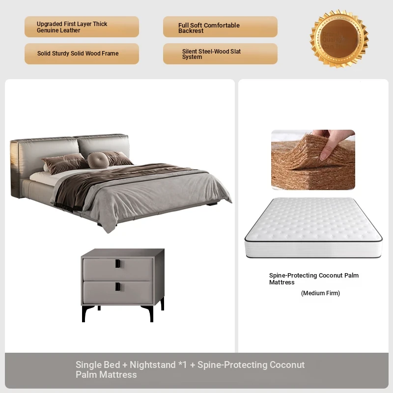 Single bed + Coconut Palm mattress + a bedside table (Italian nedifen leather + silent row skeleton)