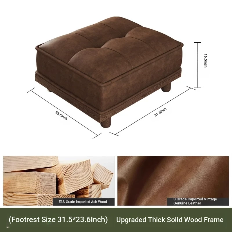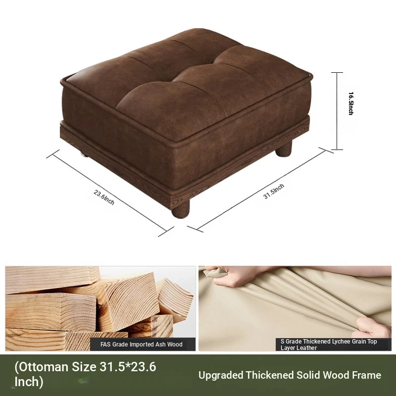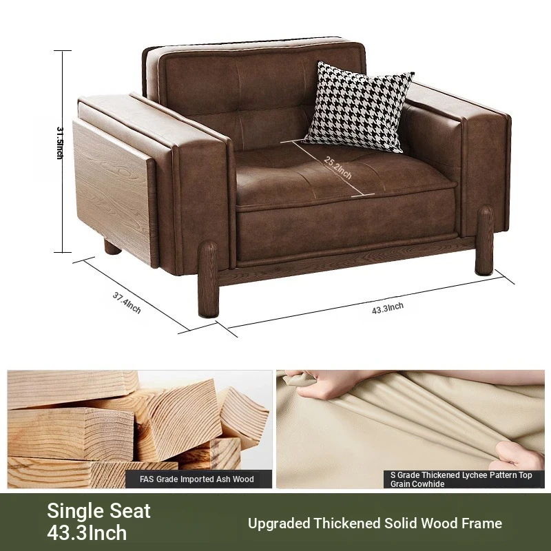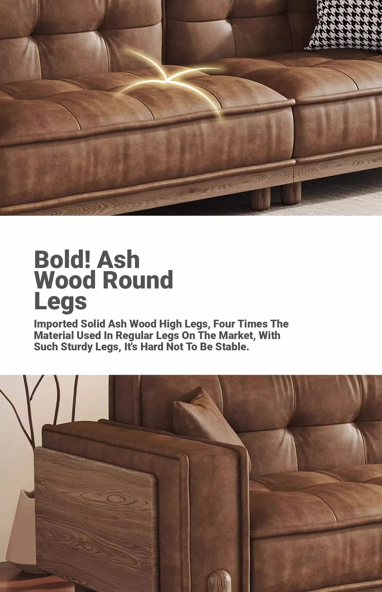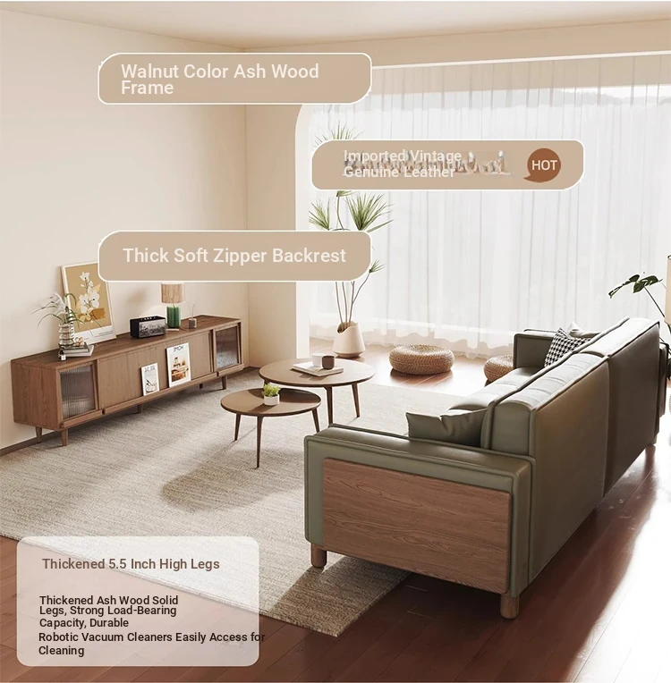 2025 New French Vintage Genuine Leather Sofa for Living Room - Top Grain Cowhide Small Space Sofa with Straight Walnut Solid Wood Design