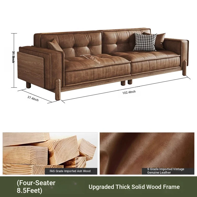 [Special leather for retro style texture] 102.36in four-person Separates [contact surface leather] [warranty for 20 years]]
