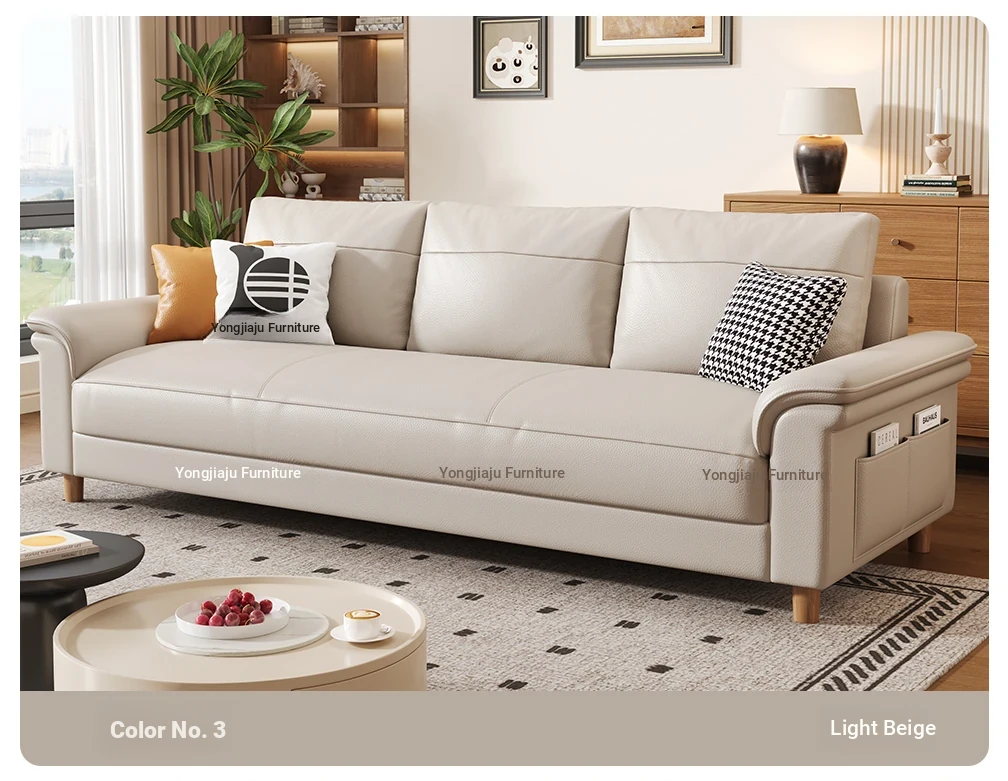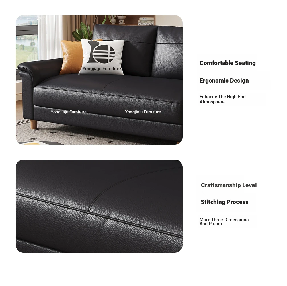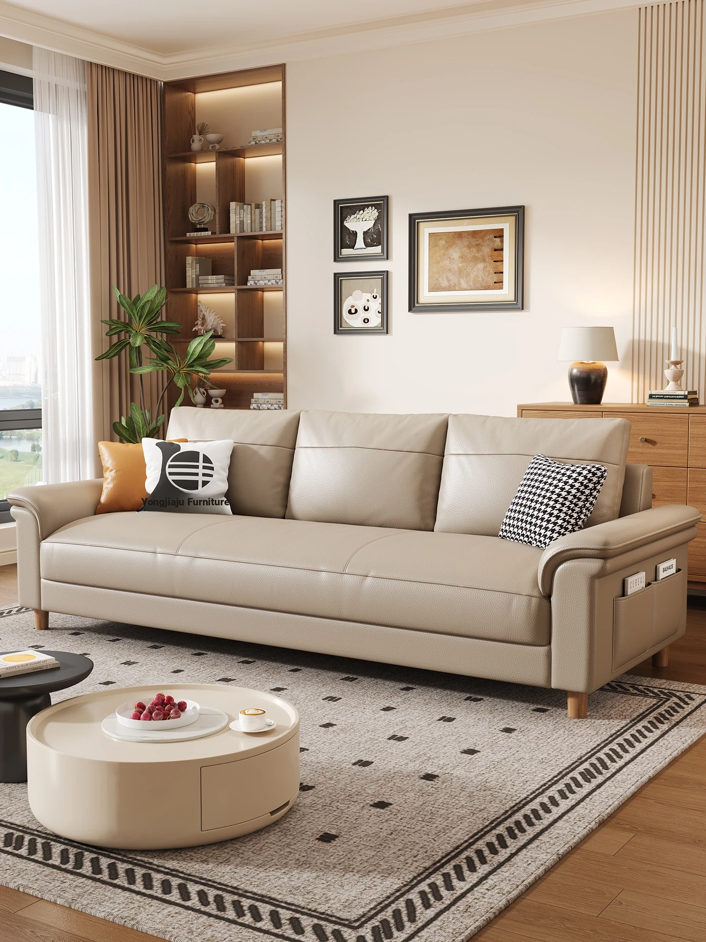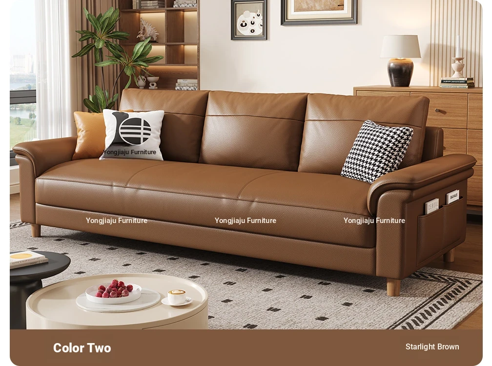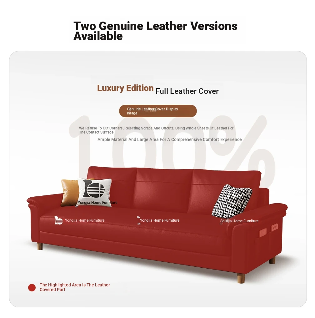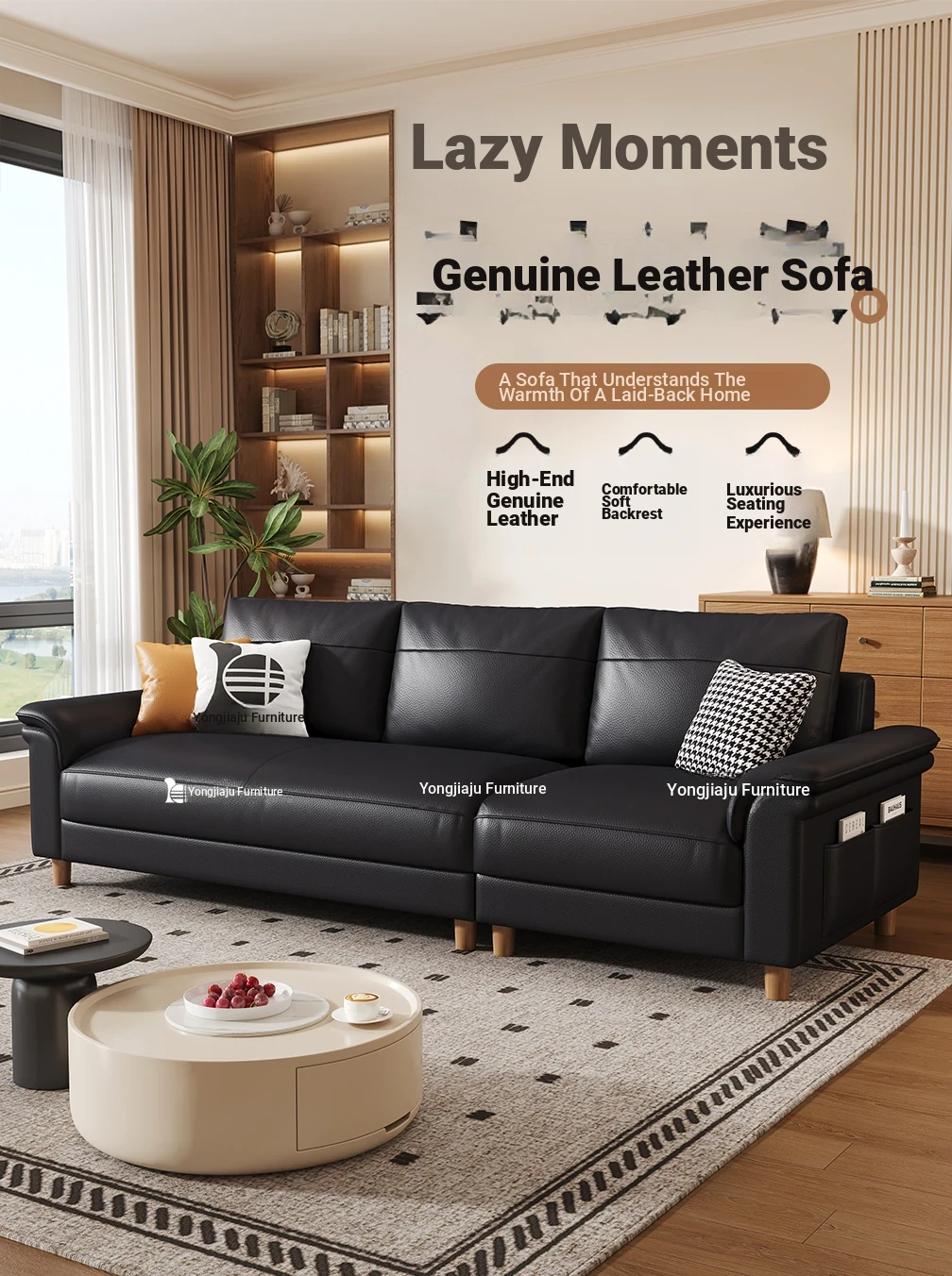 2025 New Italian Minimalist Genuine Leather Sofa - Adjustable Design for Small Living Spaces
