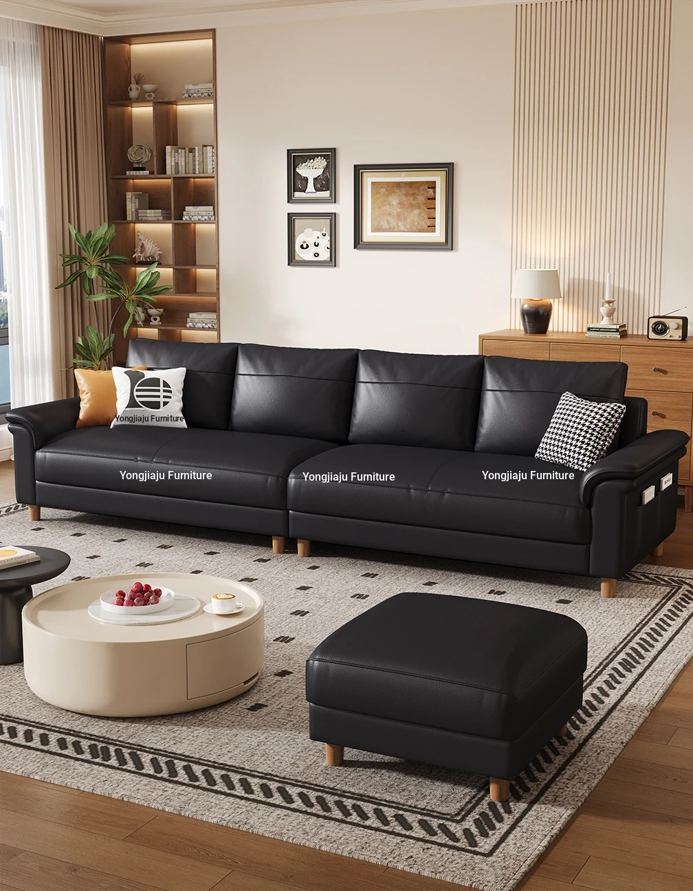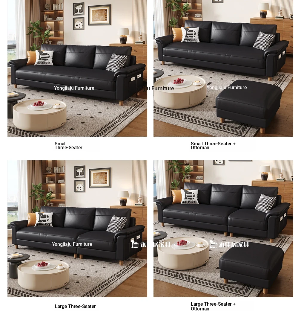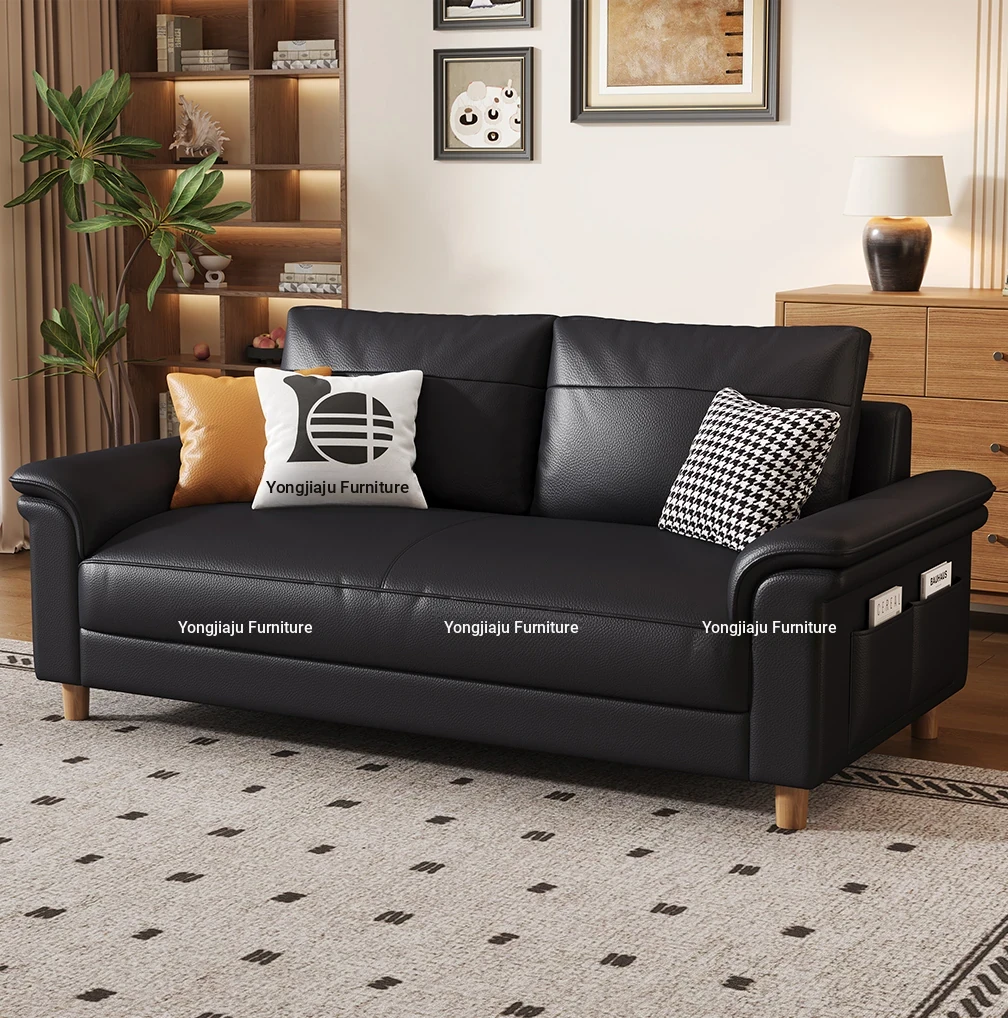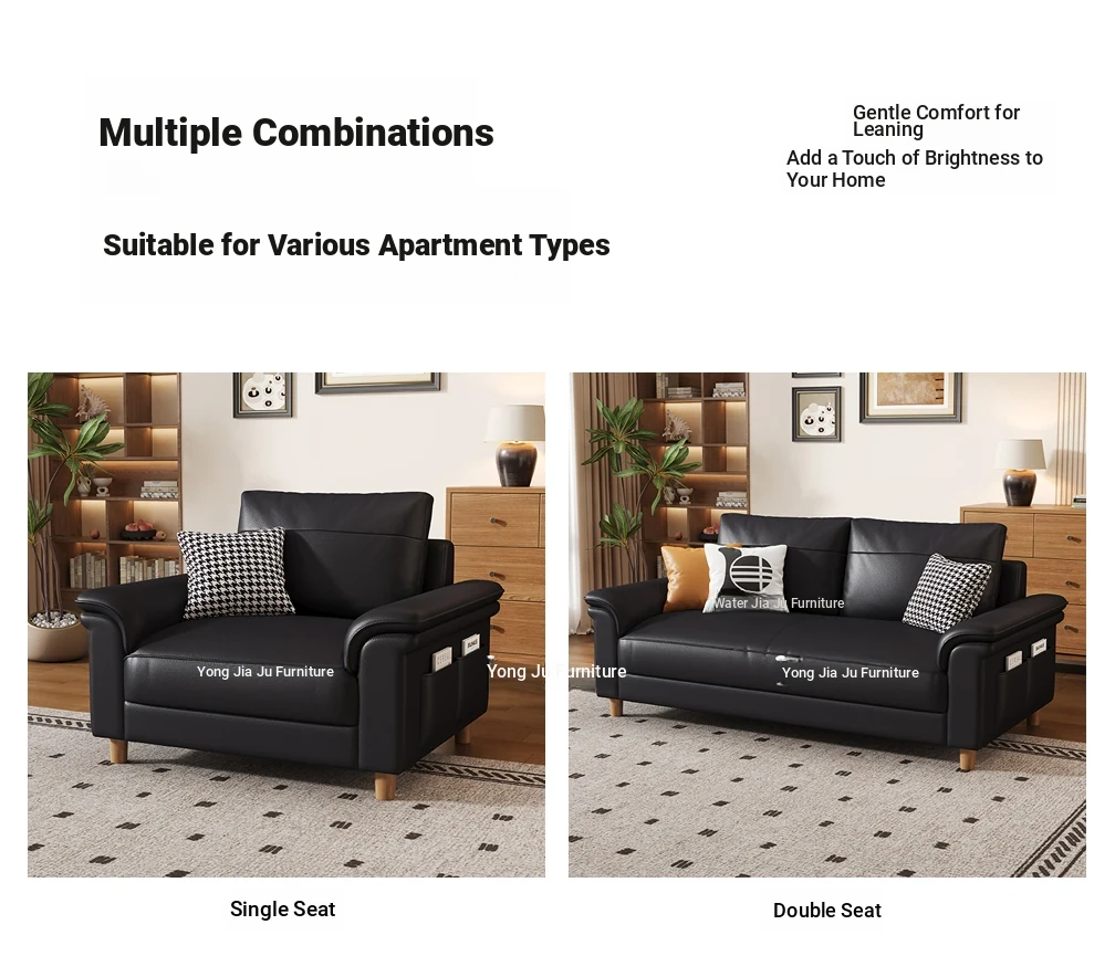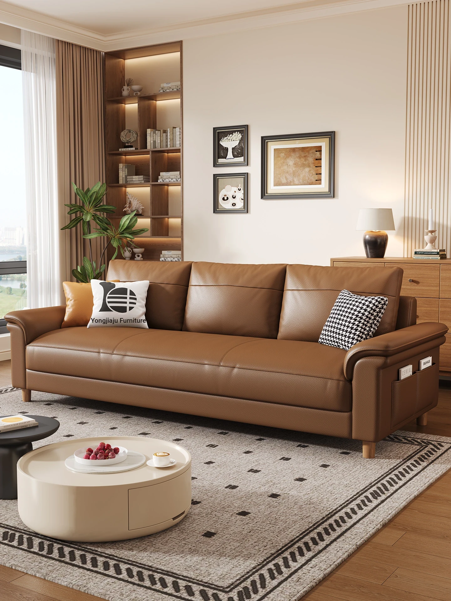 2025 New Italian Minimalist Genuine Leather Sofa - Adjustable Design for Small Living Spaces
