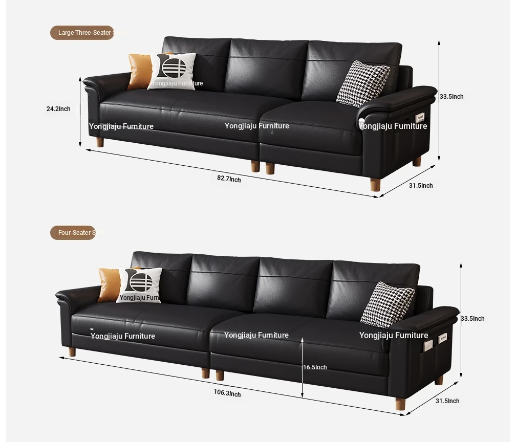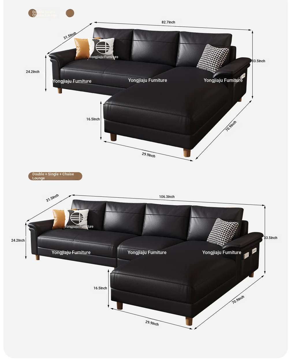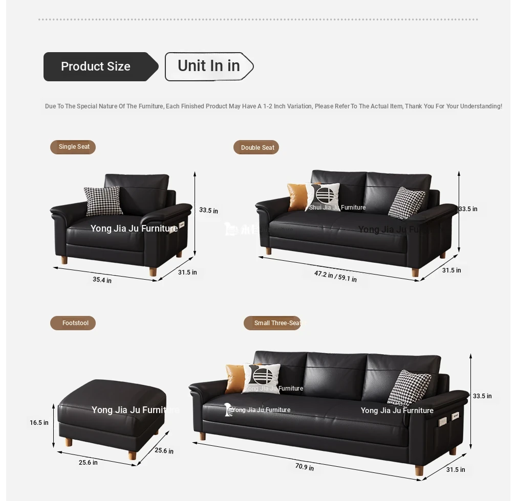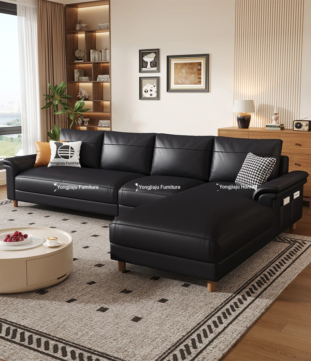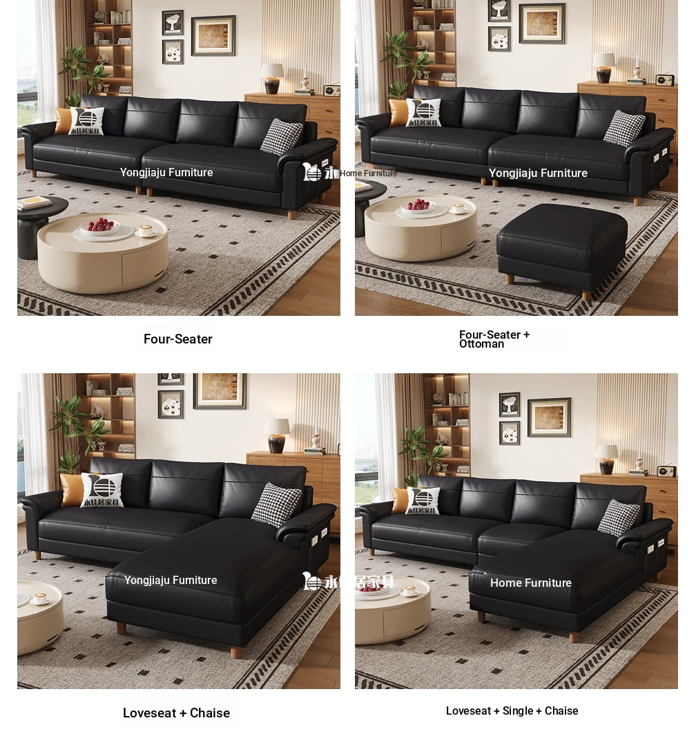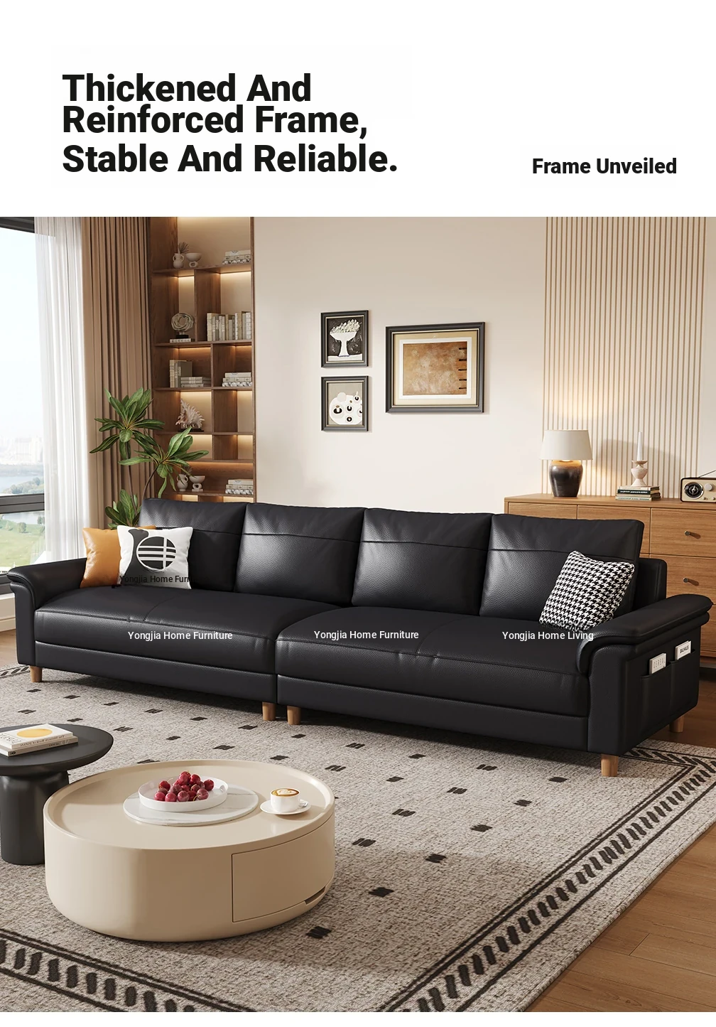 2025 New Italian Minimalist Genuine Leather Sofa - Adjustable Design for Small Living Spaces