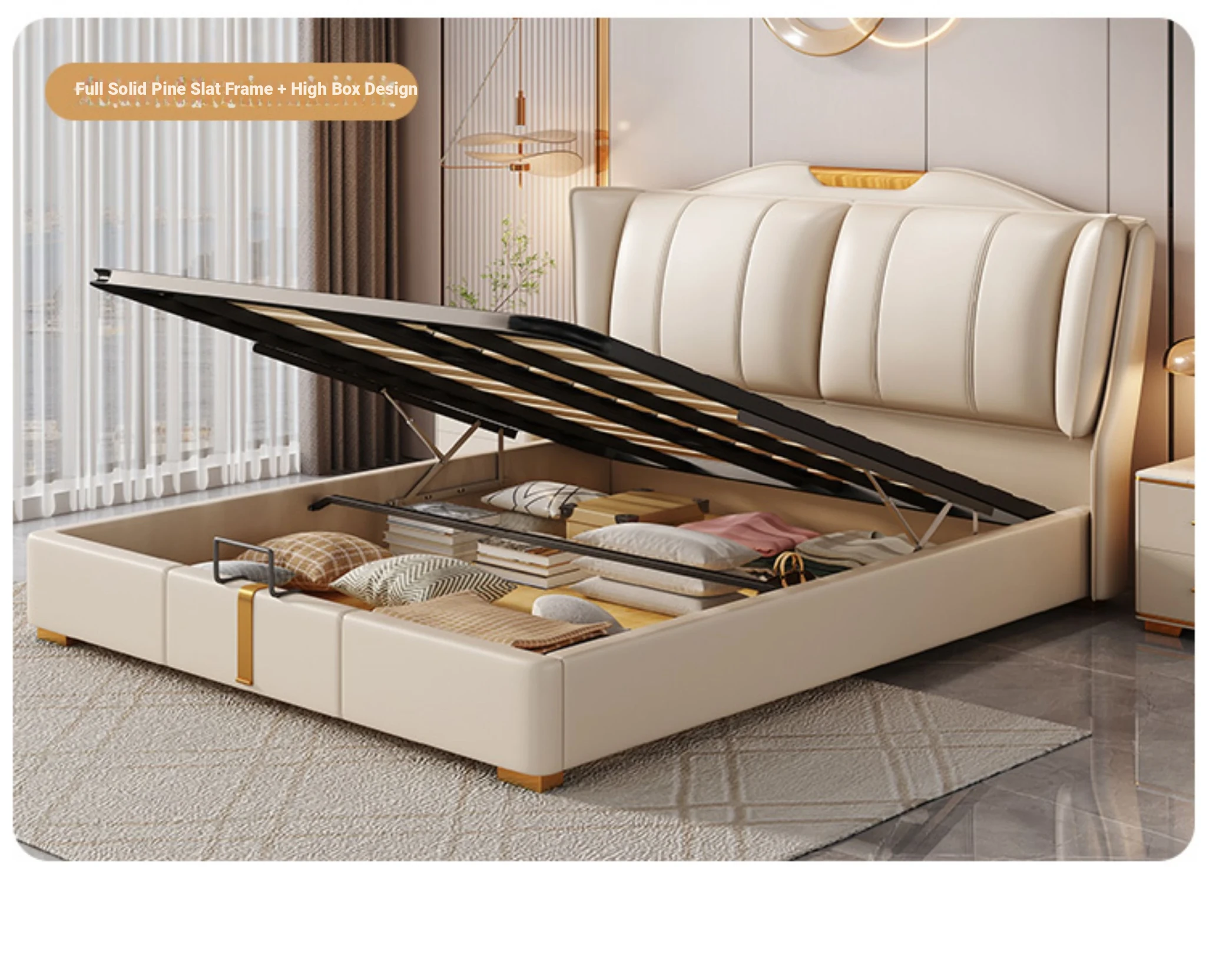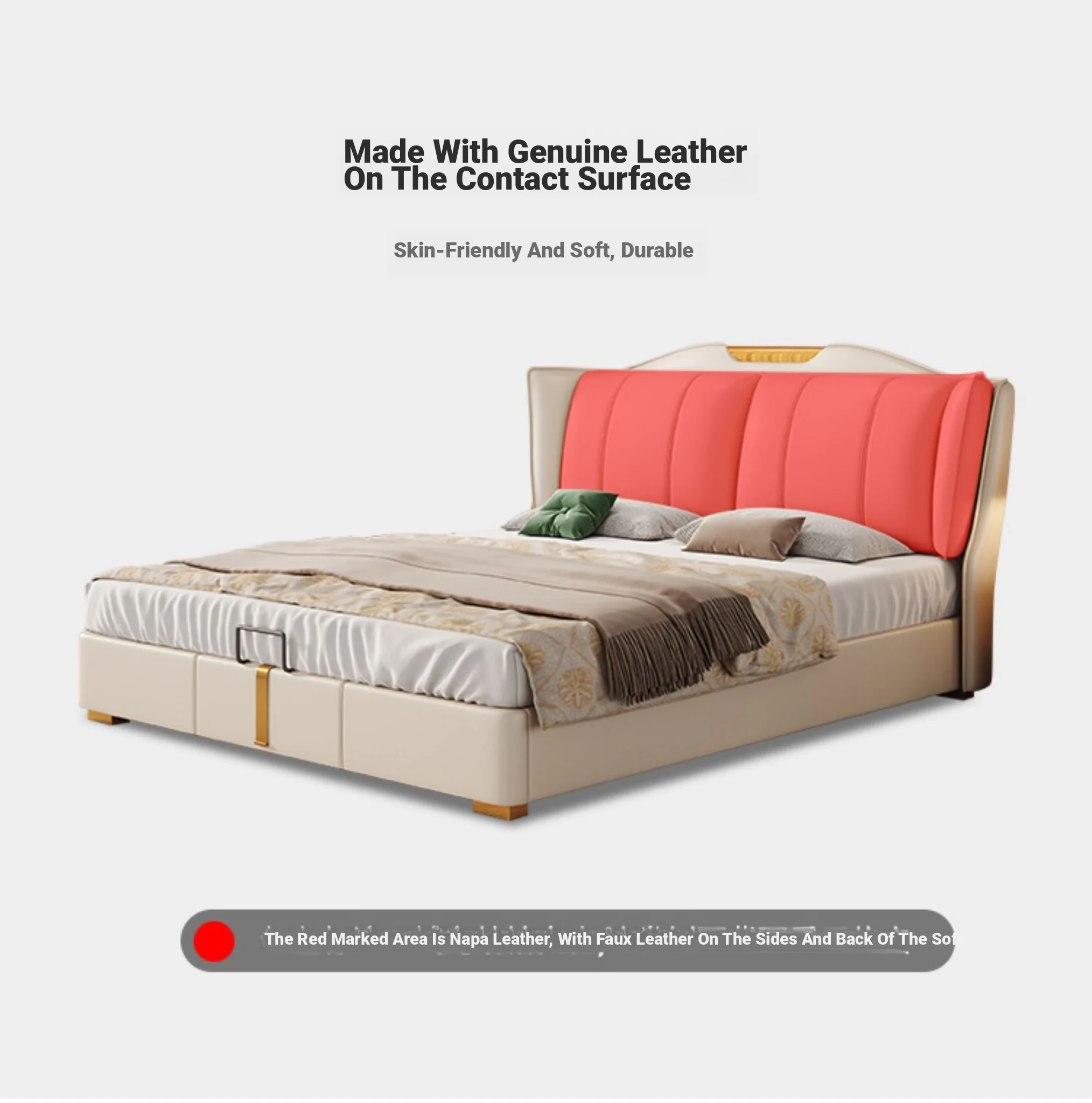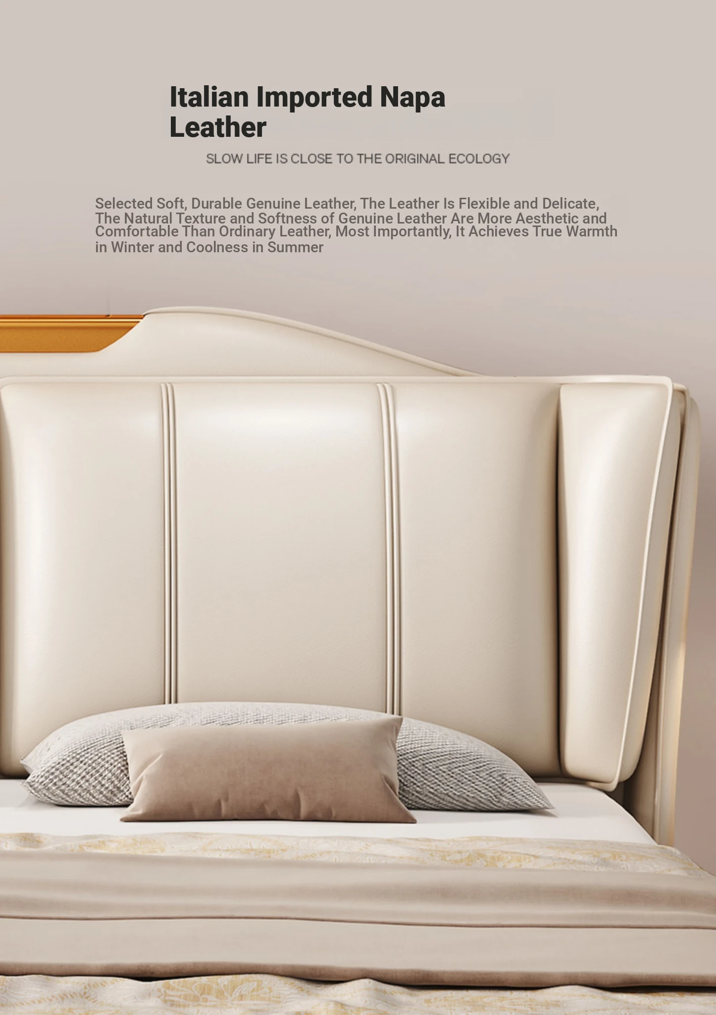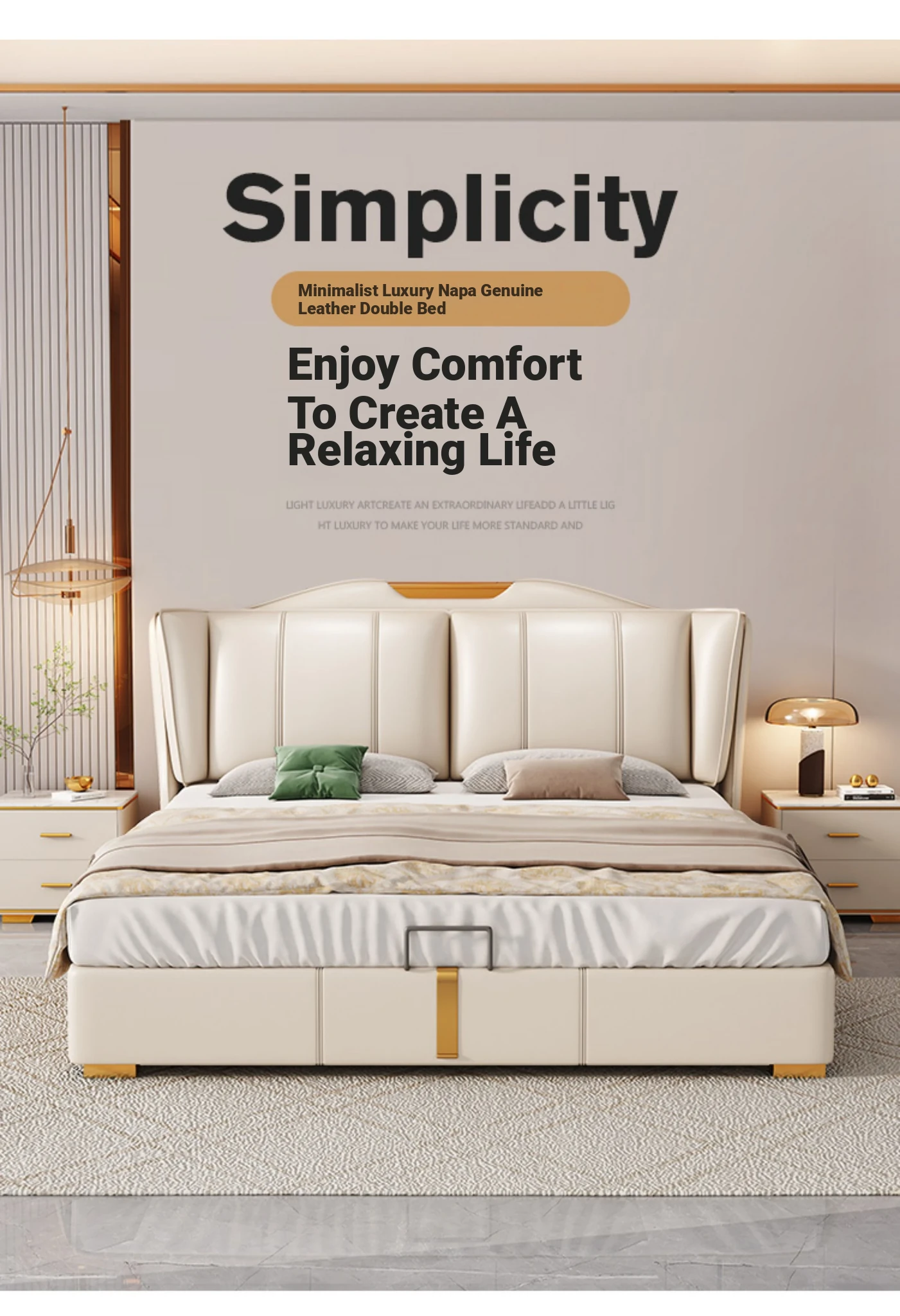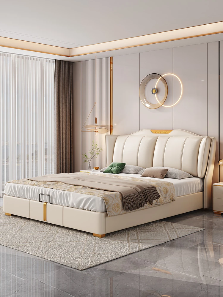 2025 New Italian Style Luxury Faux Leather Queen Bed - 1.8m Modern High-Storage Platform Bed with Slatted Frame for Master Bedroom