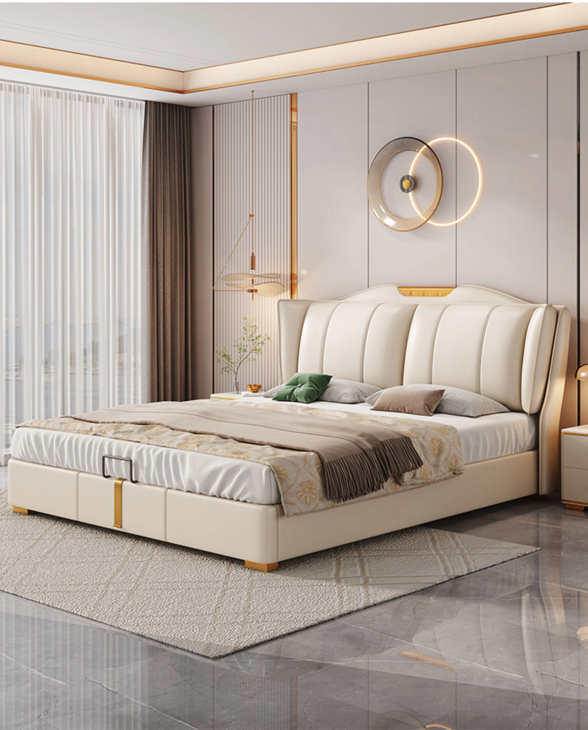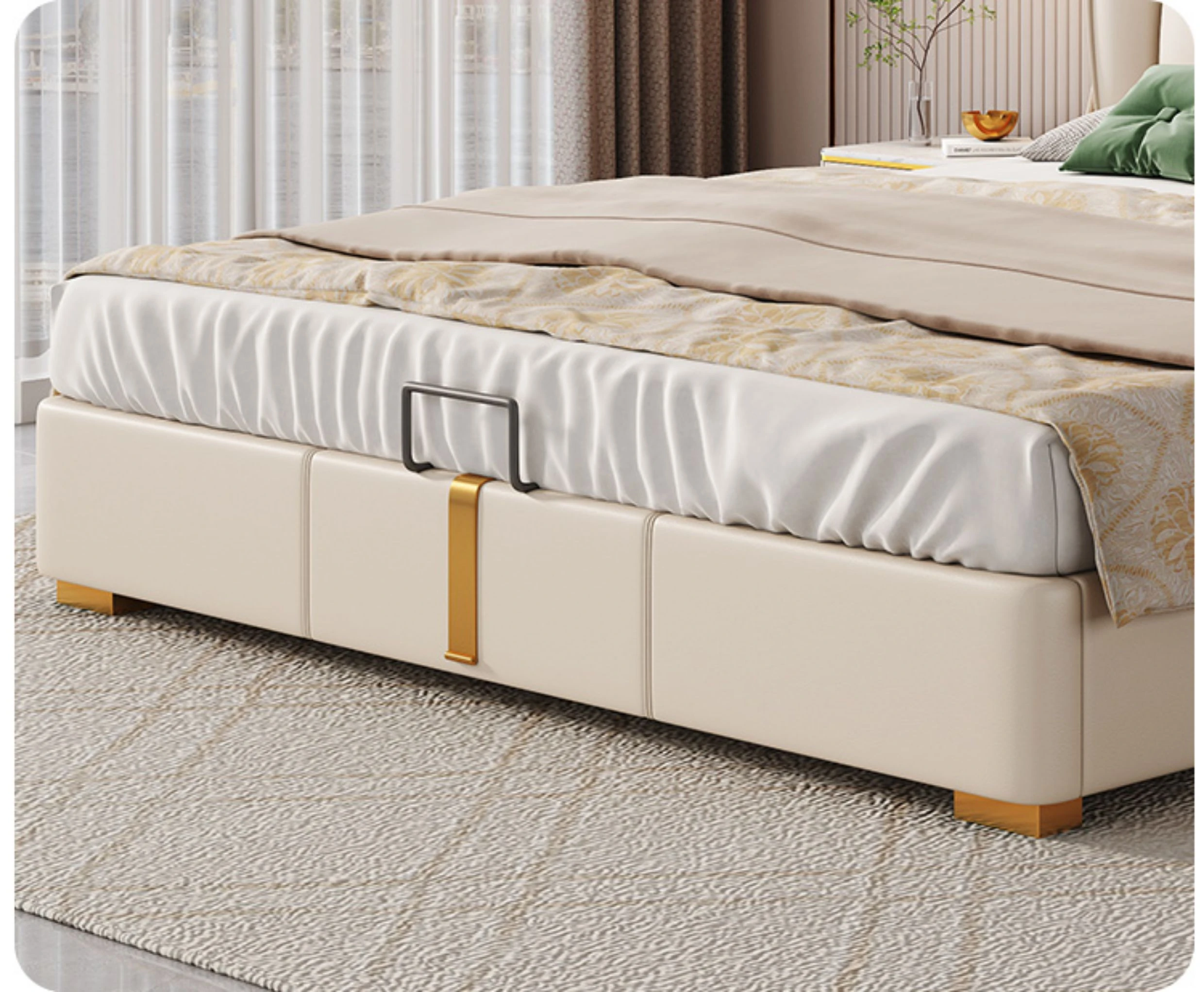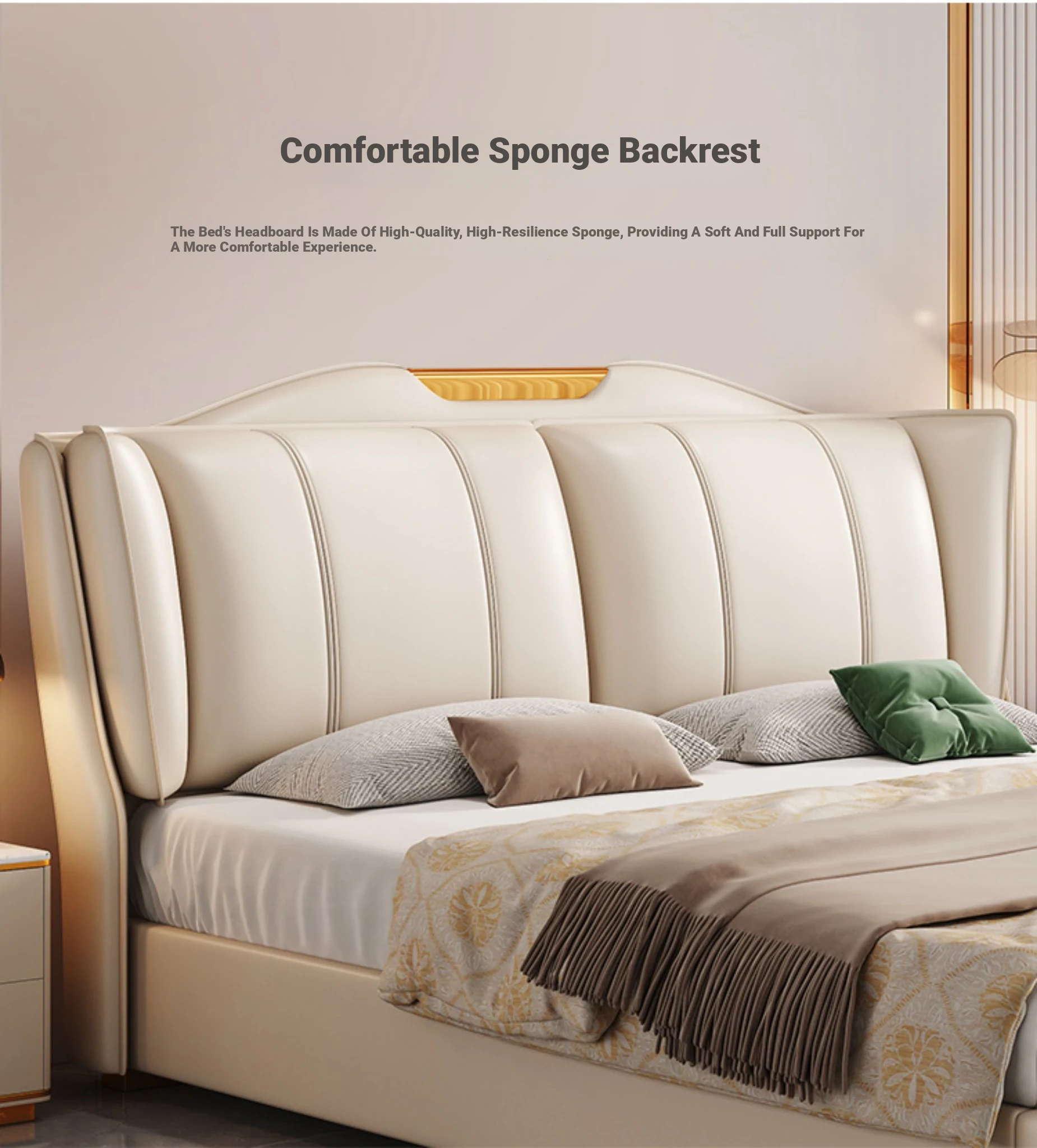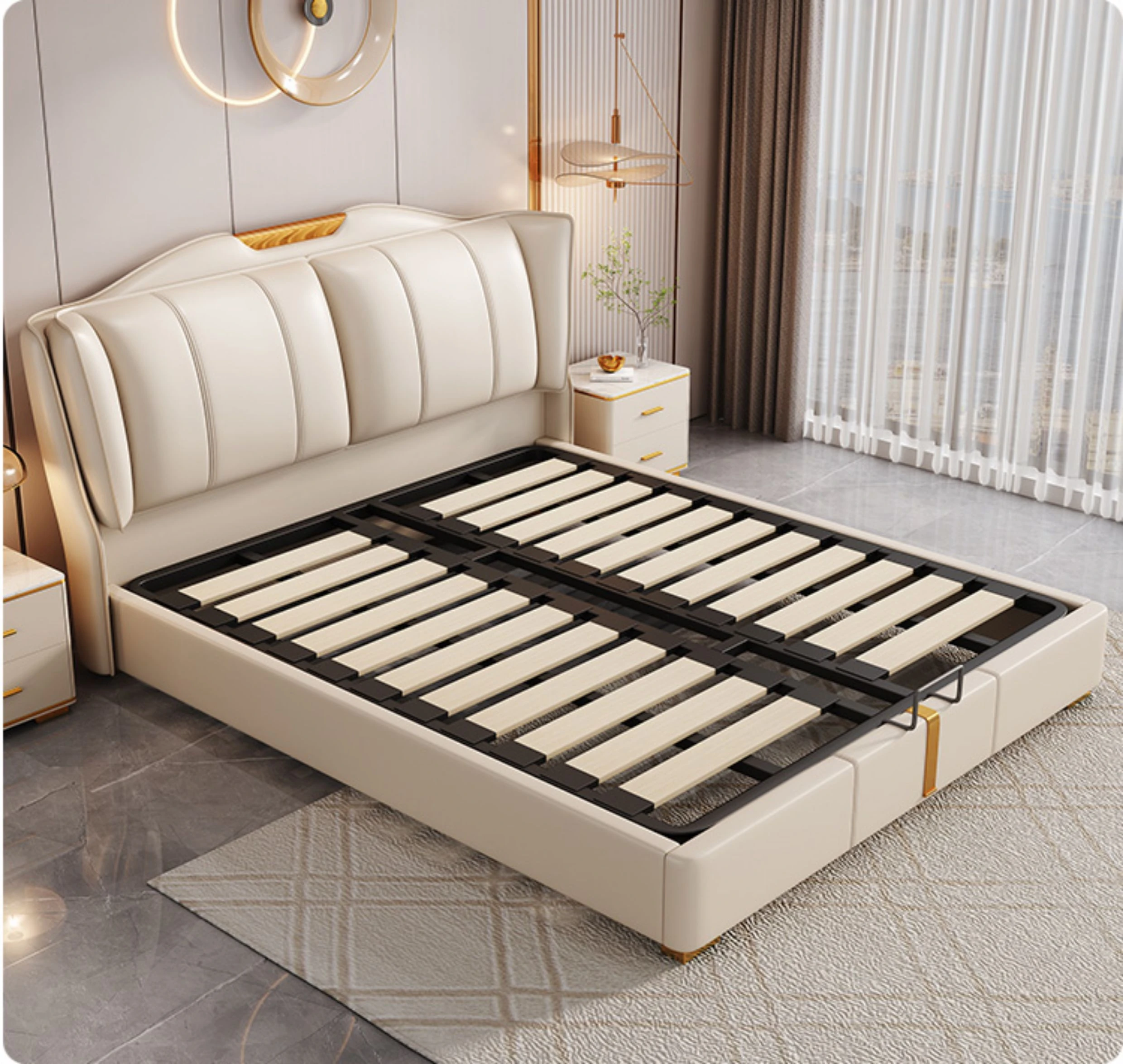 2025 New Italian Style Luxury Faux Leather Queen Bed - 1.8m Modern High-Storage Platform Bed with Slatted Frame for Master Bedroom