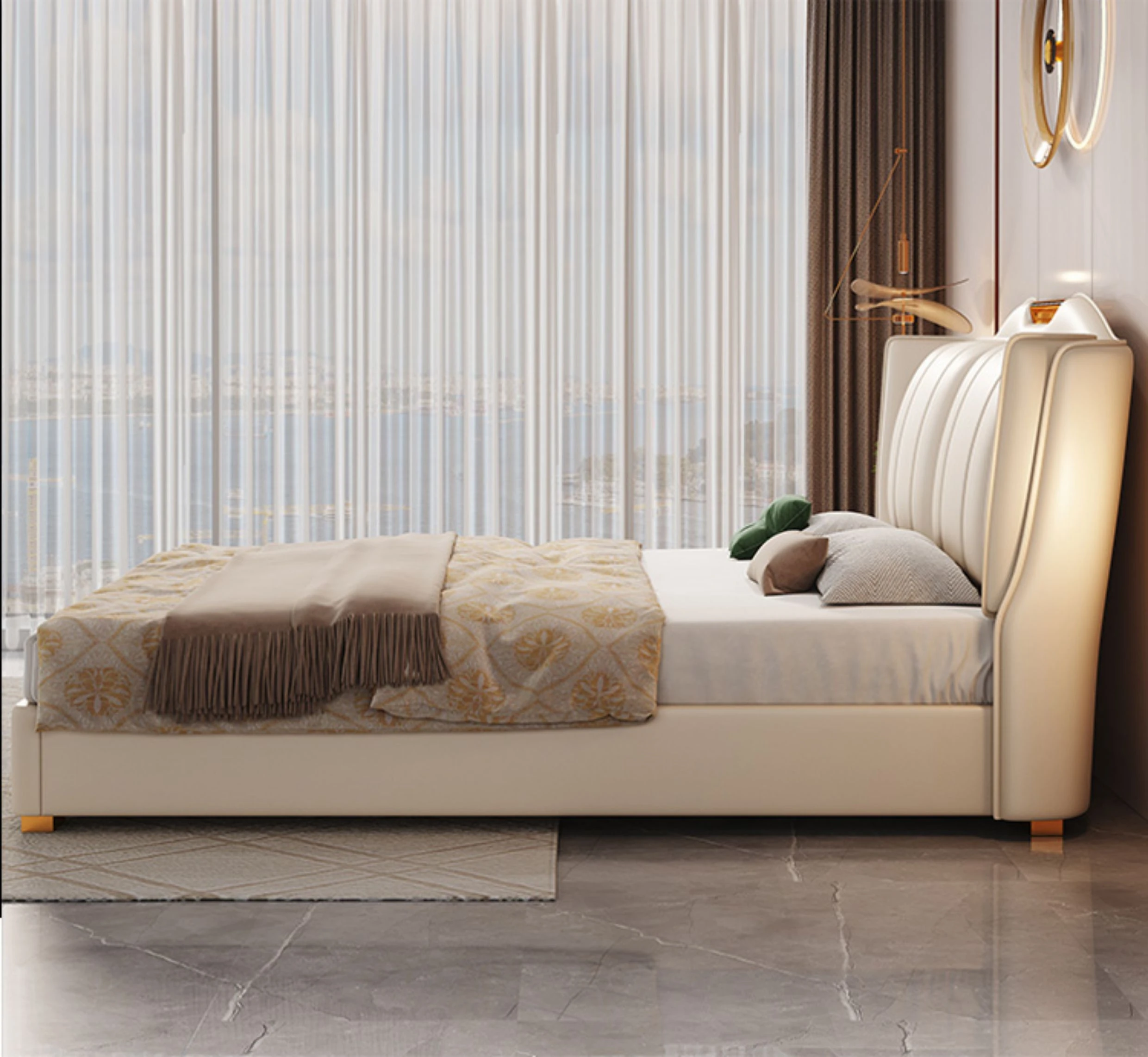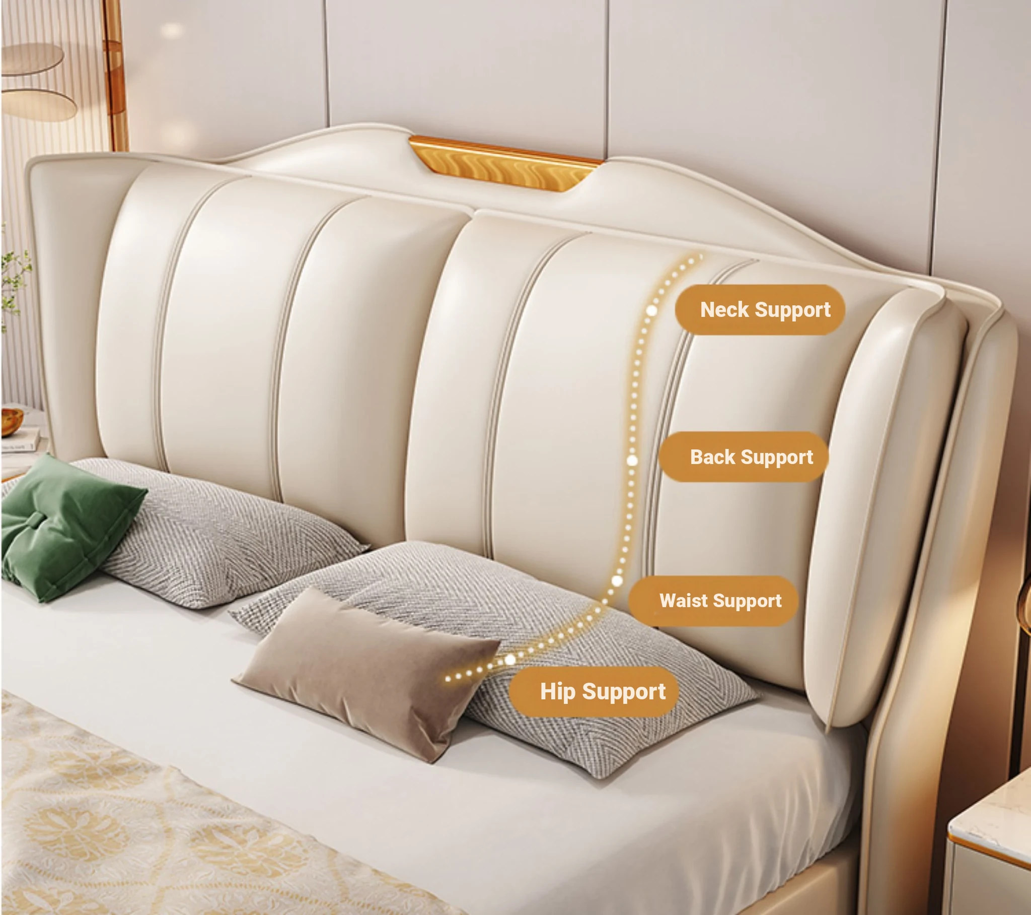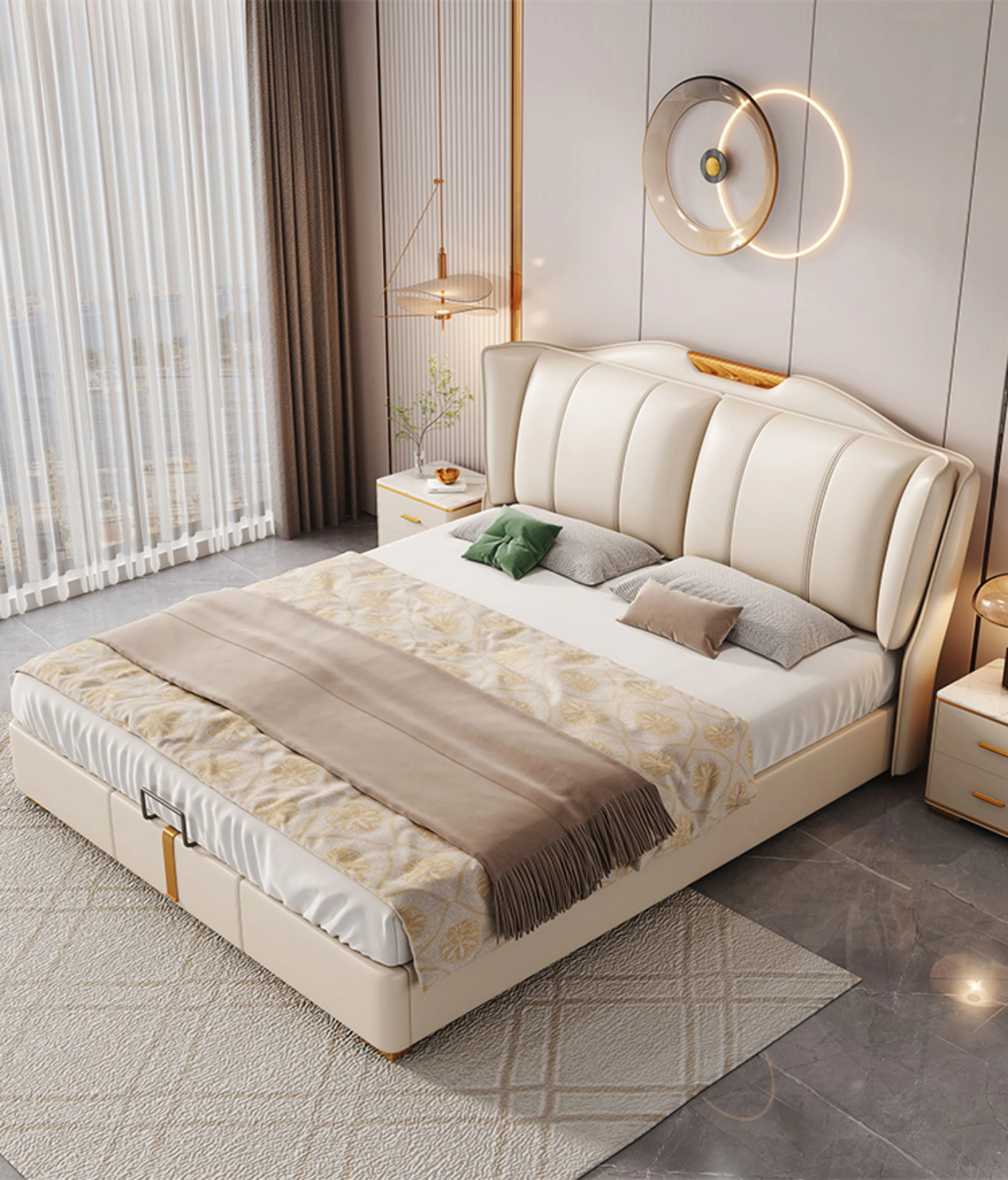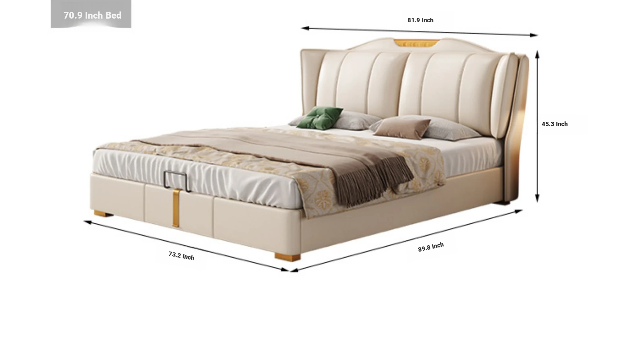 2025 New Italian Style Luxury Faux Leather Queen Bed - 1.8m Modern High-Storage Platform Bed with Slatted Frame for Master Bedroom