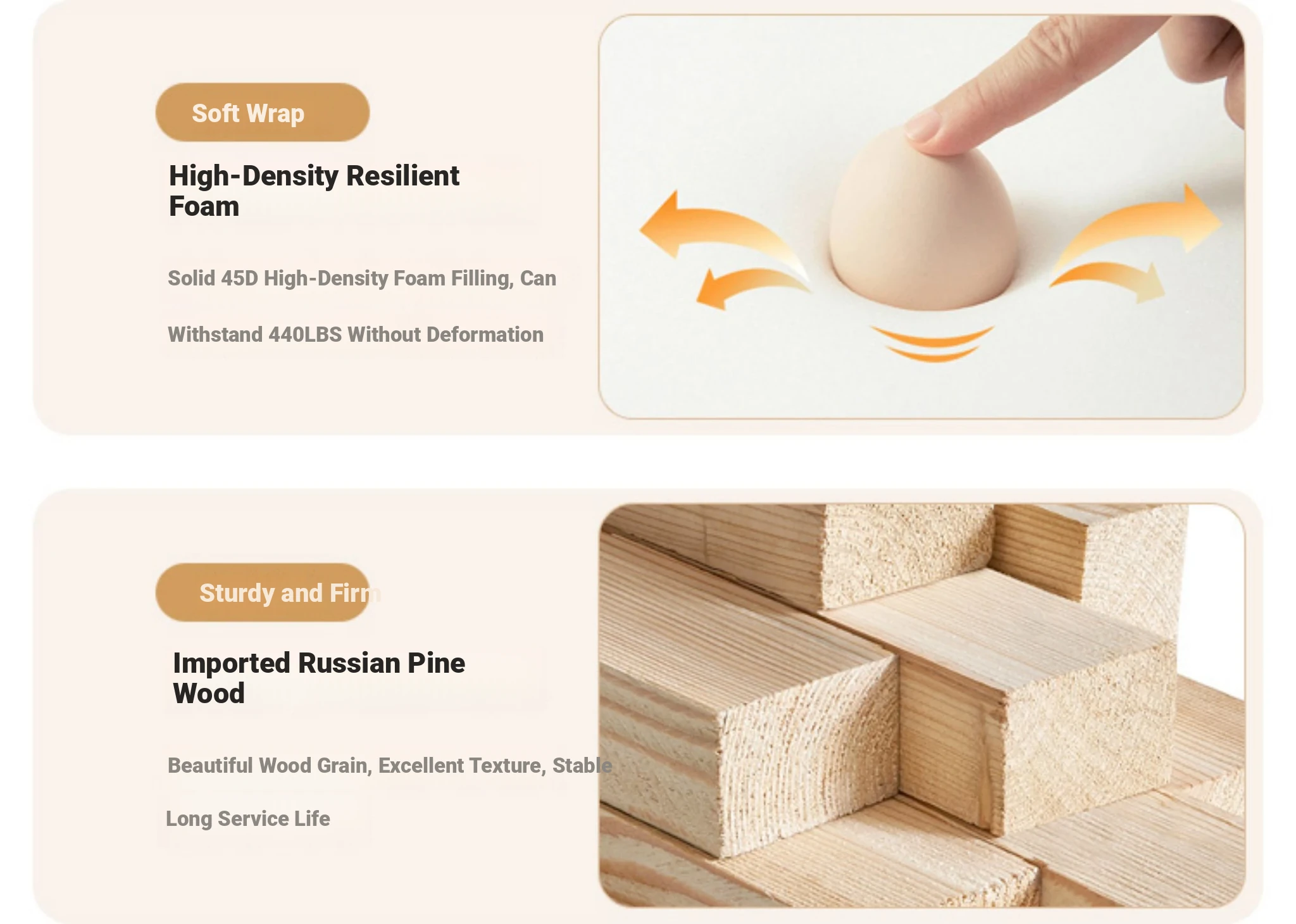 Import pine bare bed + 5D latex mattress + two bedside tables