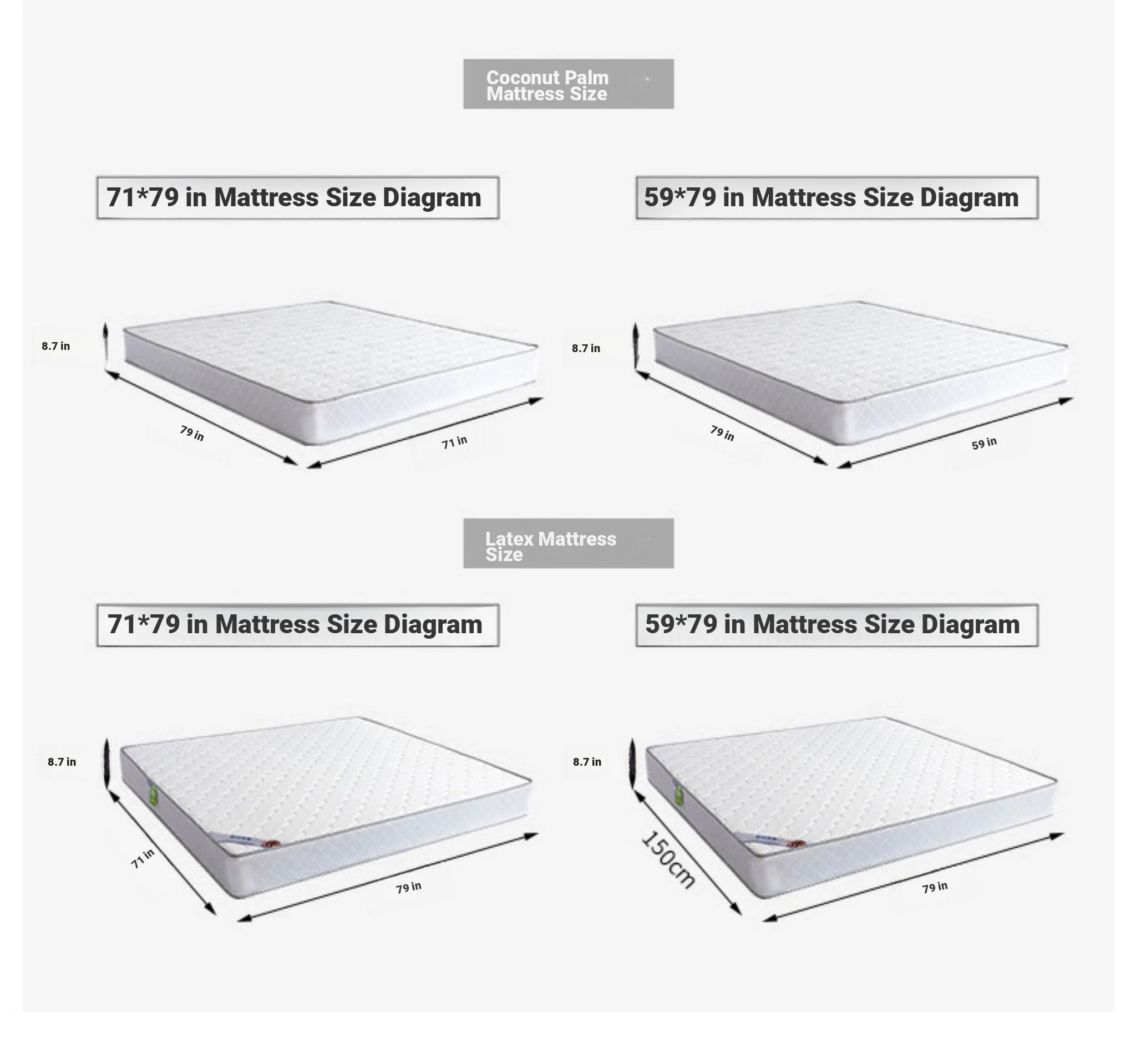 Import pine bare bed +8.66in coconut palm mattress + two bedside tables