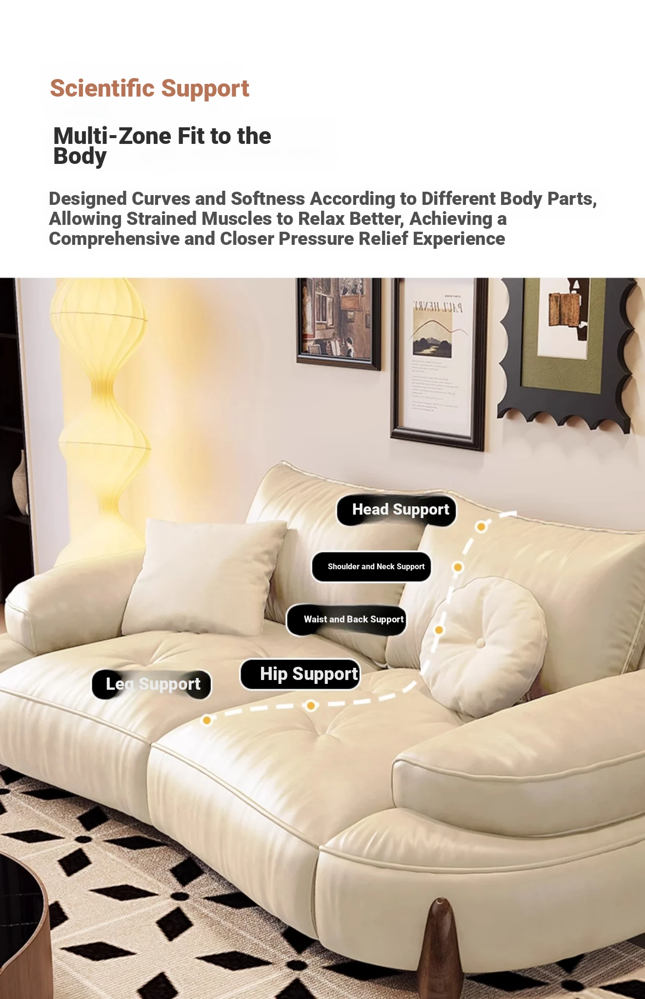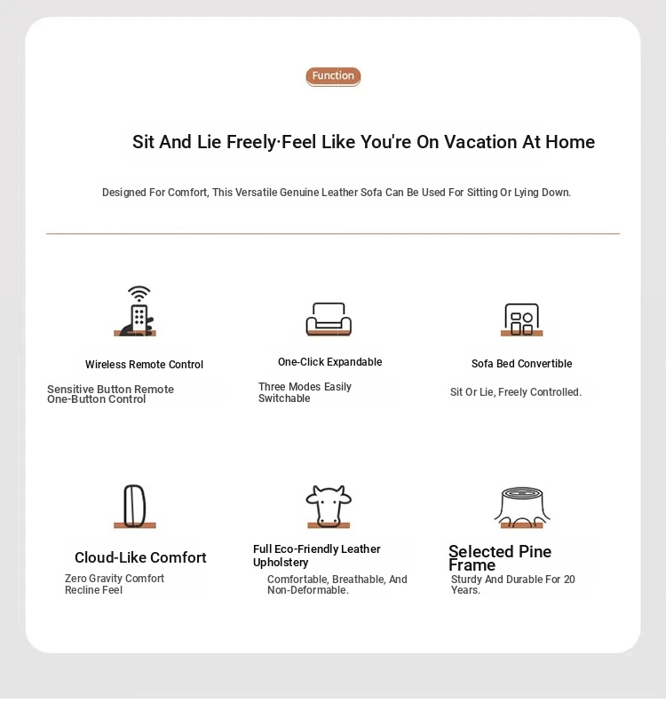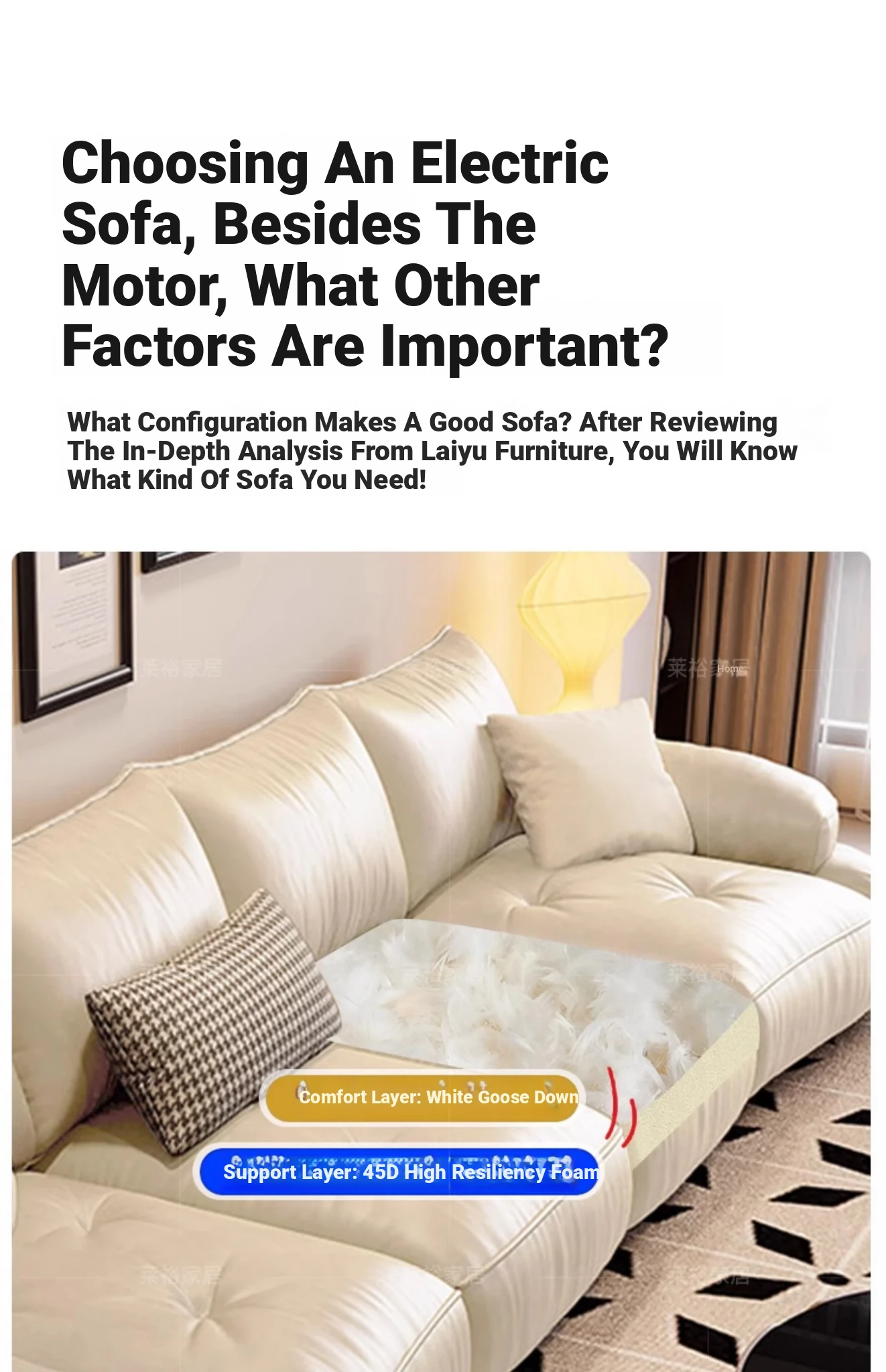 2025 New Minimalist Real Leather Electric Reclining Sofa Bed - Natural Wood Cream Finish, Adjustable for Ultimate Comfort in Your Living Room