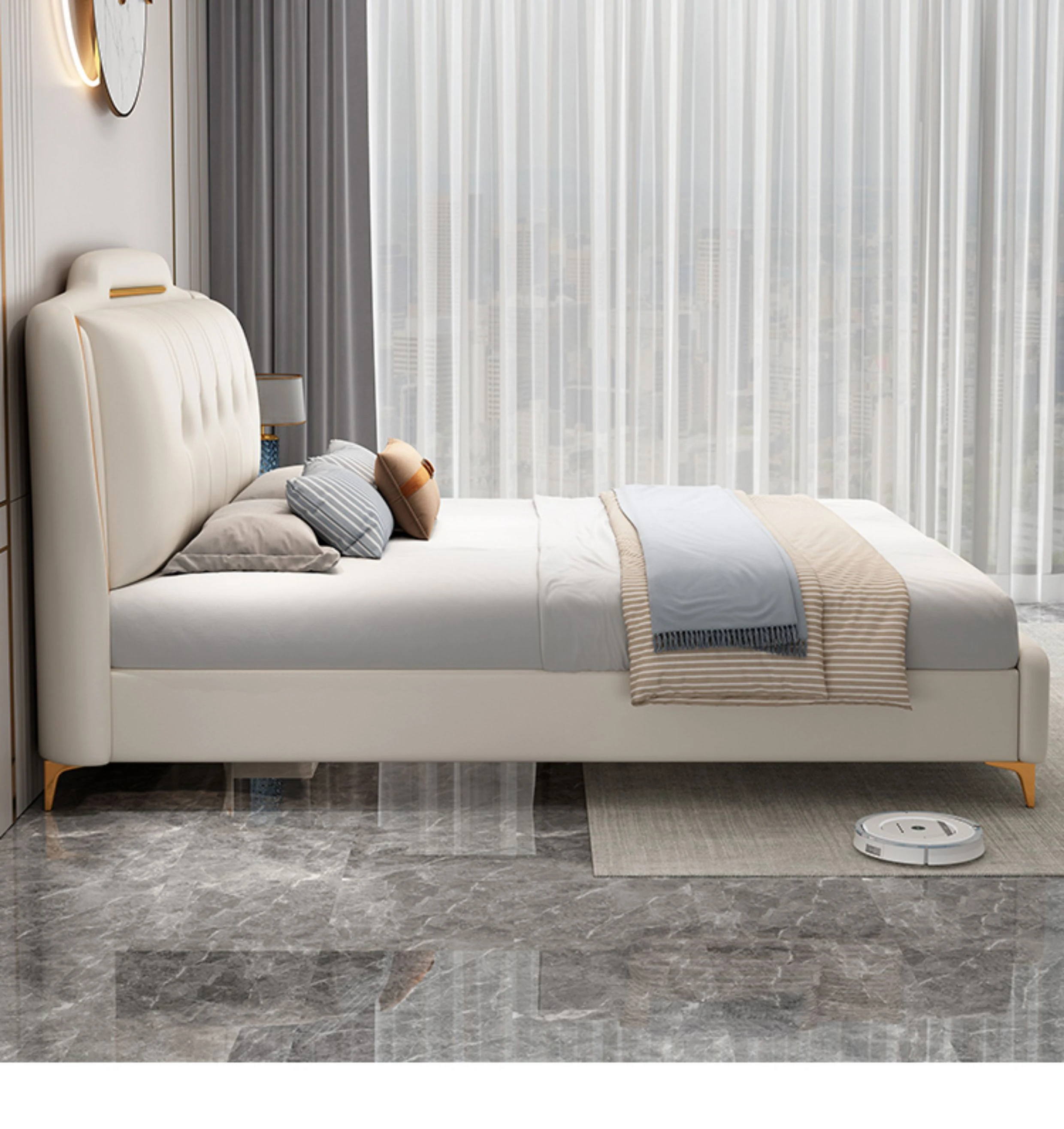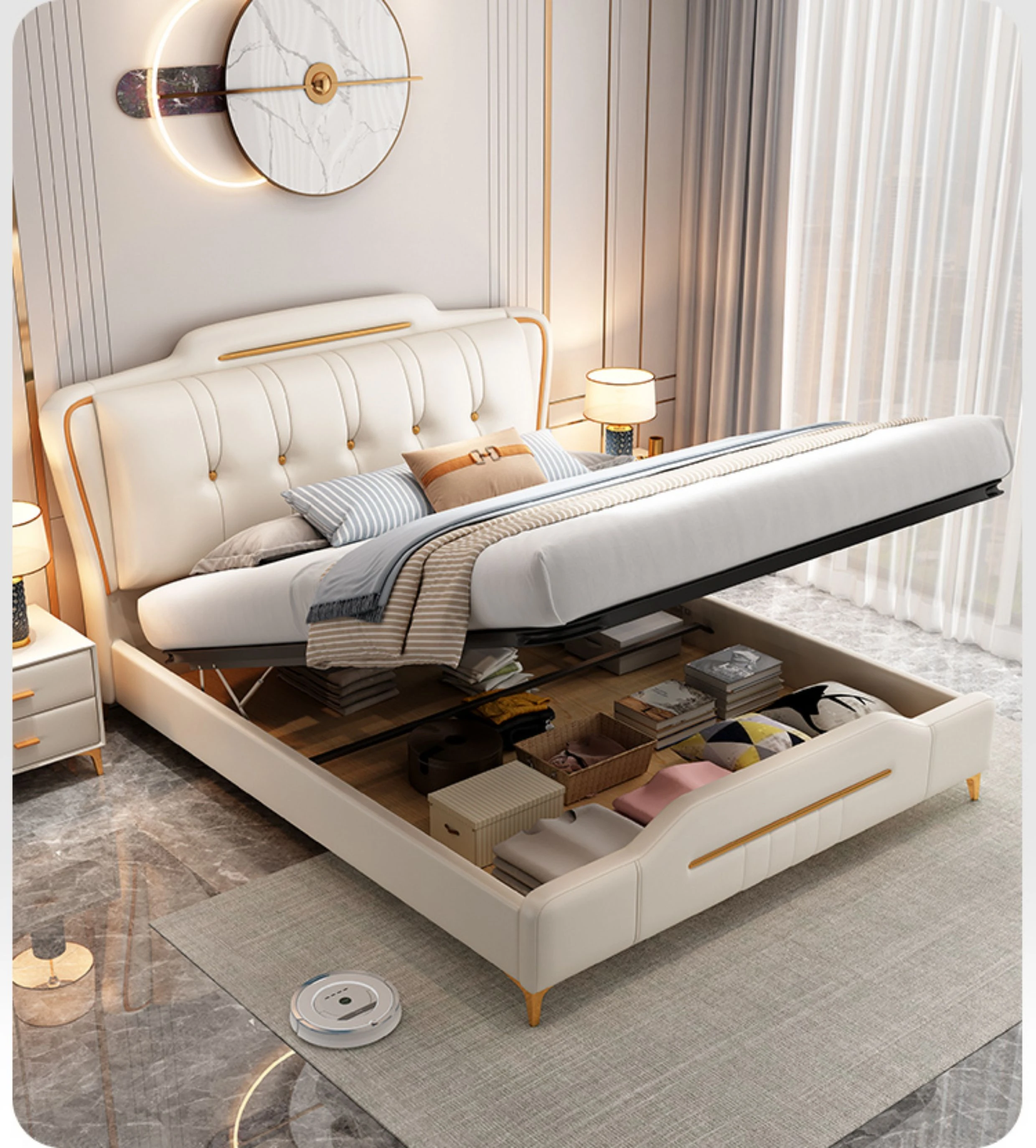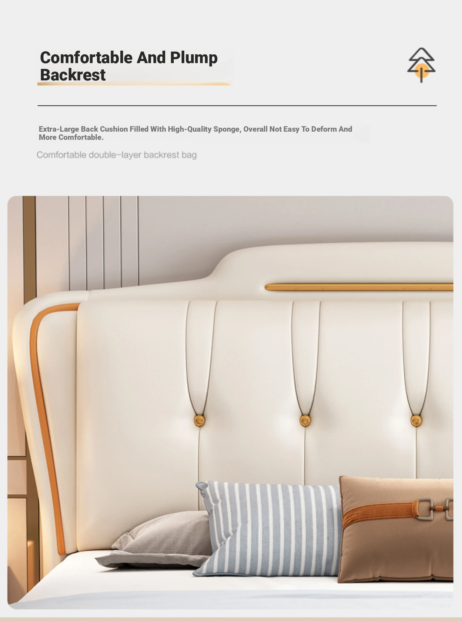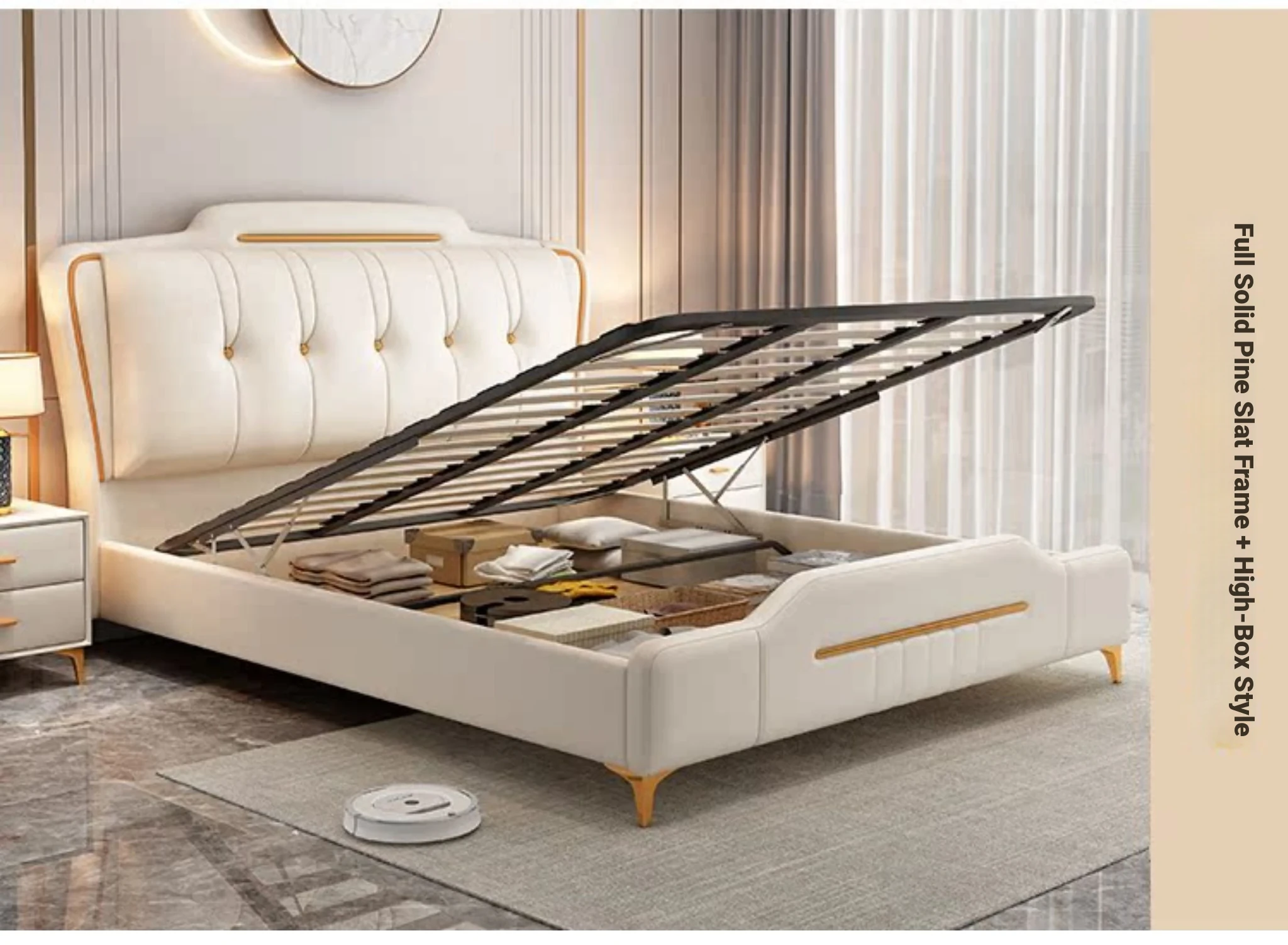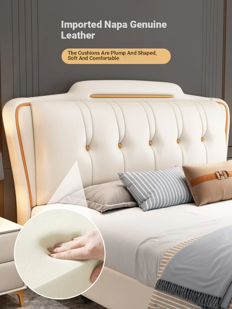 2025 New Nordic Minimalist Italian Luxury 1.8m King Size Bed with High Storage, Genuine Leather Main Bedroom Marriage Bed - Stylish and Functional Design for Modern Homes