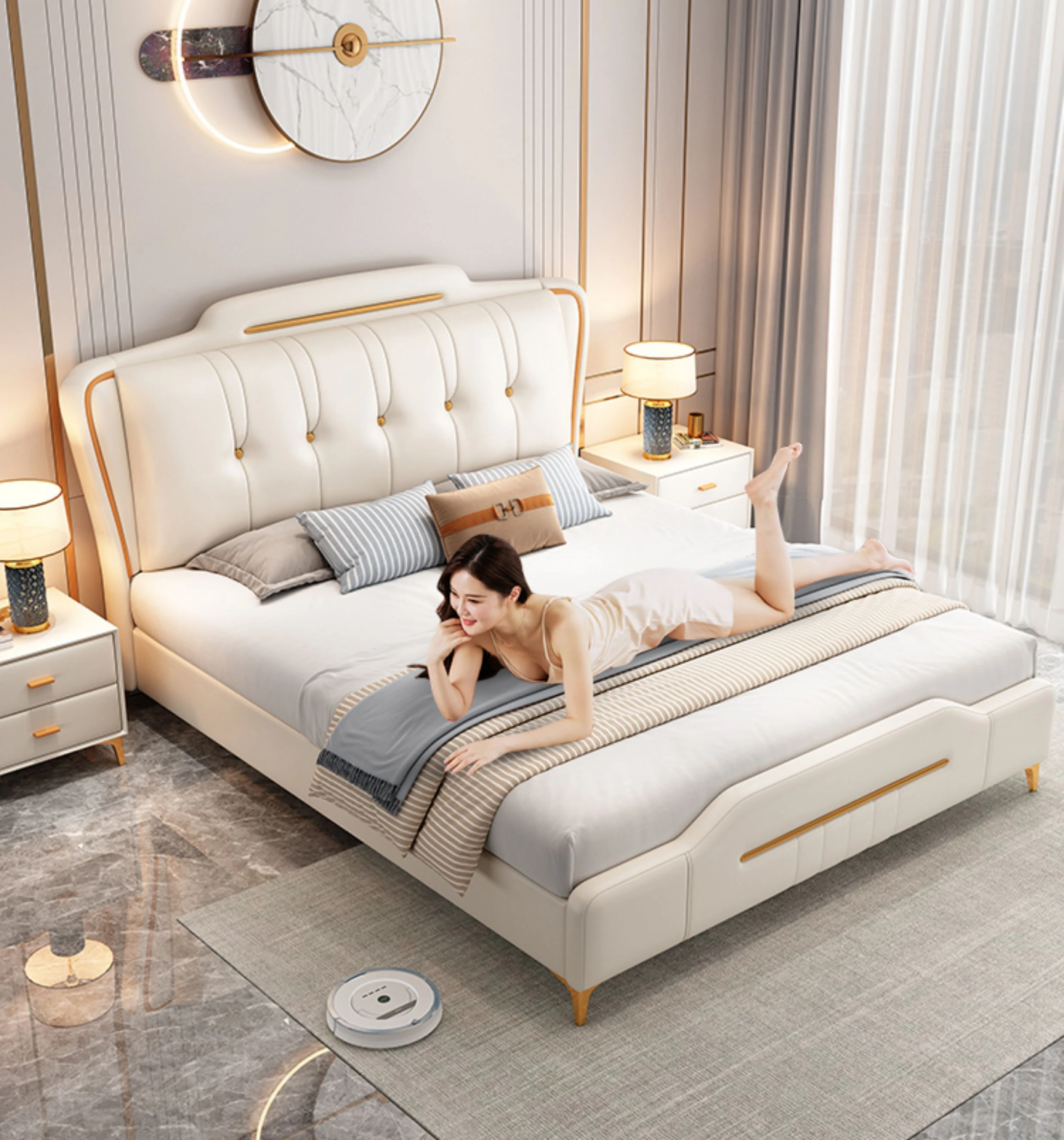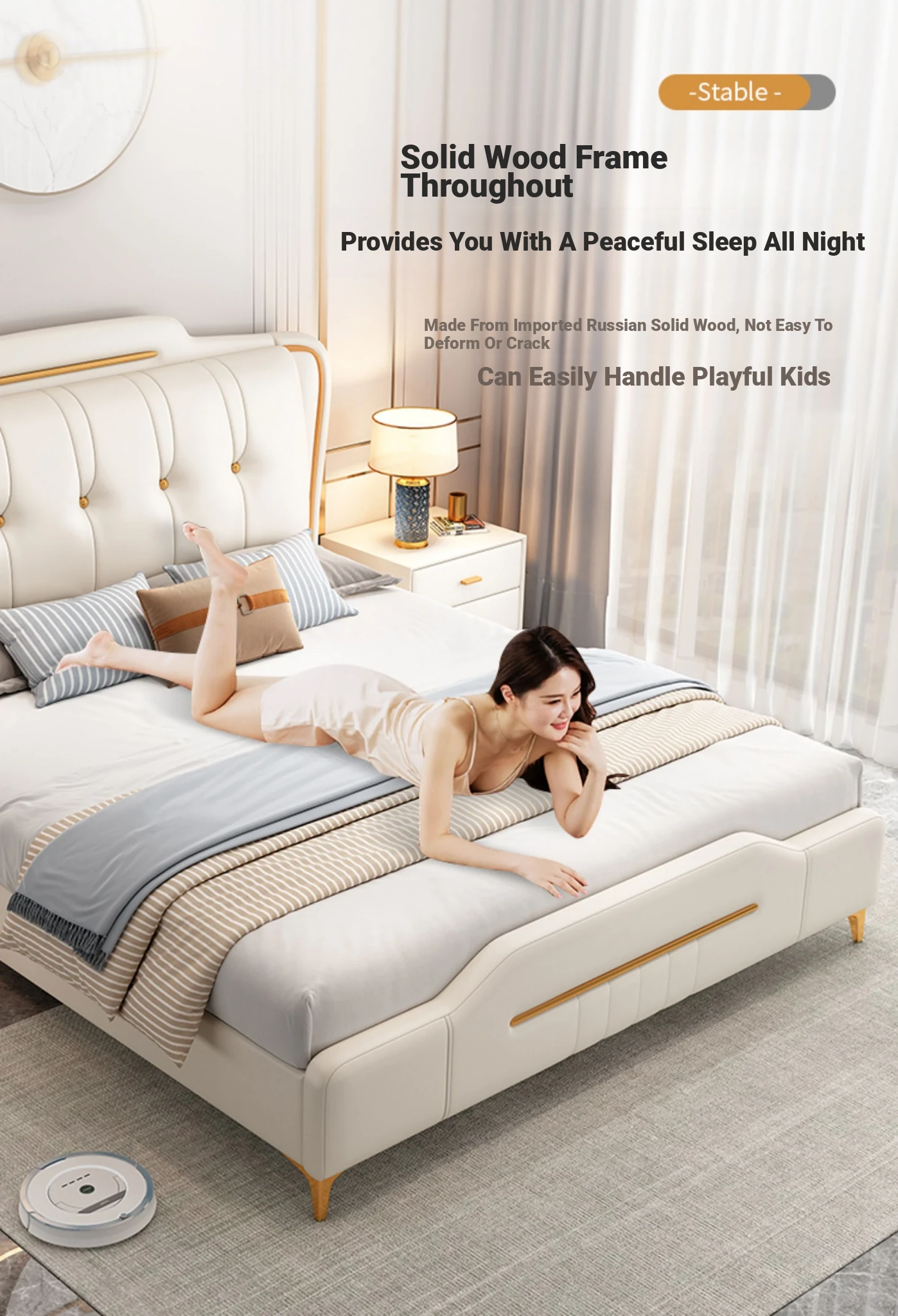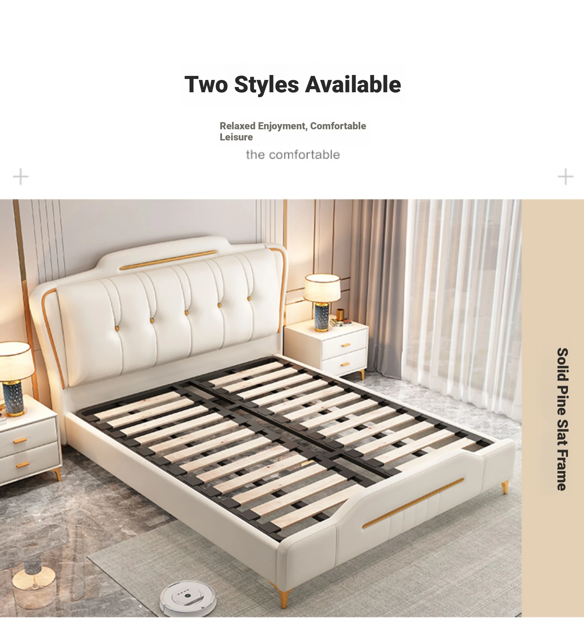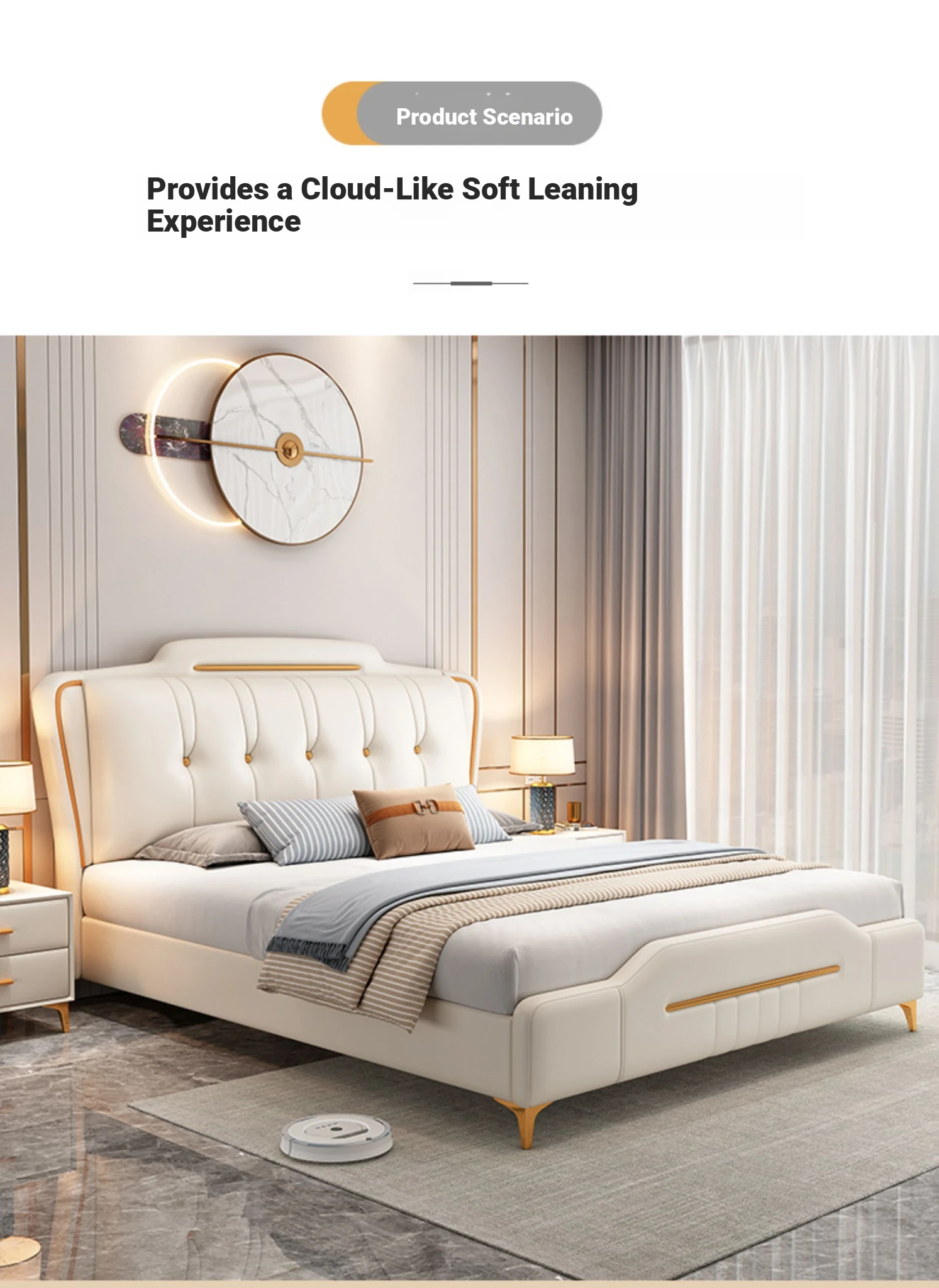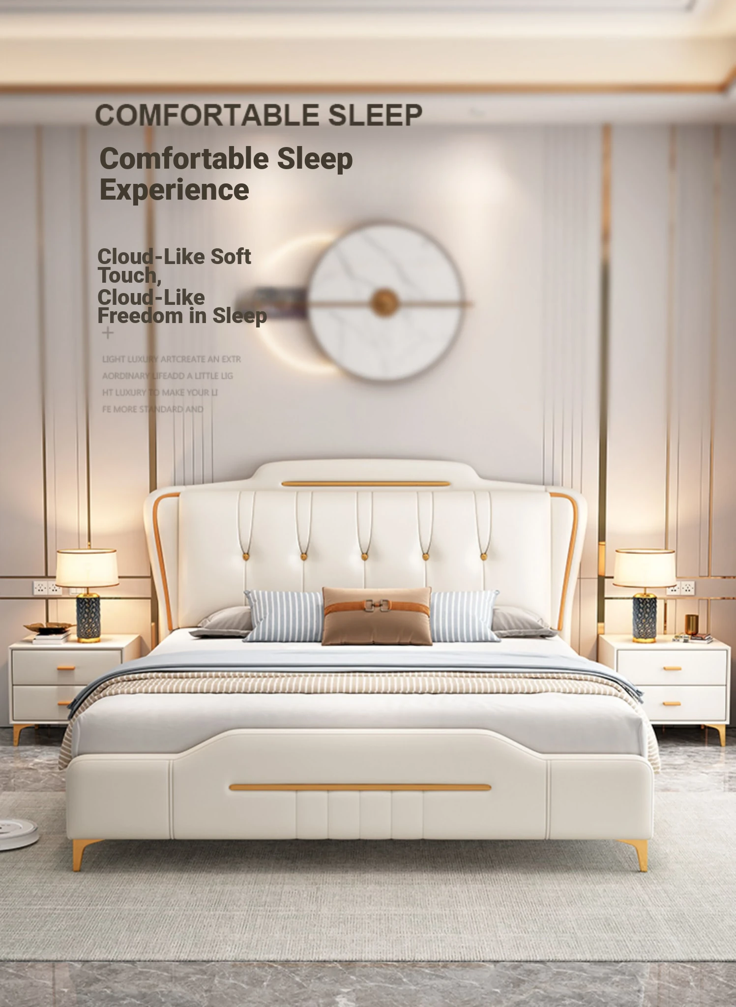 2025 New Nordic Minimalist Italian Luxury 1.8m King Size Bed with High Storage, Genuine Leather Main Bedroom Marriage Bed - Stylish and Functional Design for Modern Homes