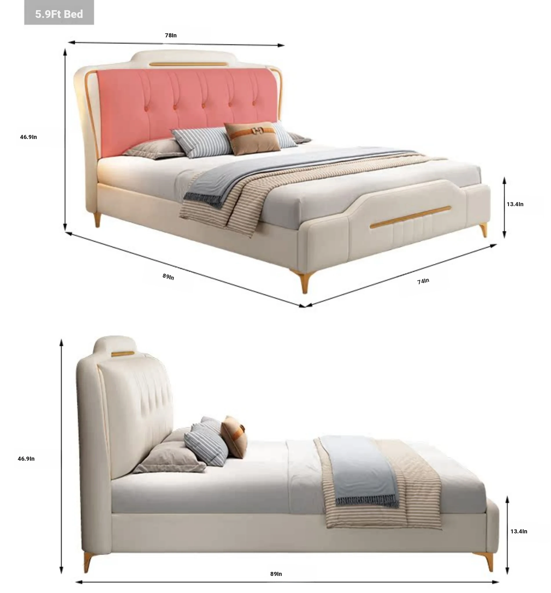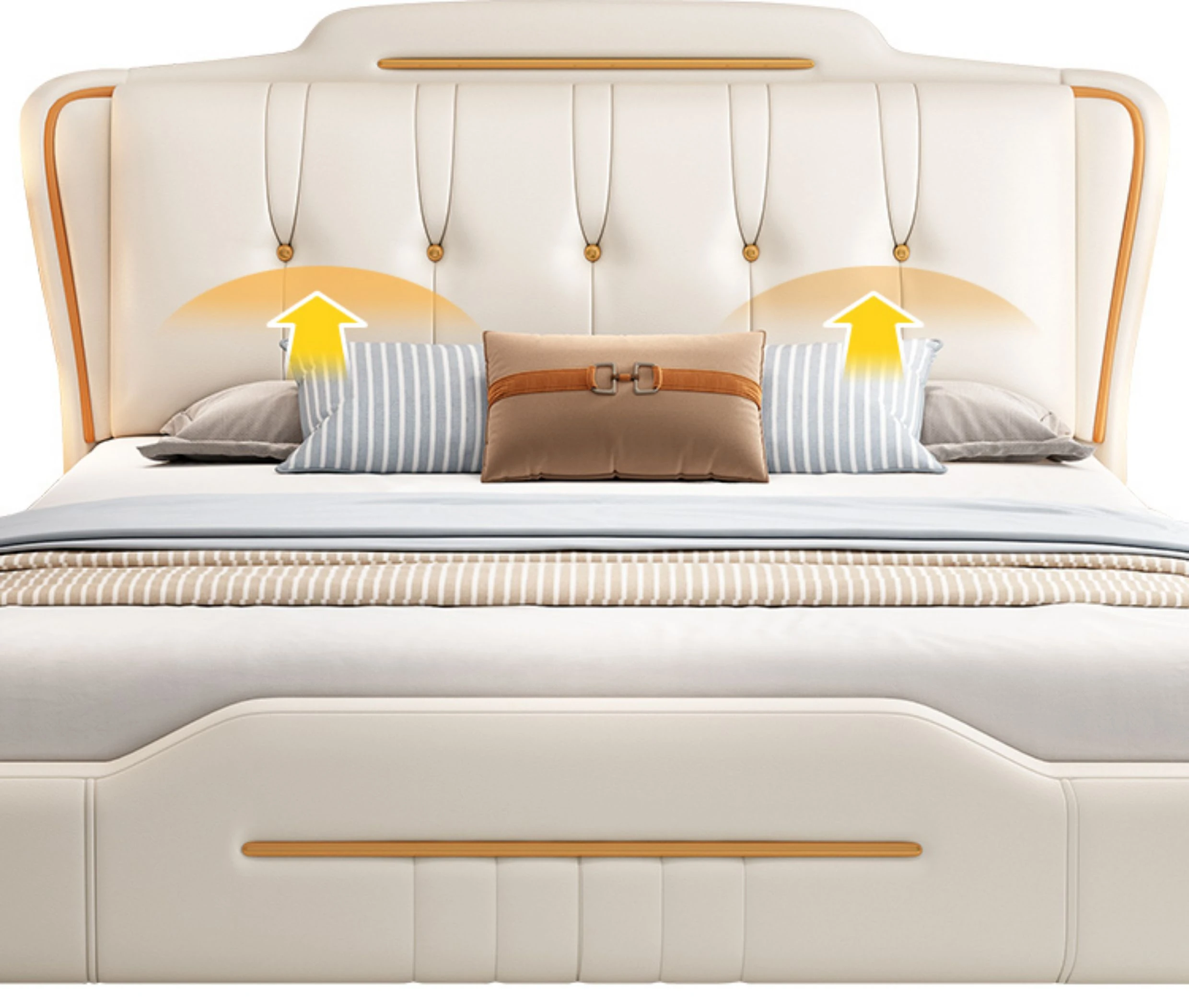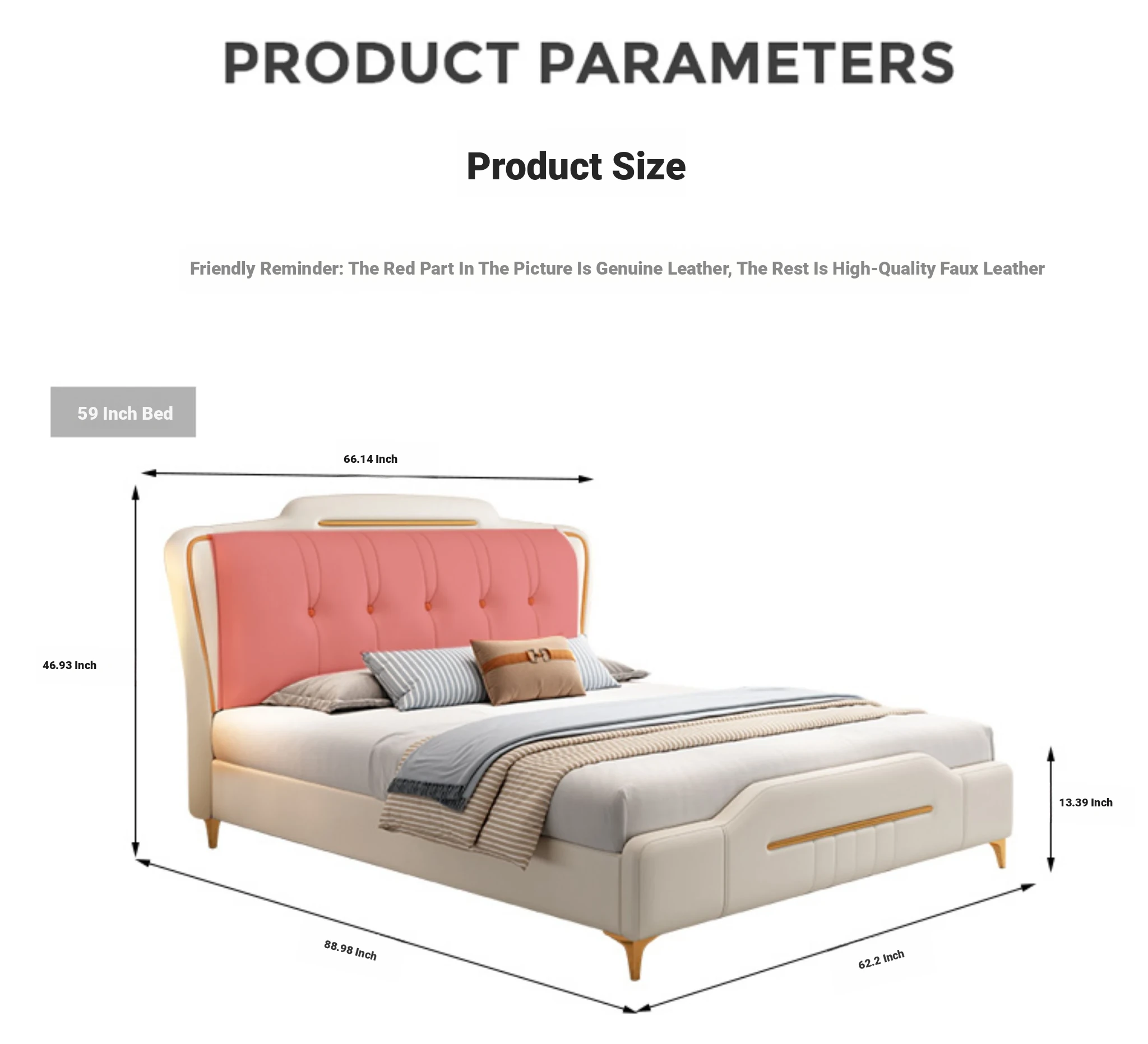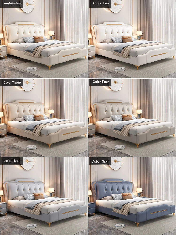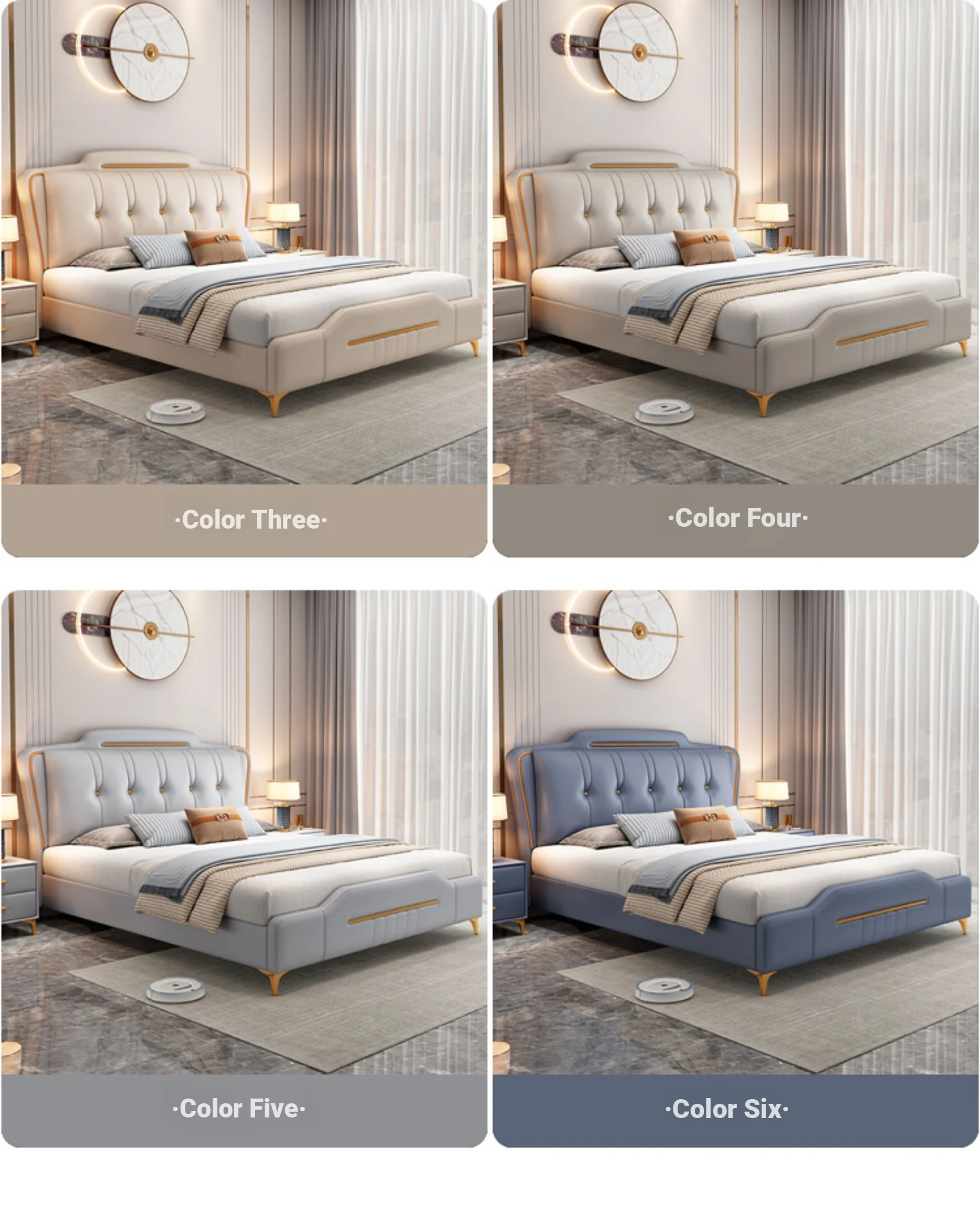 2025 New Nordic Minimalist Italian Luxury 1.8m King Size Bed with High Storage, Genuine Leather Main Bedroom Marriage Bed - Stylish and Functional Design for Modern Homes
