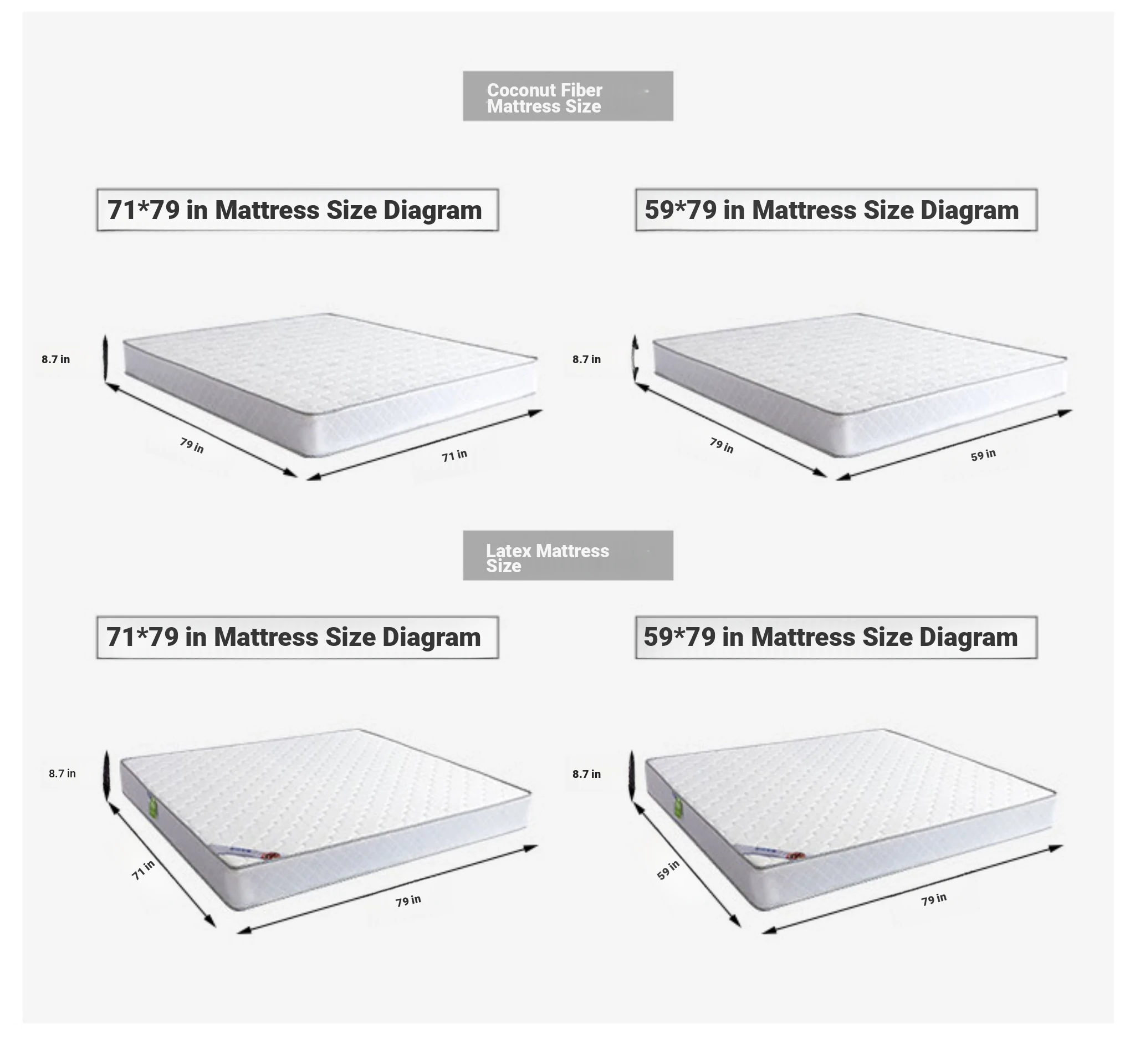 Import pine bare bed +8.66in coconut palm mattress + two bedside tables