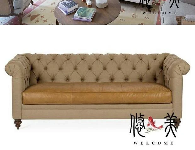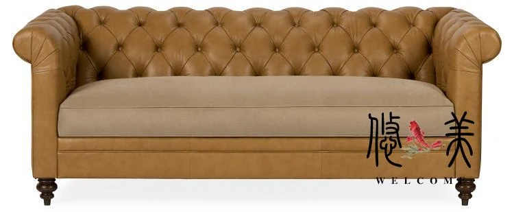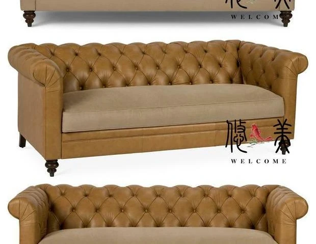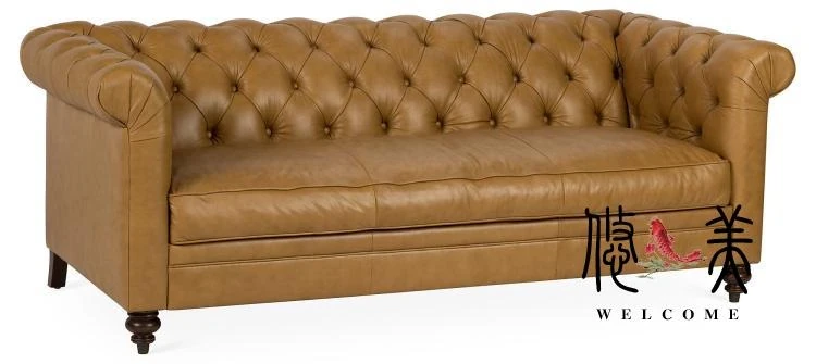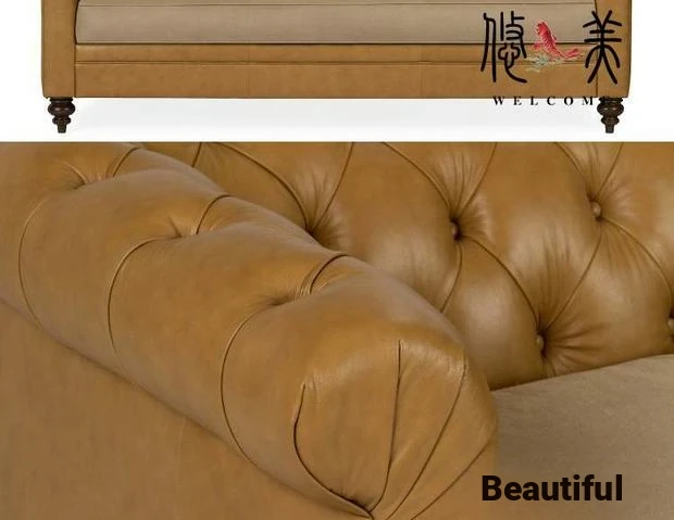 Classic American Leather Sofa - Retro European Style Waxed Leather Couch for Small to Medium Living Rooms - Elegant Minimalist Design, 3-Seater
