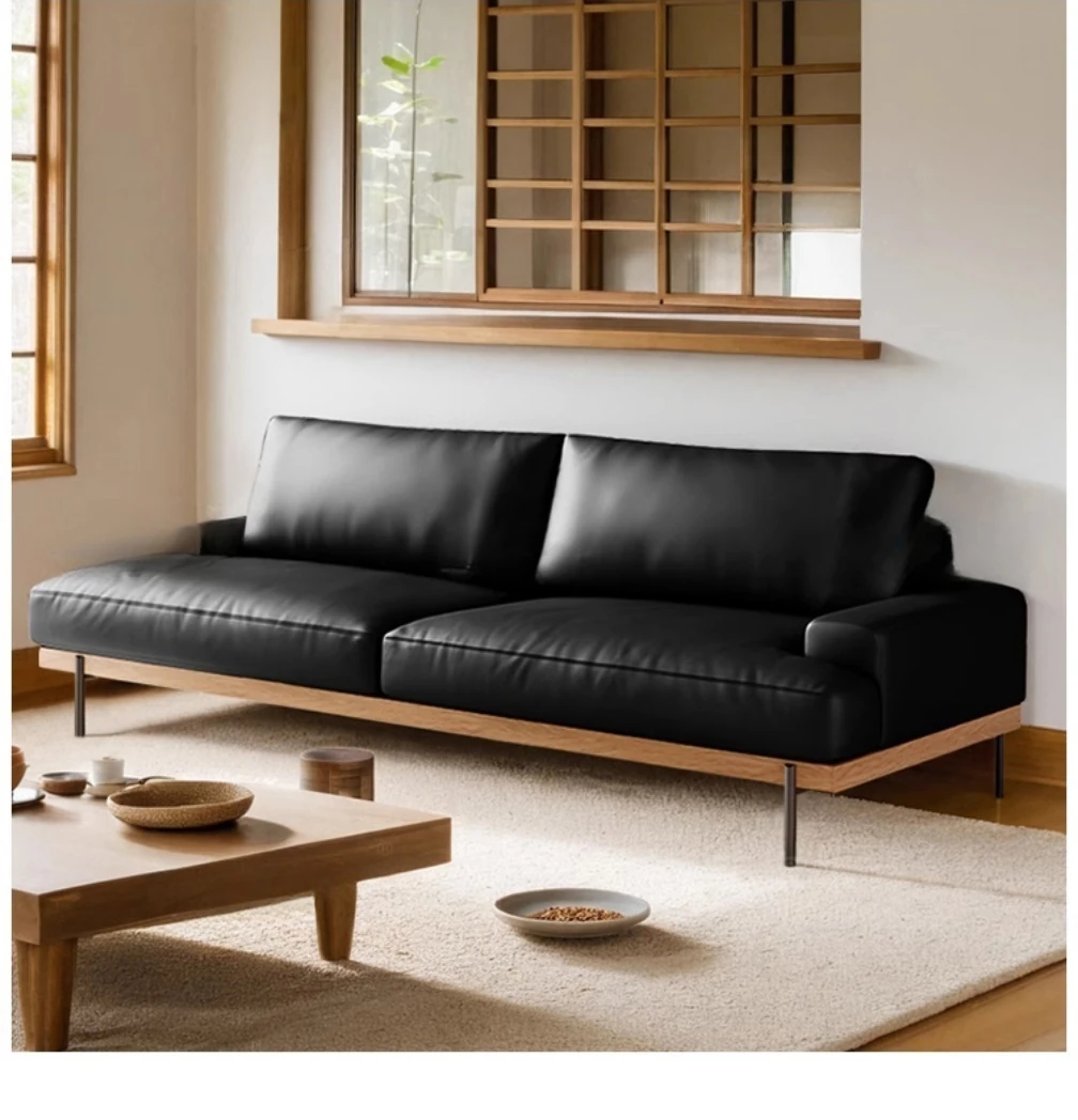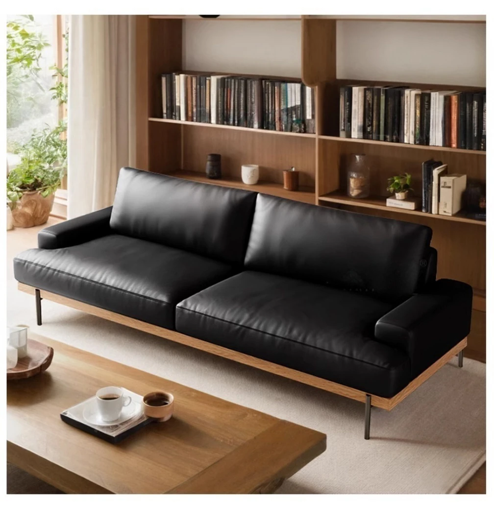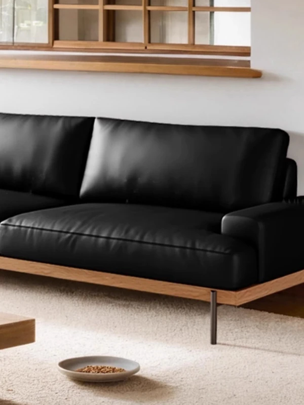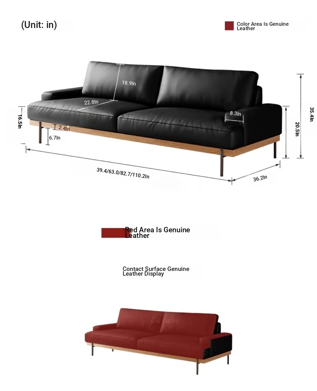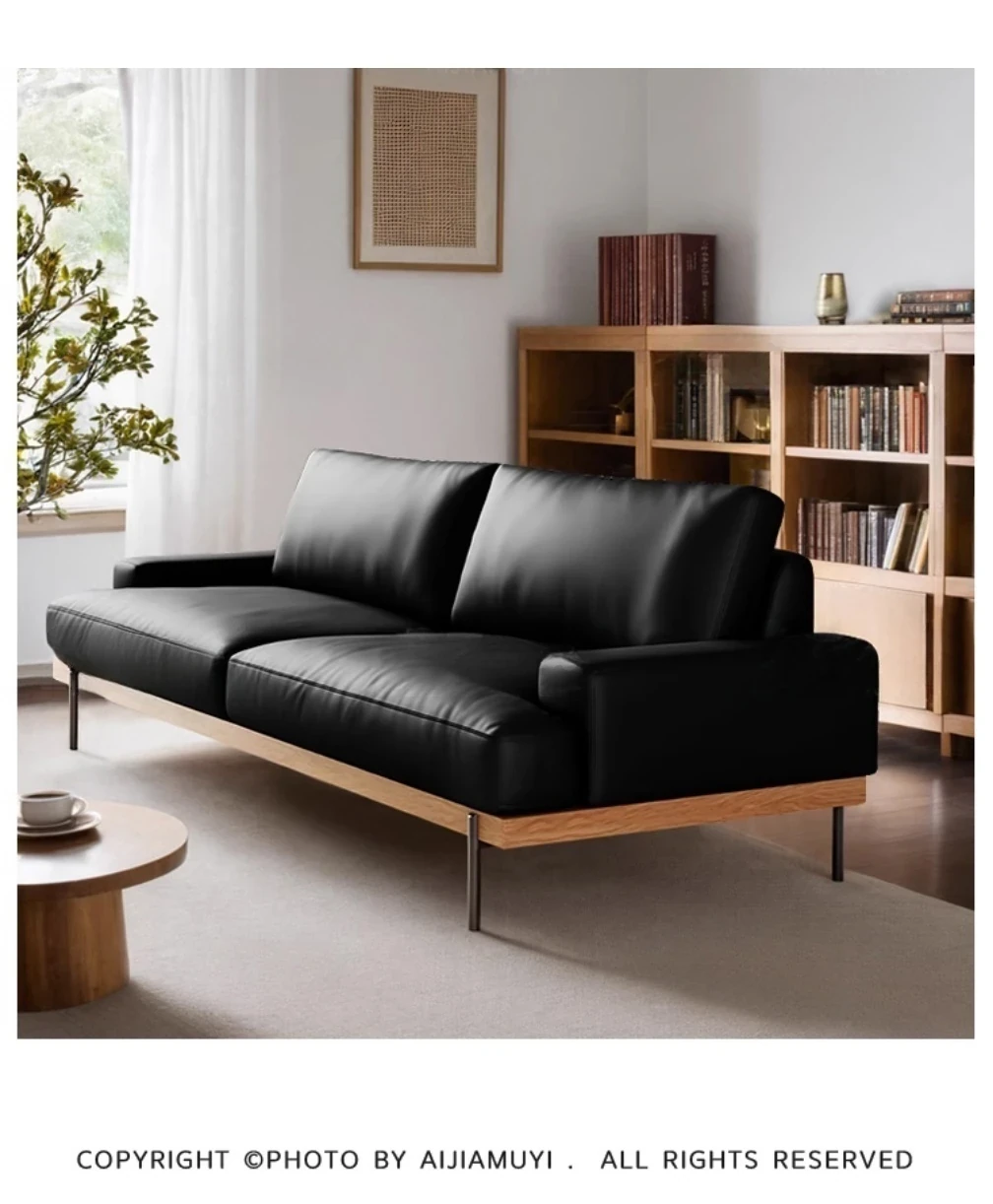 Compact Genuine Leather Sofa - Minimalist Top Grain Cowhide, Japanese Style, Italian Design, Perfect for Small Living Rooms, 3-Seater Straight Couch for Home Use