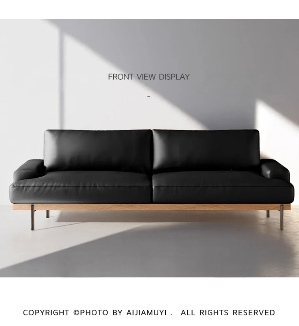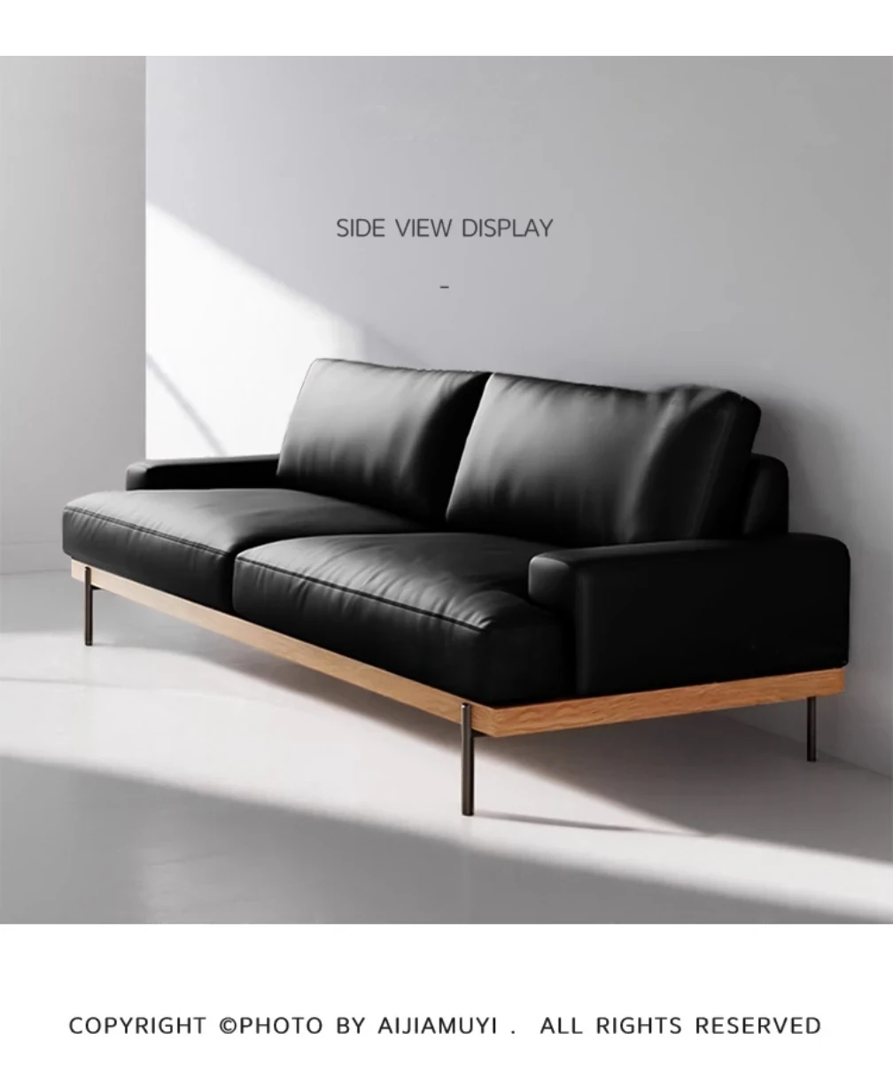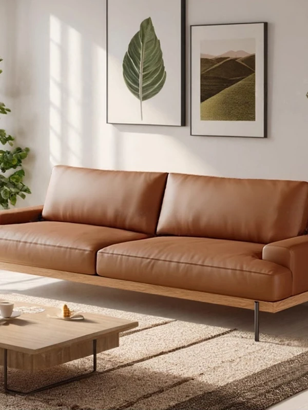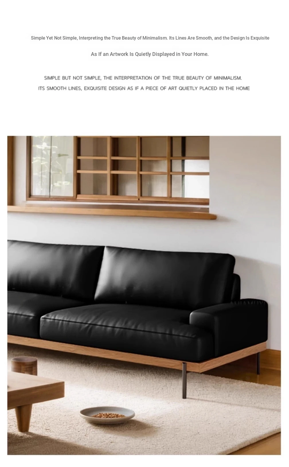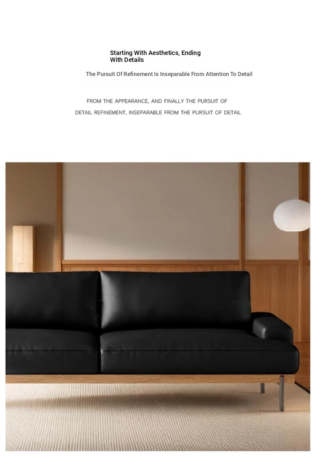 Compact Genuine Leather Sofa - Minimalist Top Grain Cowhide, Japanese Style, Italian Design, Perfect for Small Living Rooms, 3-Seater Straight Couch for Home Use