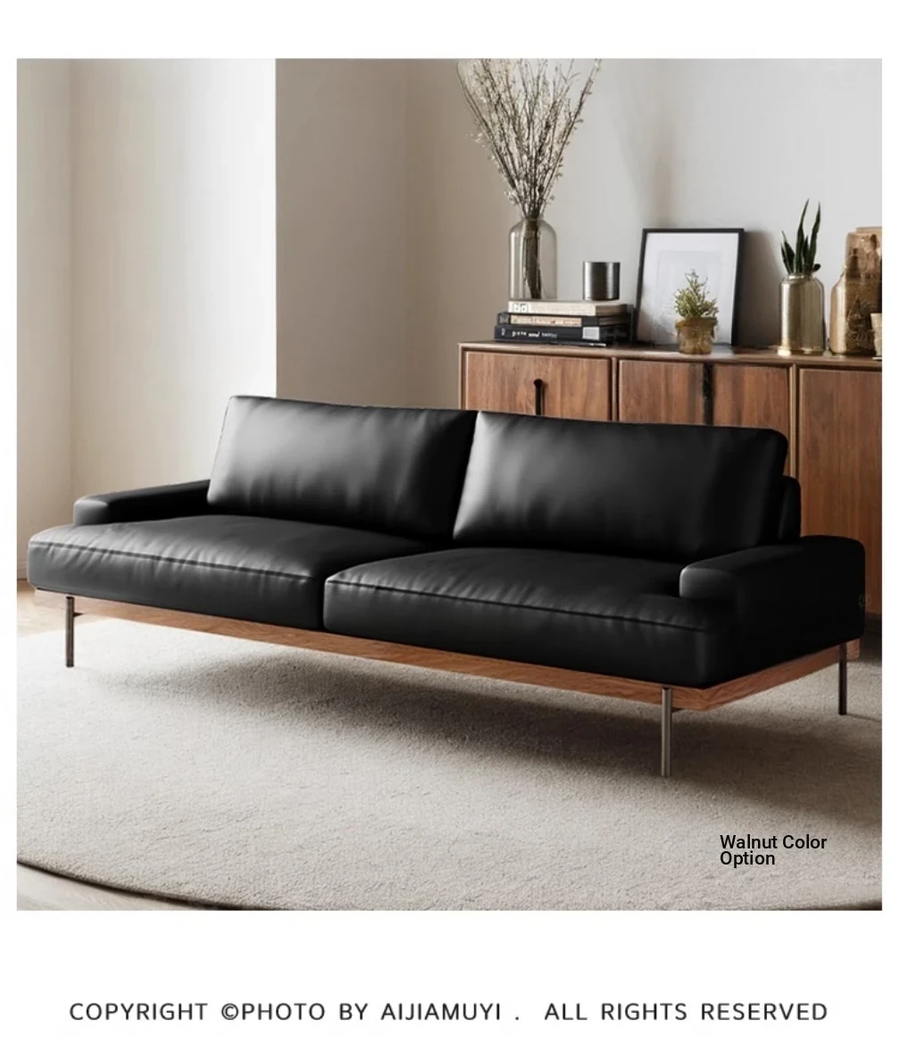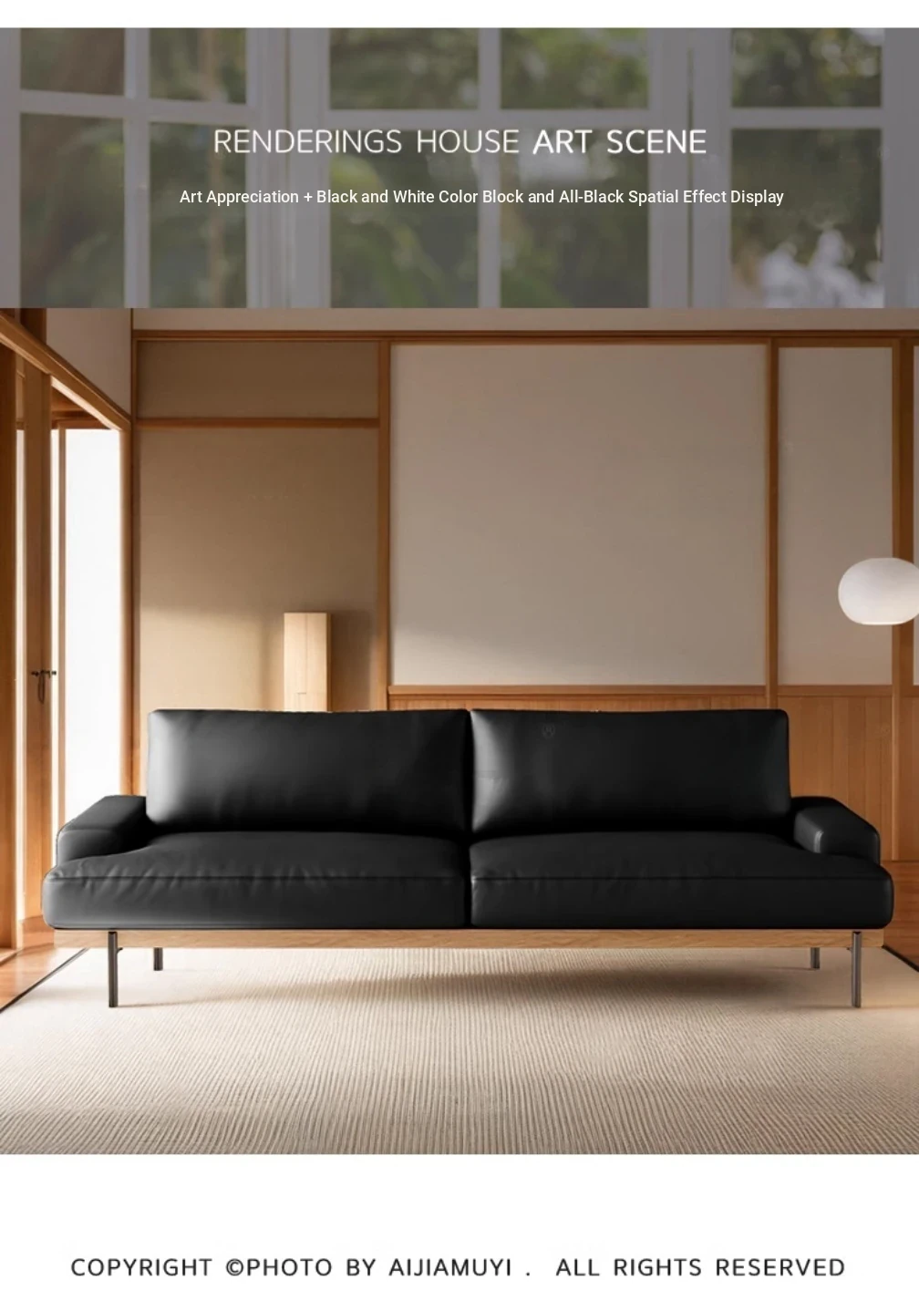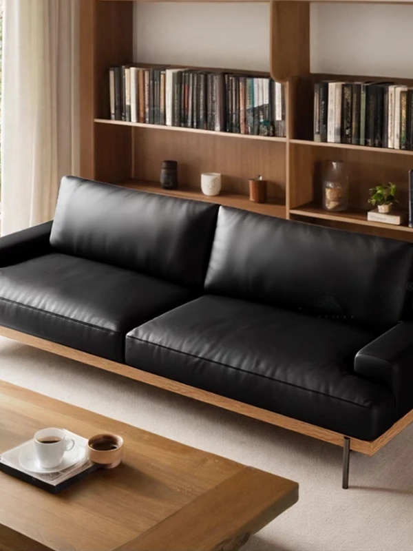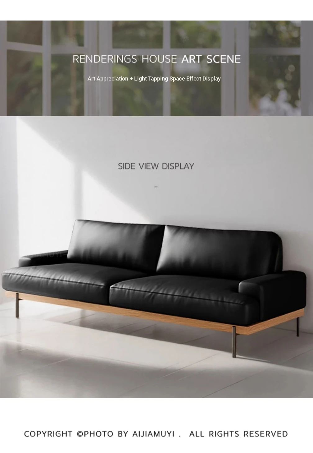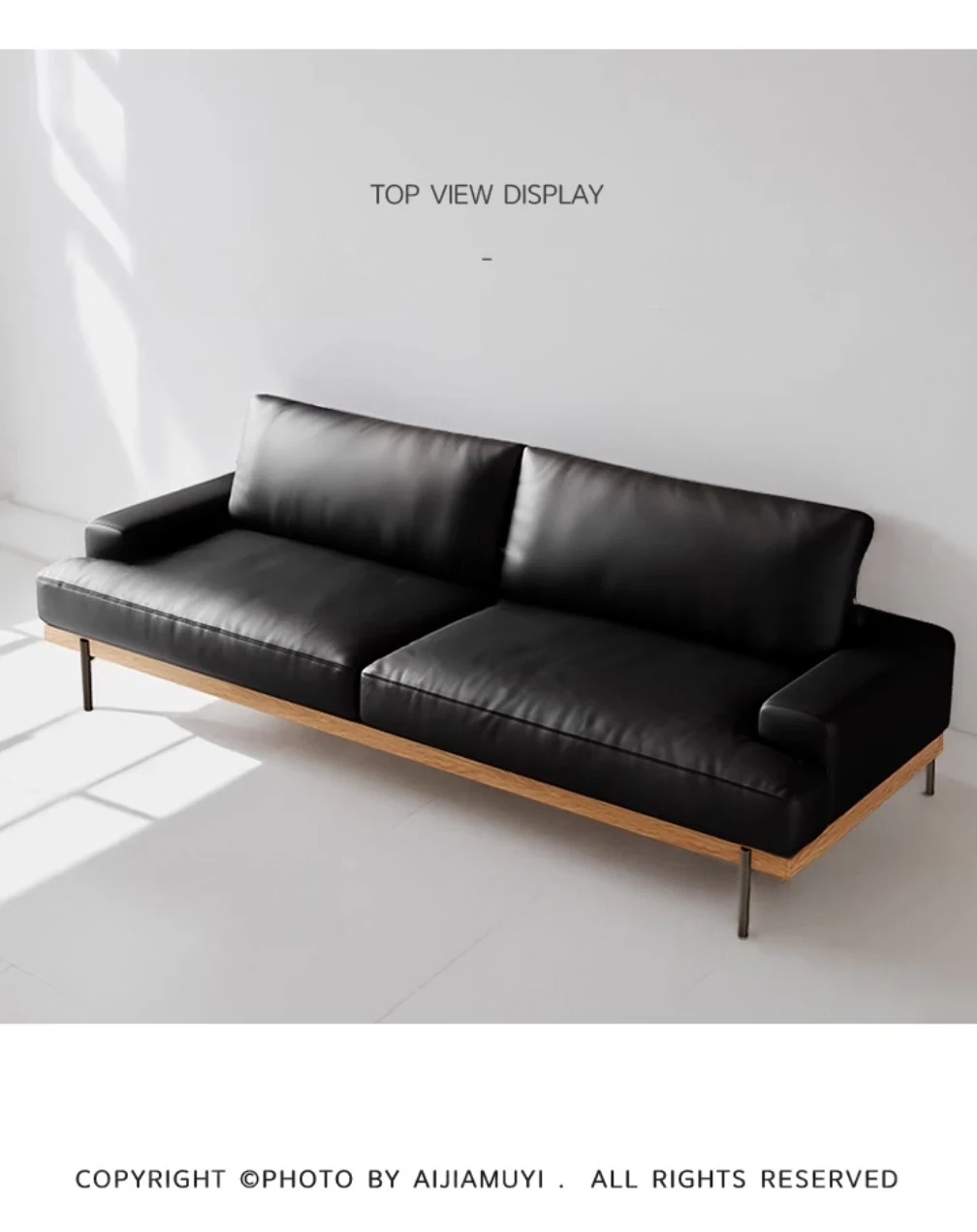 Compact Genuine Leather Sofa - Minimalist Top Grain Cowhide, Japanese Style, Italian Design, Perfect for Small Living Rooms, 3-Seater Straight Couch for Home Use
