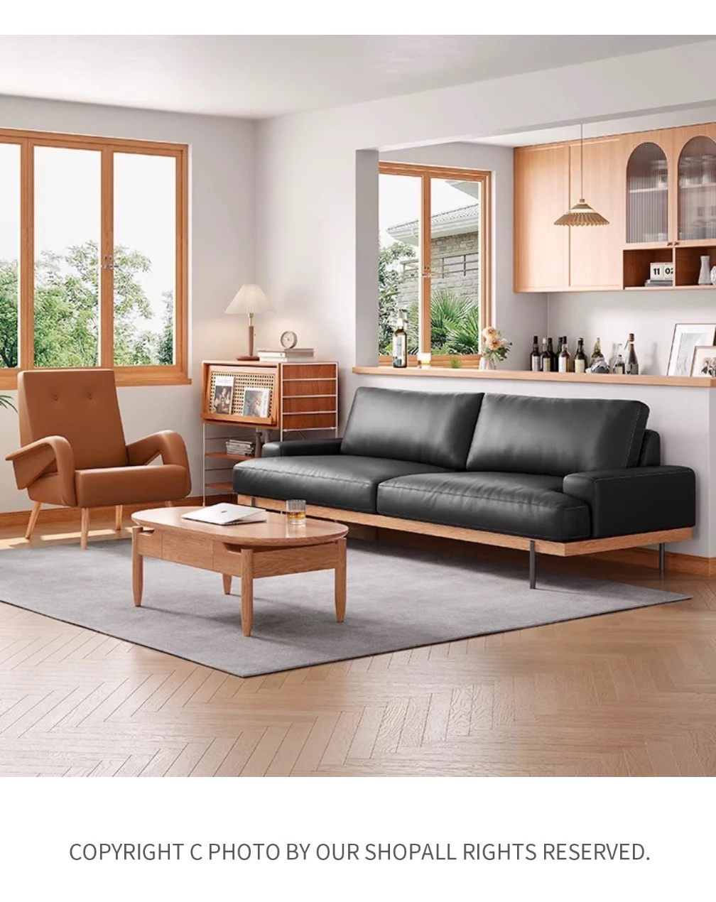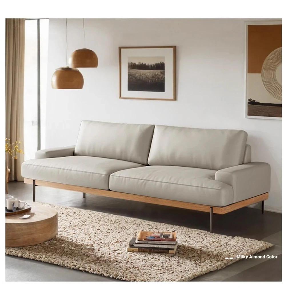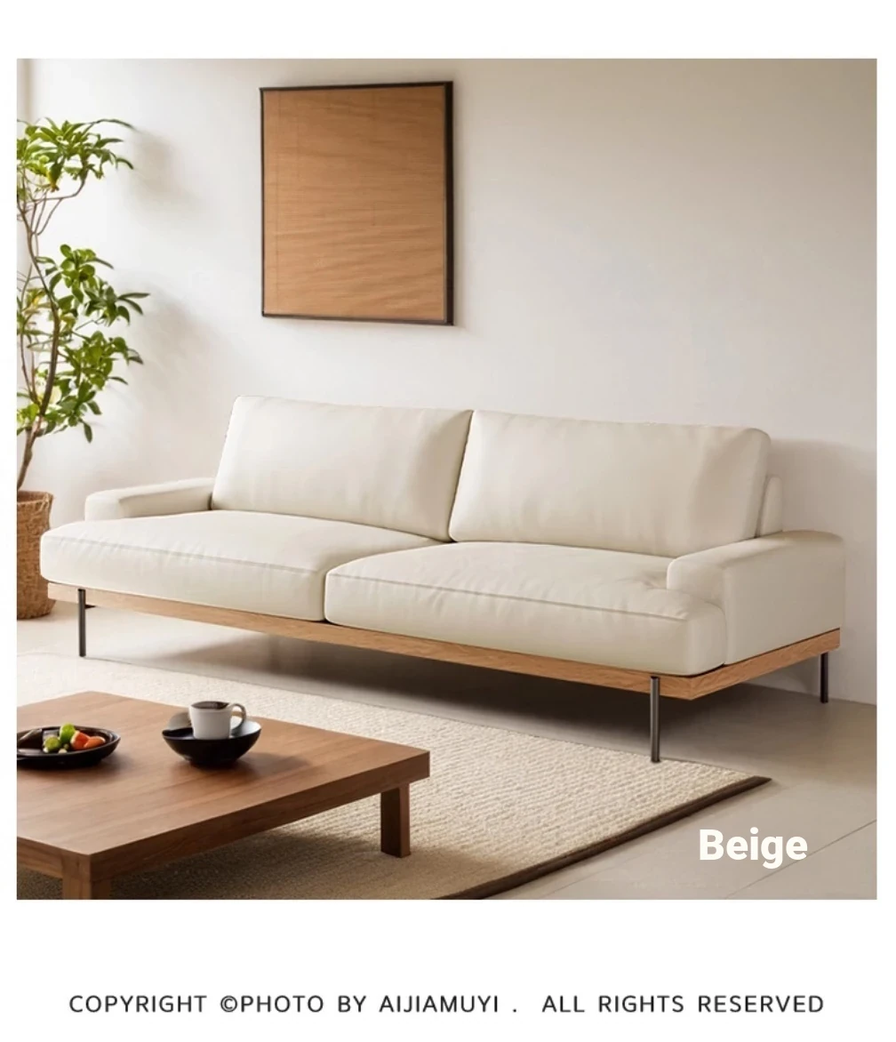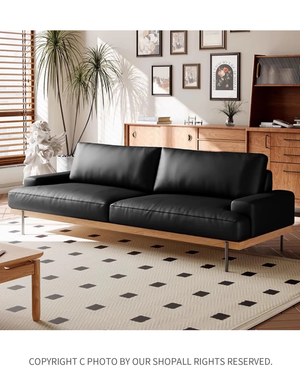 Compact Genuine Leather Sofa - Minimalist Top Grain Cowhide, Japanese Style, Italian Design, Perfect for Small Living Rooms, 3-Seater Straight Couch for Home Use