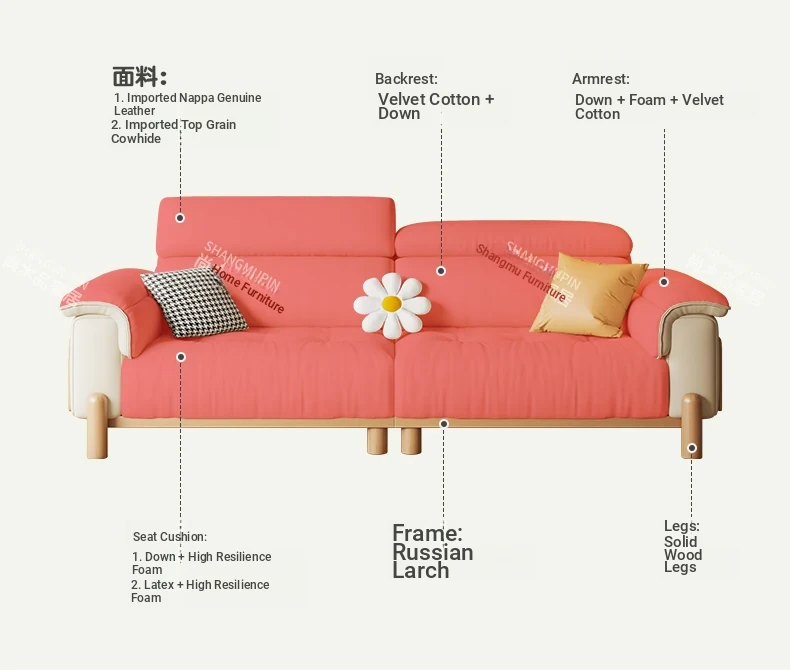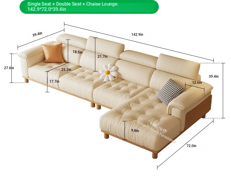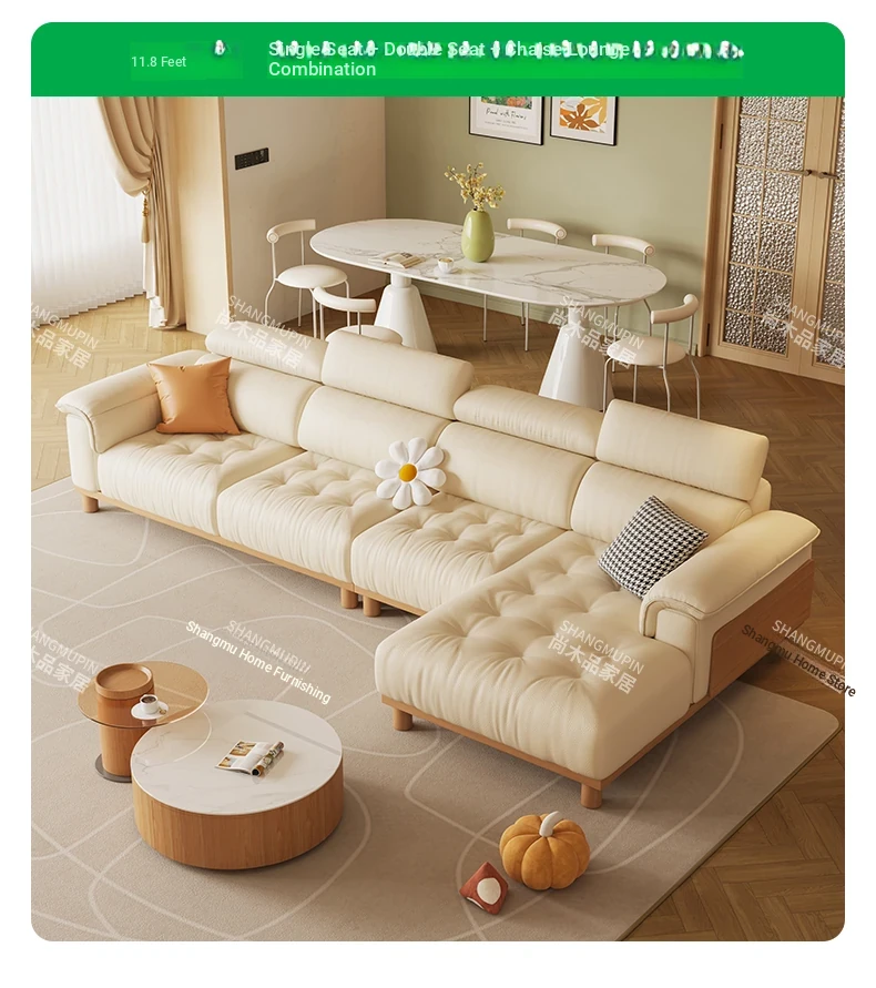 Thickened the first layer of small yellow cattle leather [flagship-contact surface leather] 94.49in three-person position