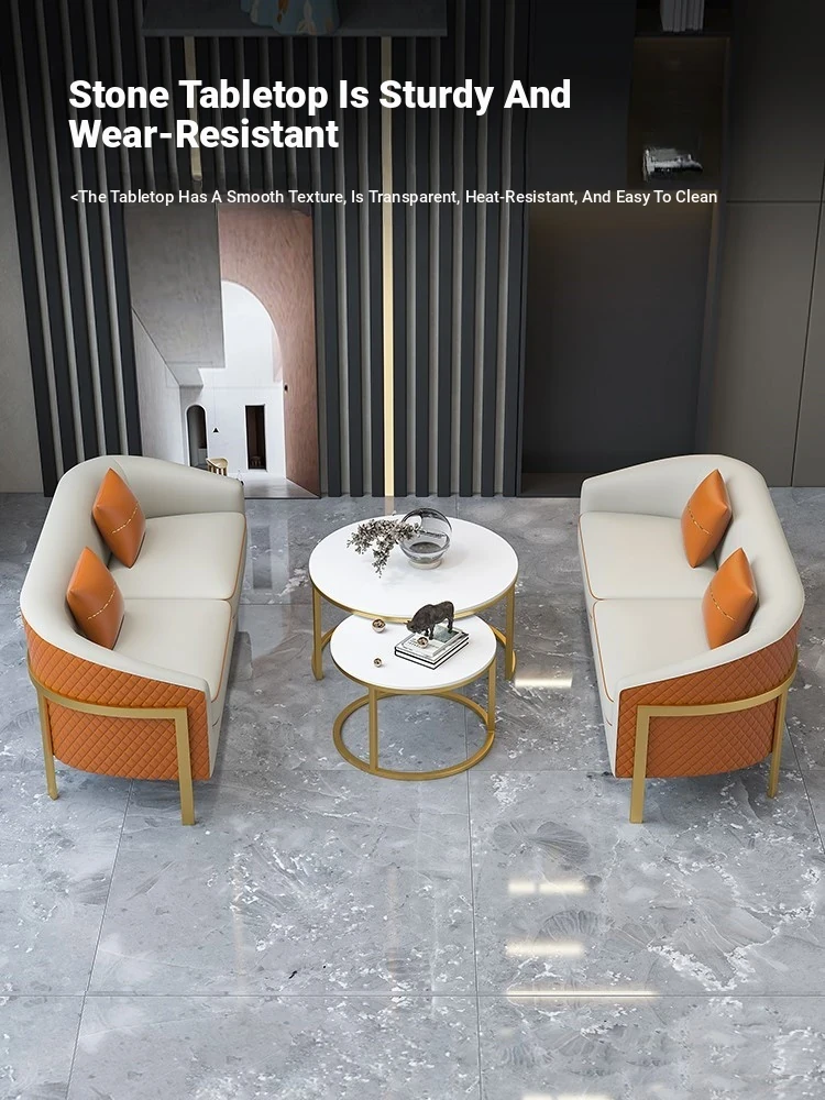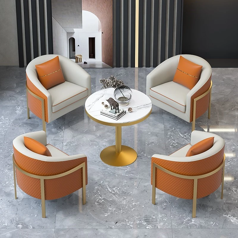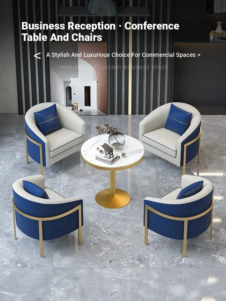 Elegant Luxury Hotel Lobby Sofa Chairs - Stylish Business Lounge Reception Seating & Meeting Table Set for Sales Offices and Discussions