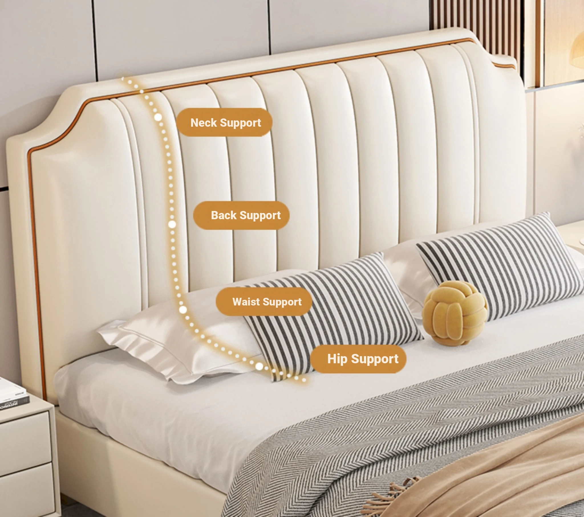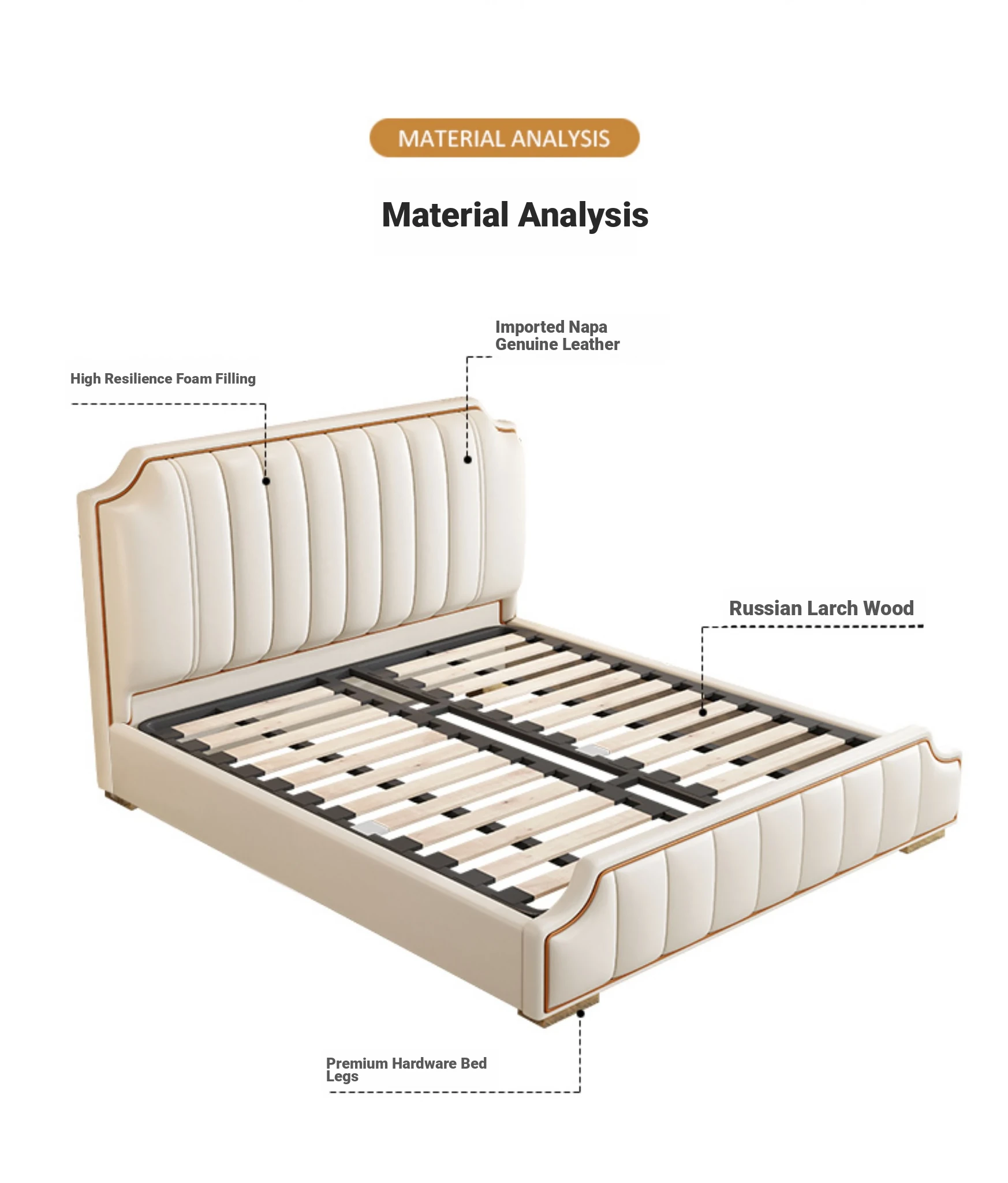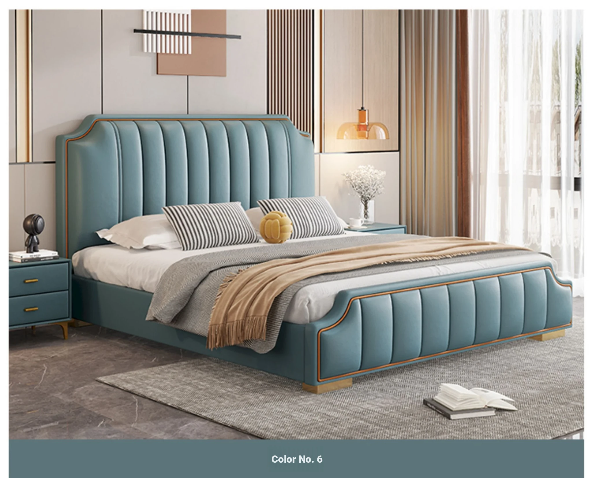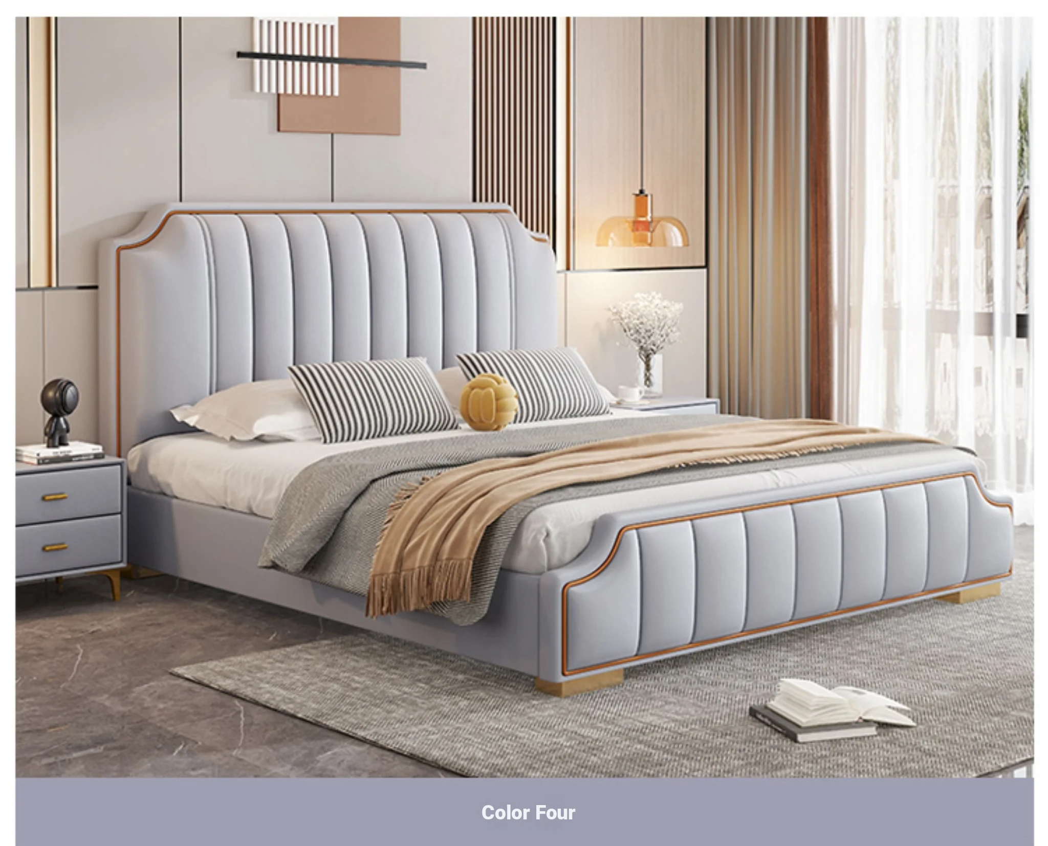 Italian Luxury 1.8m Double Bed - 2024 New Modern Design with High Storage and Slatted Frame, Upholstered in Genuine Leather for Your Master Bedroom