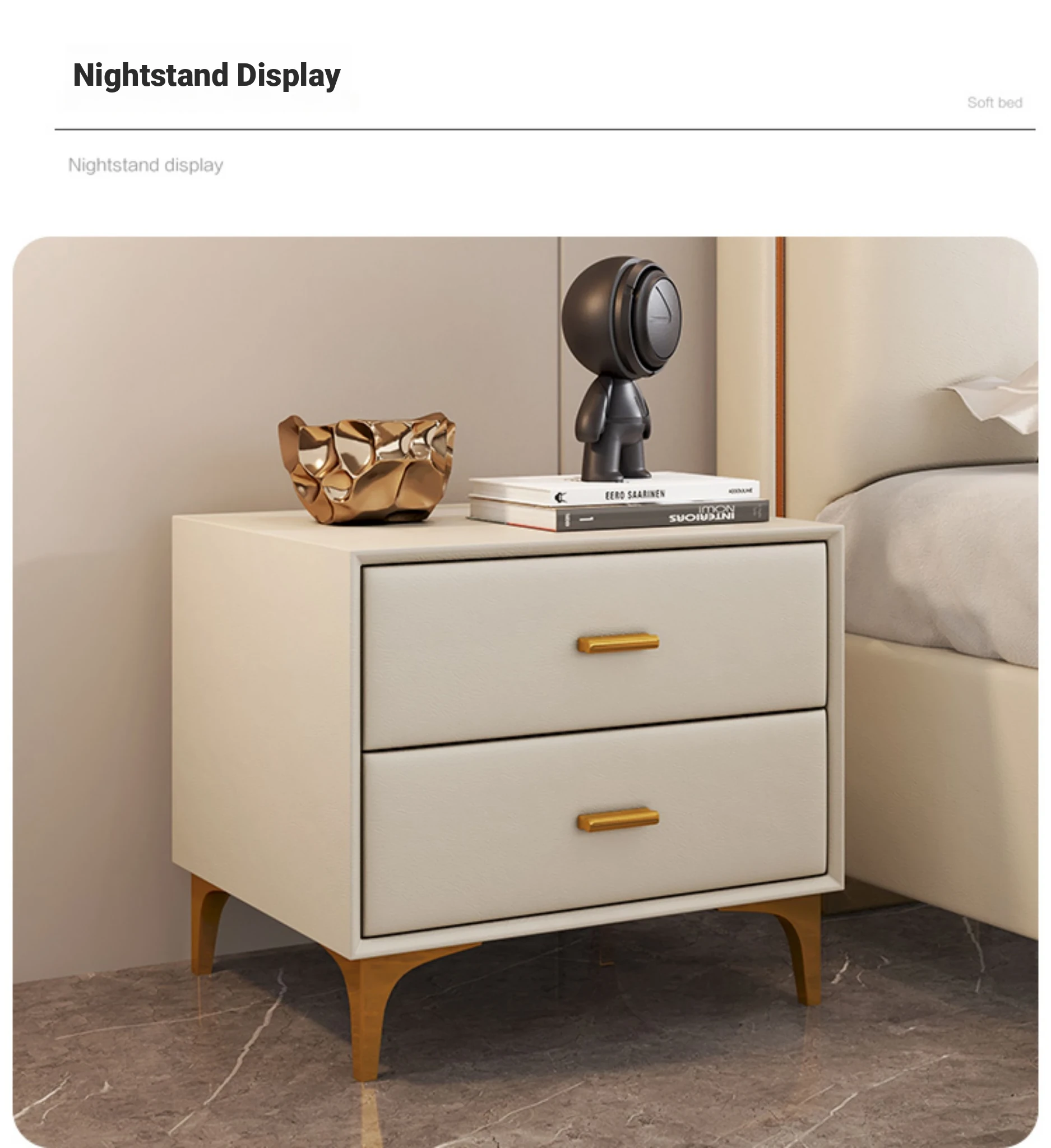 Import pine bare bed + 5D latex mattress + two bedside tables