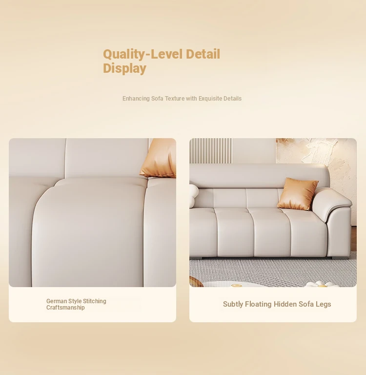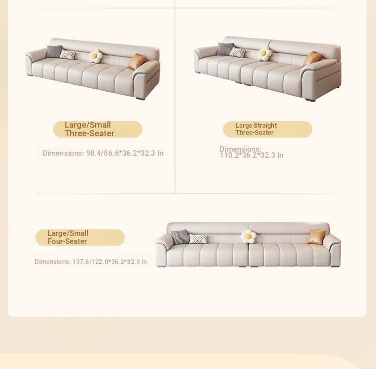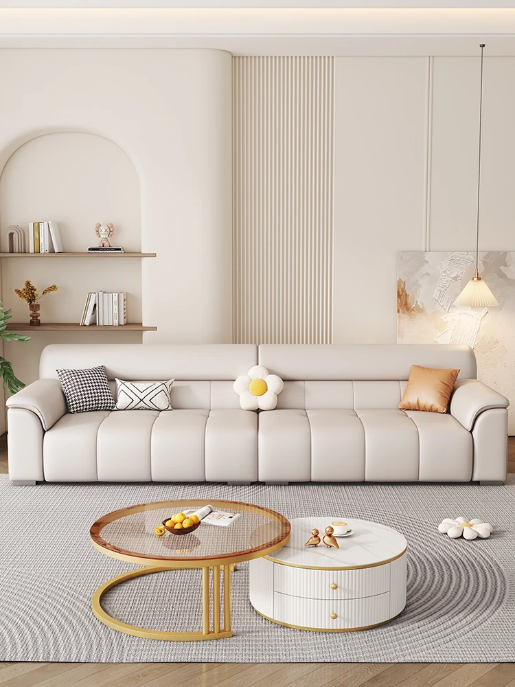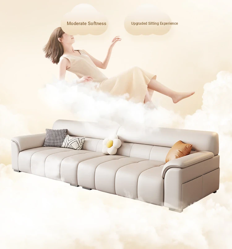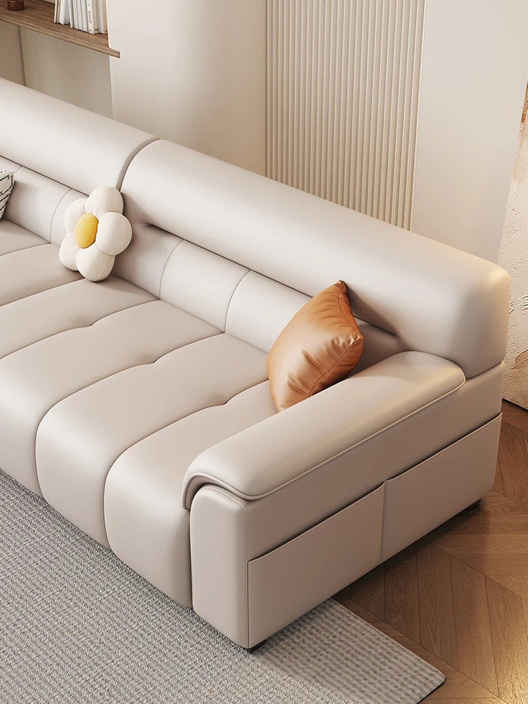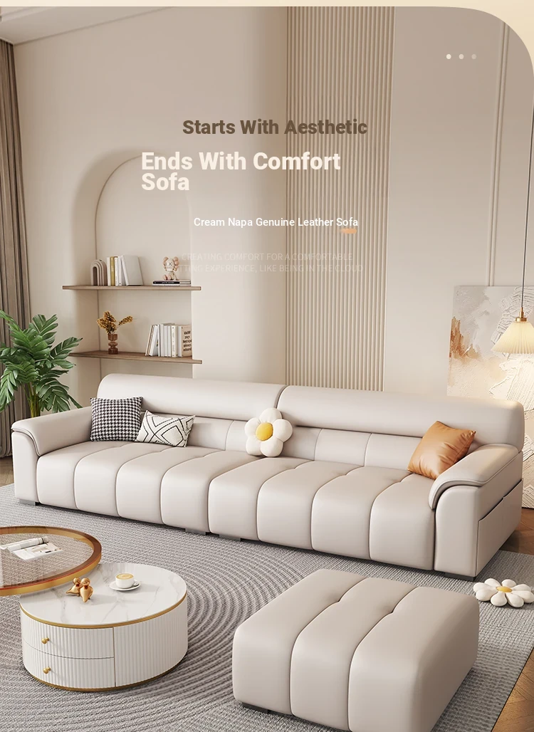 Italian Minimalist 2025 New Arrival Genuine Leather Sofa - Creamy Aesthetic with Straight Solid Wood Frame, Perfect for Any Size Living Space