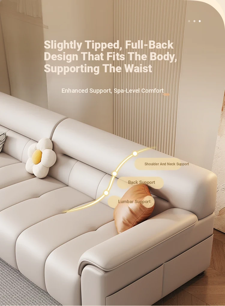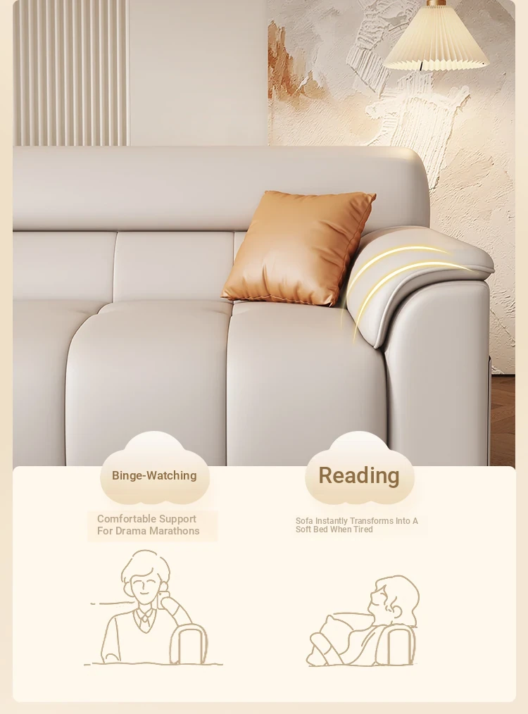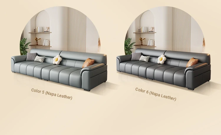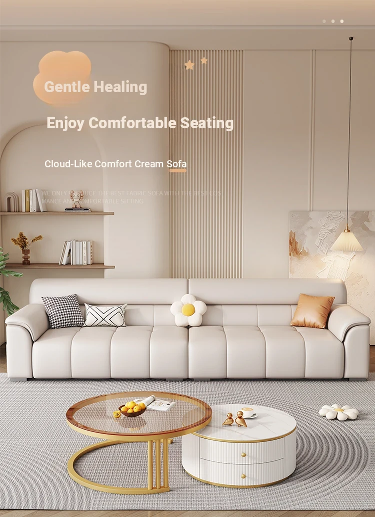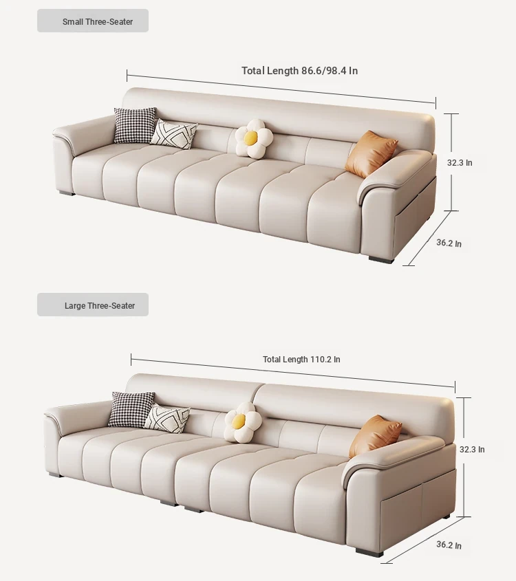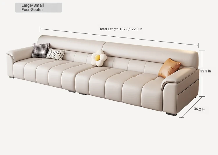Italian Minimalist 2025 New Arrival Genuine Leather Sofa - Creamy Aesthetic with Straight Solid Wood Frame, Perfect for Any Size Living Space