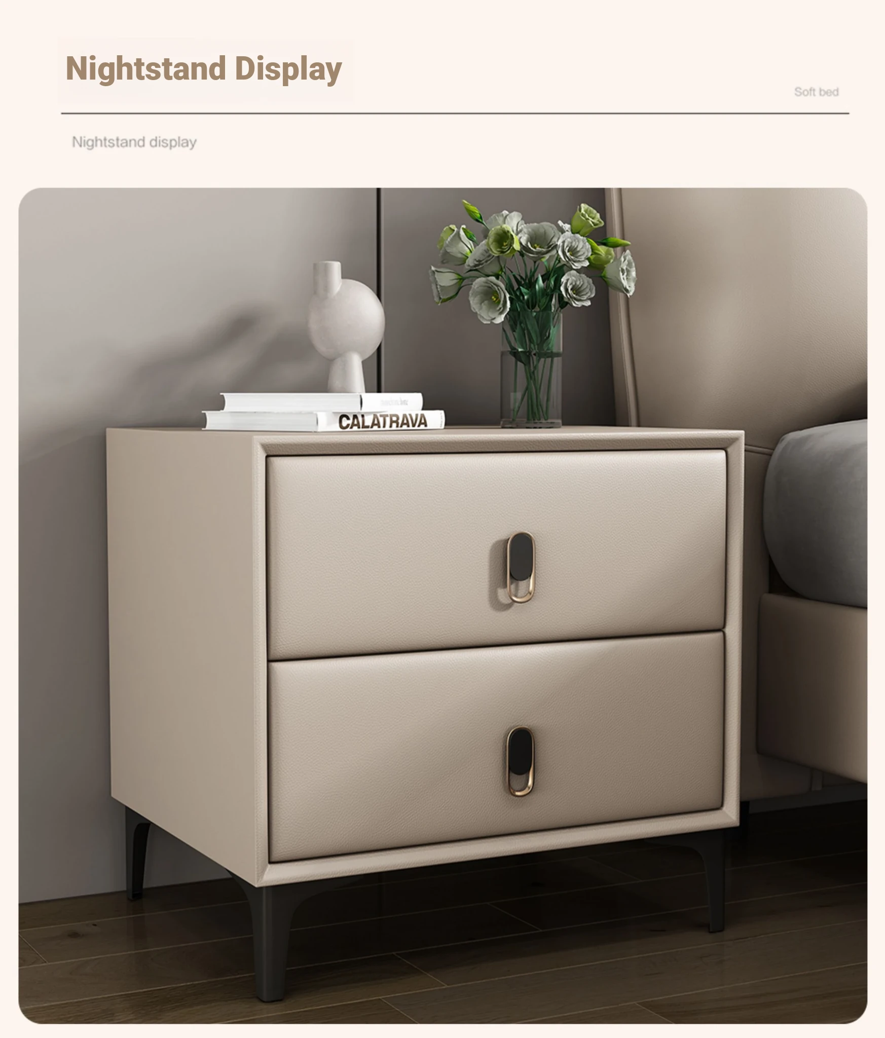 Single bed + one bedside table {Nadifen leather + sponge bedside}