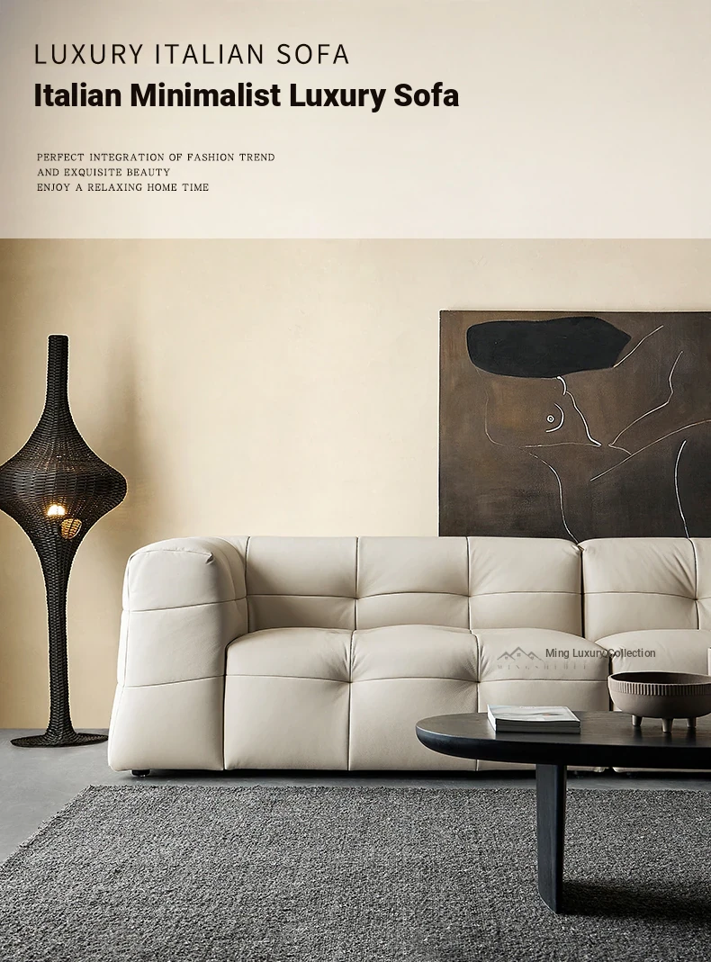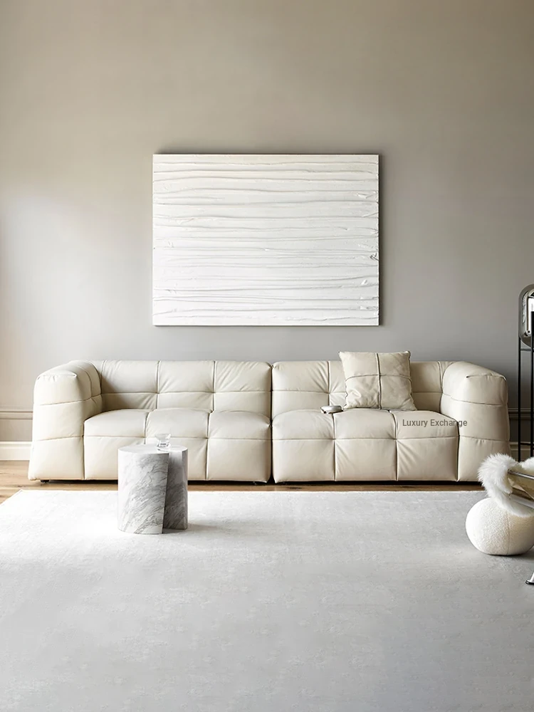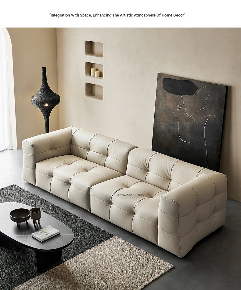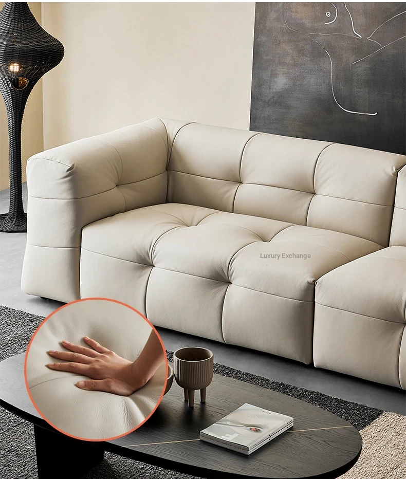 Italian Minimalist Straight-Line Living Room Genuine Leather Cotton Candy Sofa for Small Spaces - Chic Nordic Black Modern Design