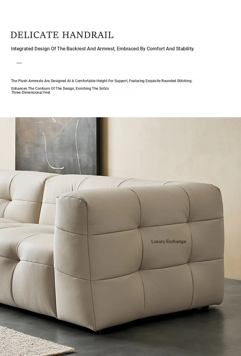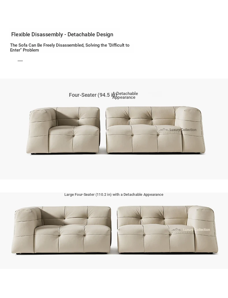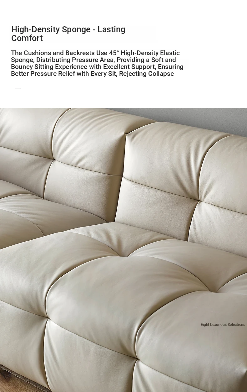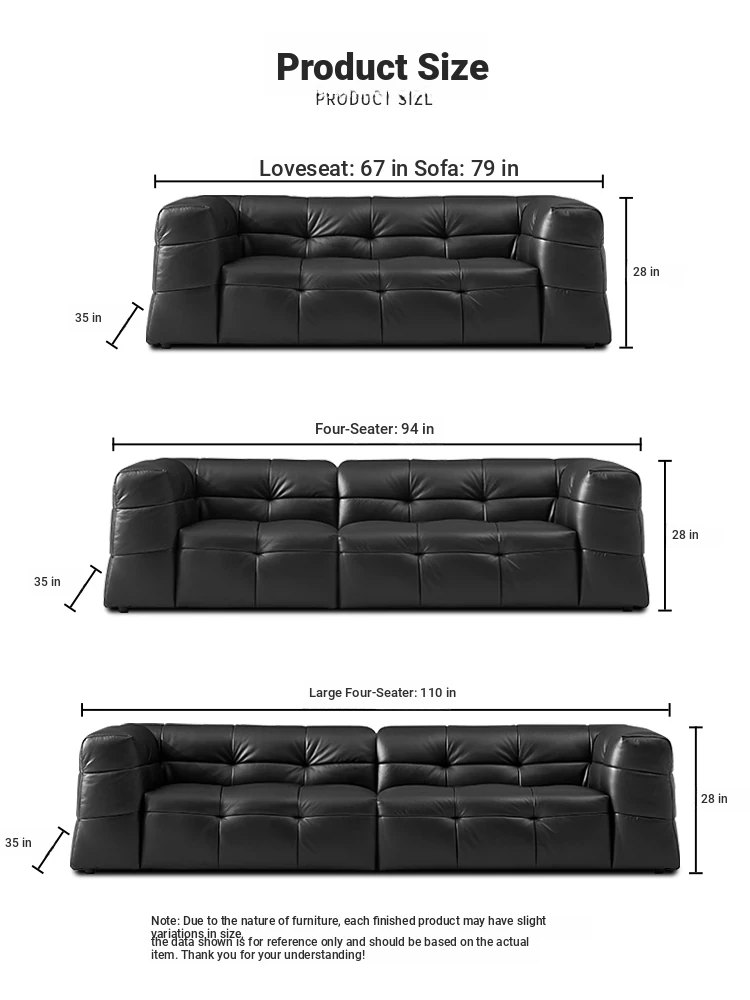 Italian Minimalist Straight-Line Living Room Genuine Leather Cotton Candy Sofa for Small Spaces - Chic Nordic Black Modern Design