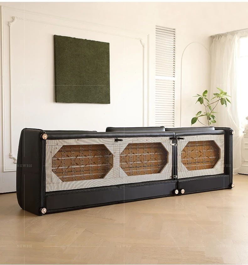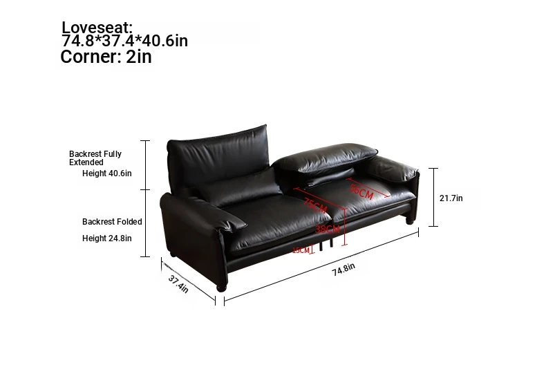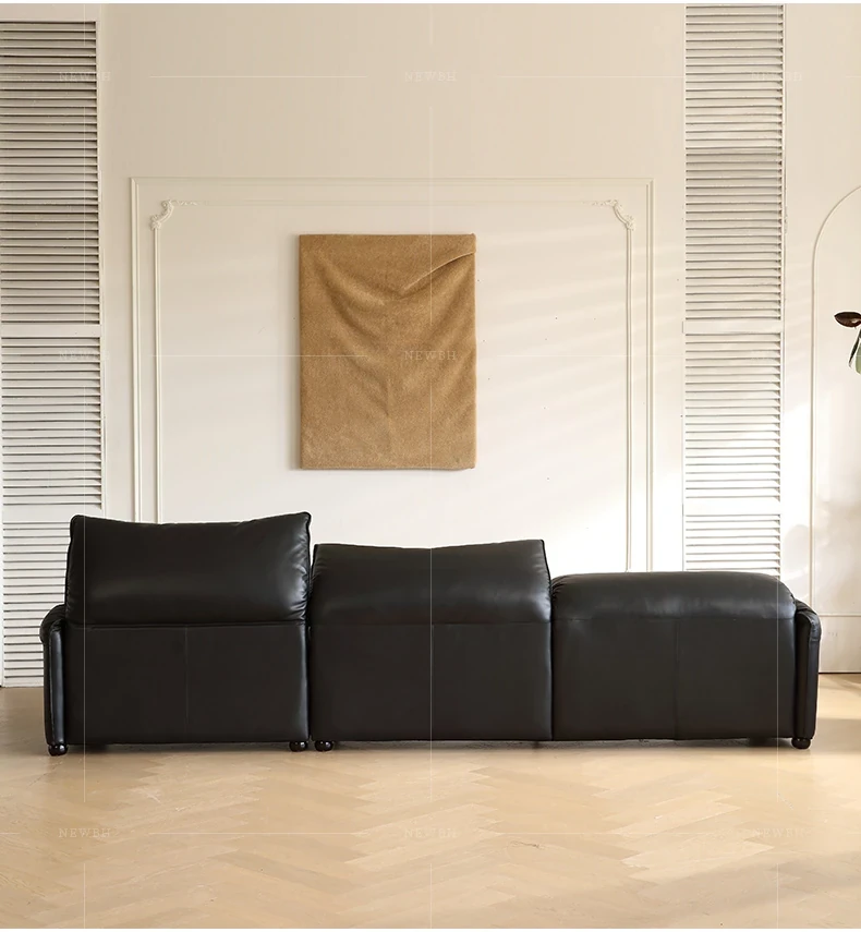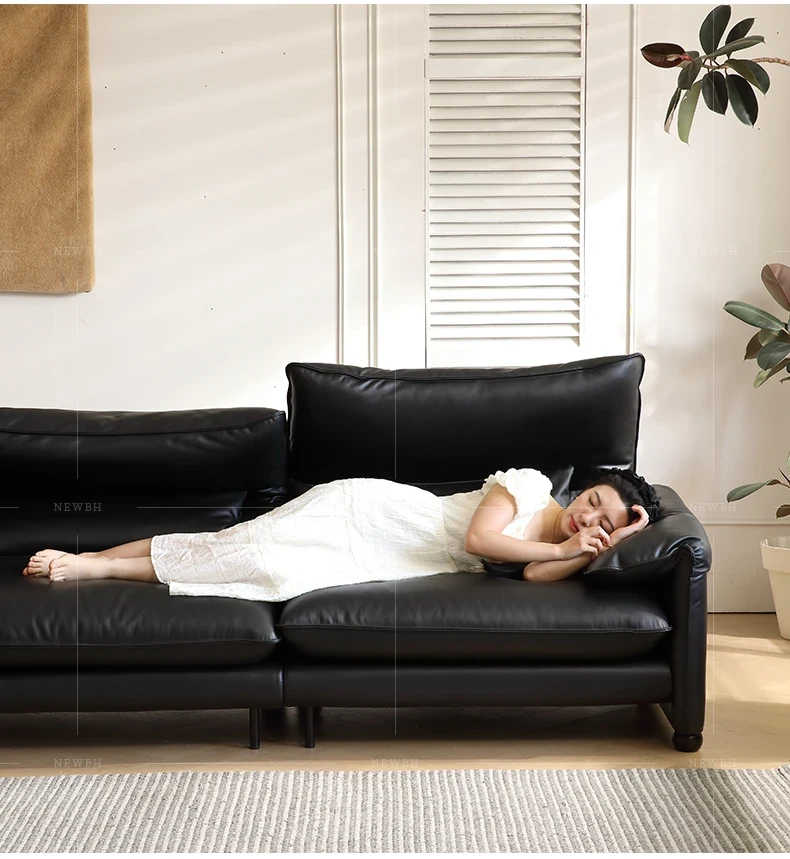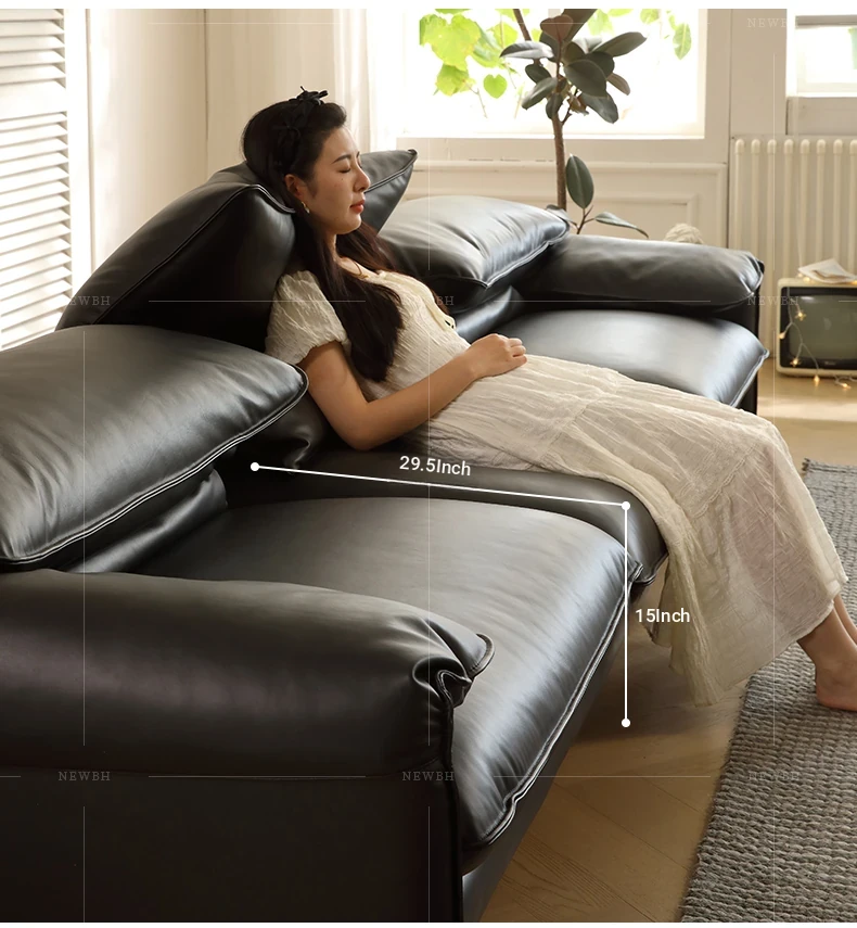 Marlangga Genuine Leather Sofa - High Back with Adjustable Headrest for Small Living Rooms - Full Top Grain Leather Straight Sofa