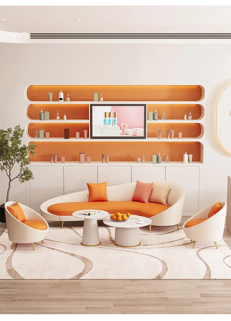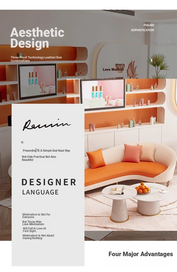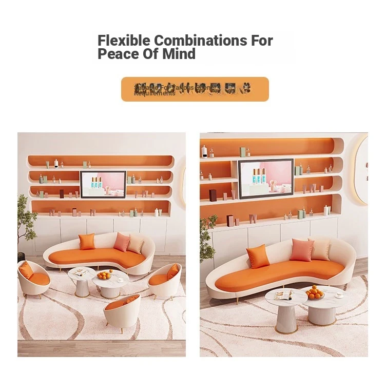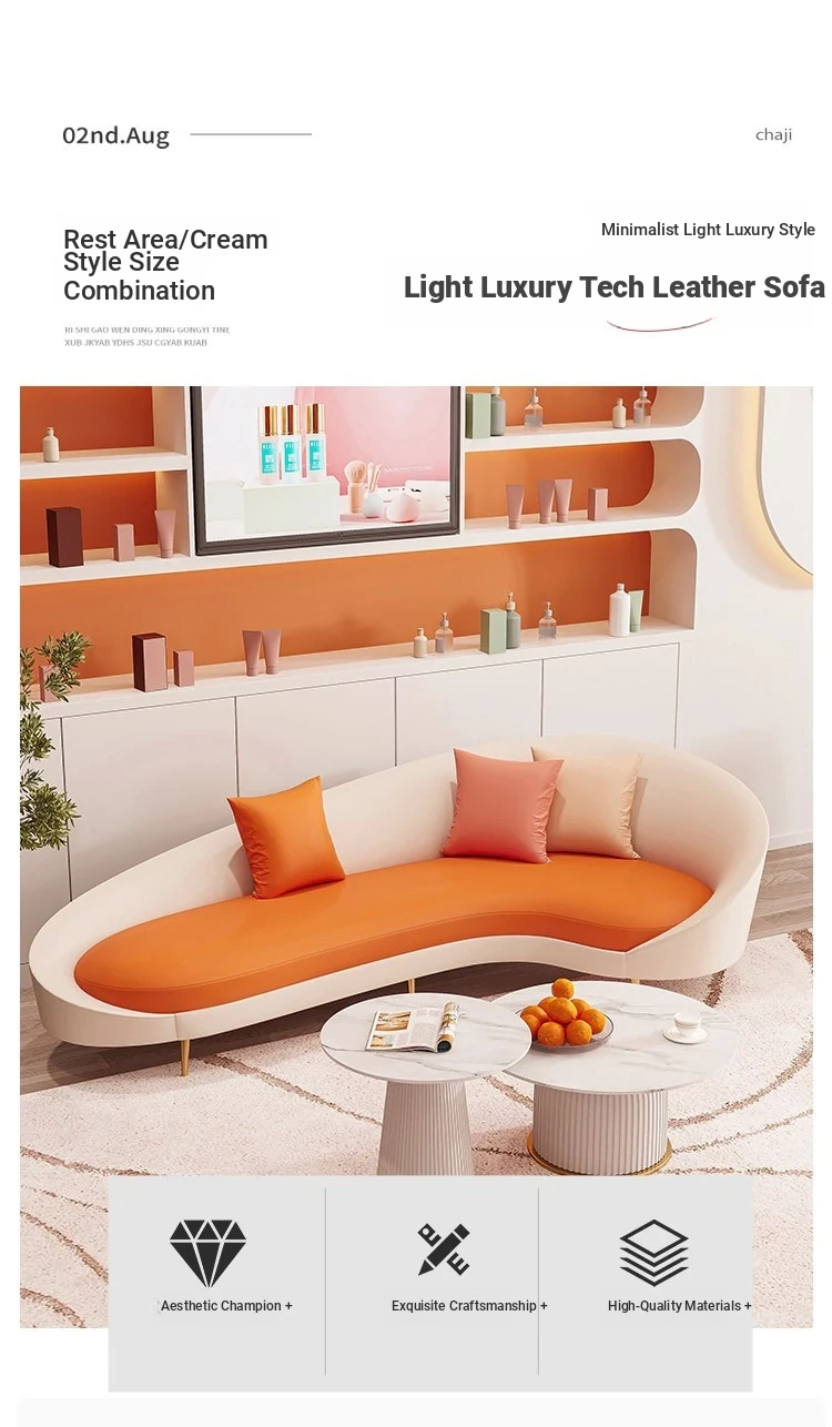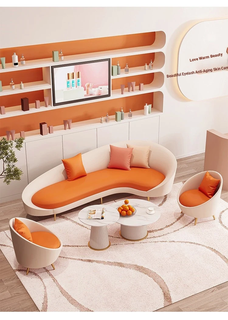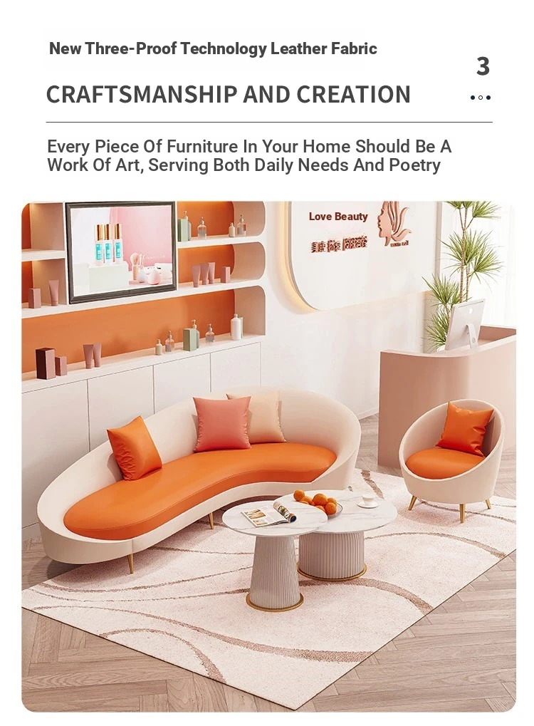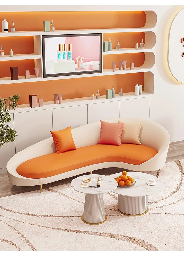 Modern Curved Sofa for Beauty Salons - Luxurious Yet Affordable Tech Fabric Couch for Small Spaces - Minimalist Design for Stylish Living Rooms and Clothing Stores - Cat Paw-Friendly