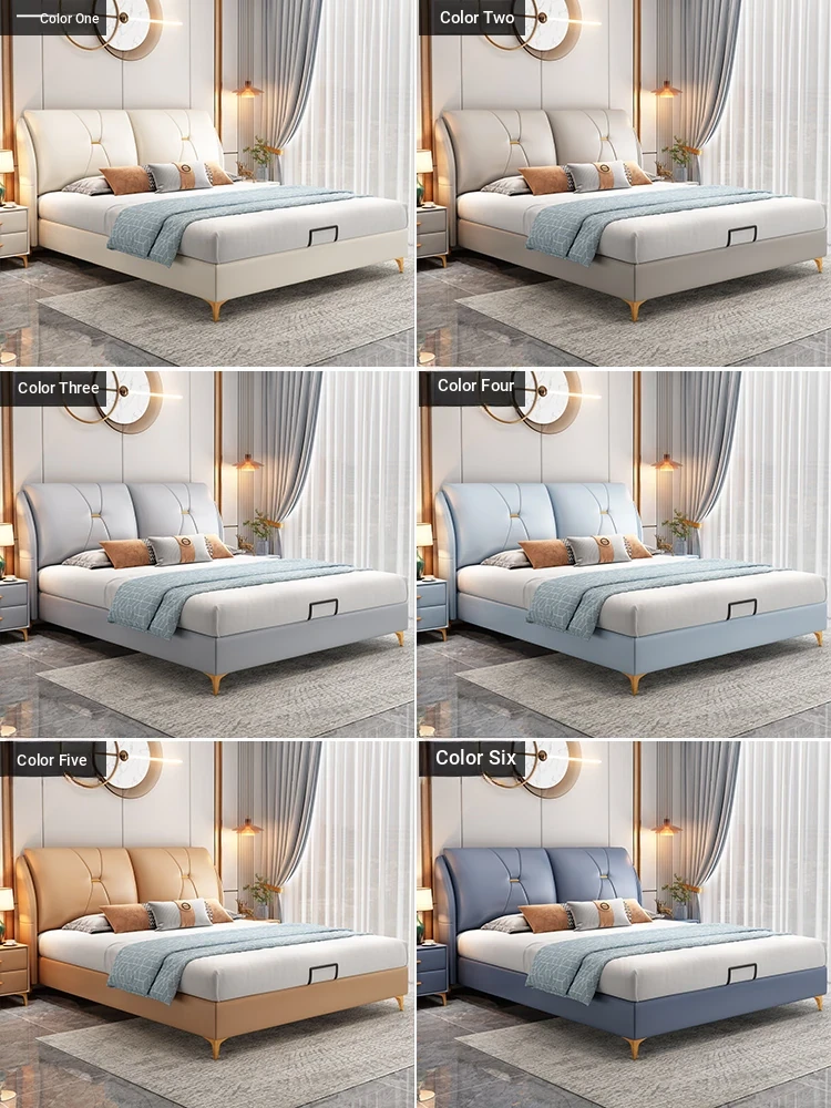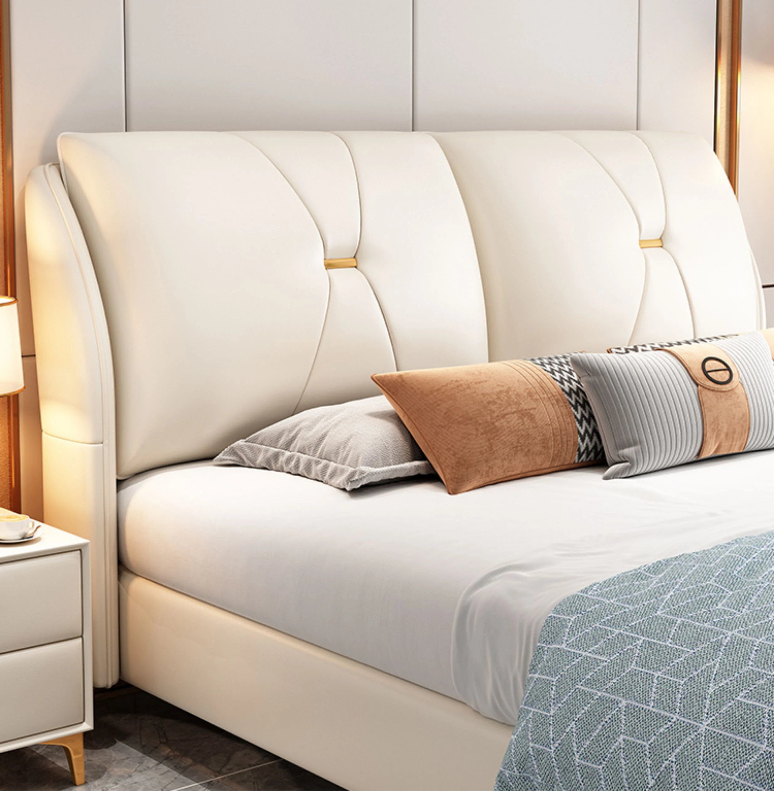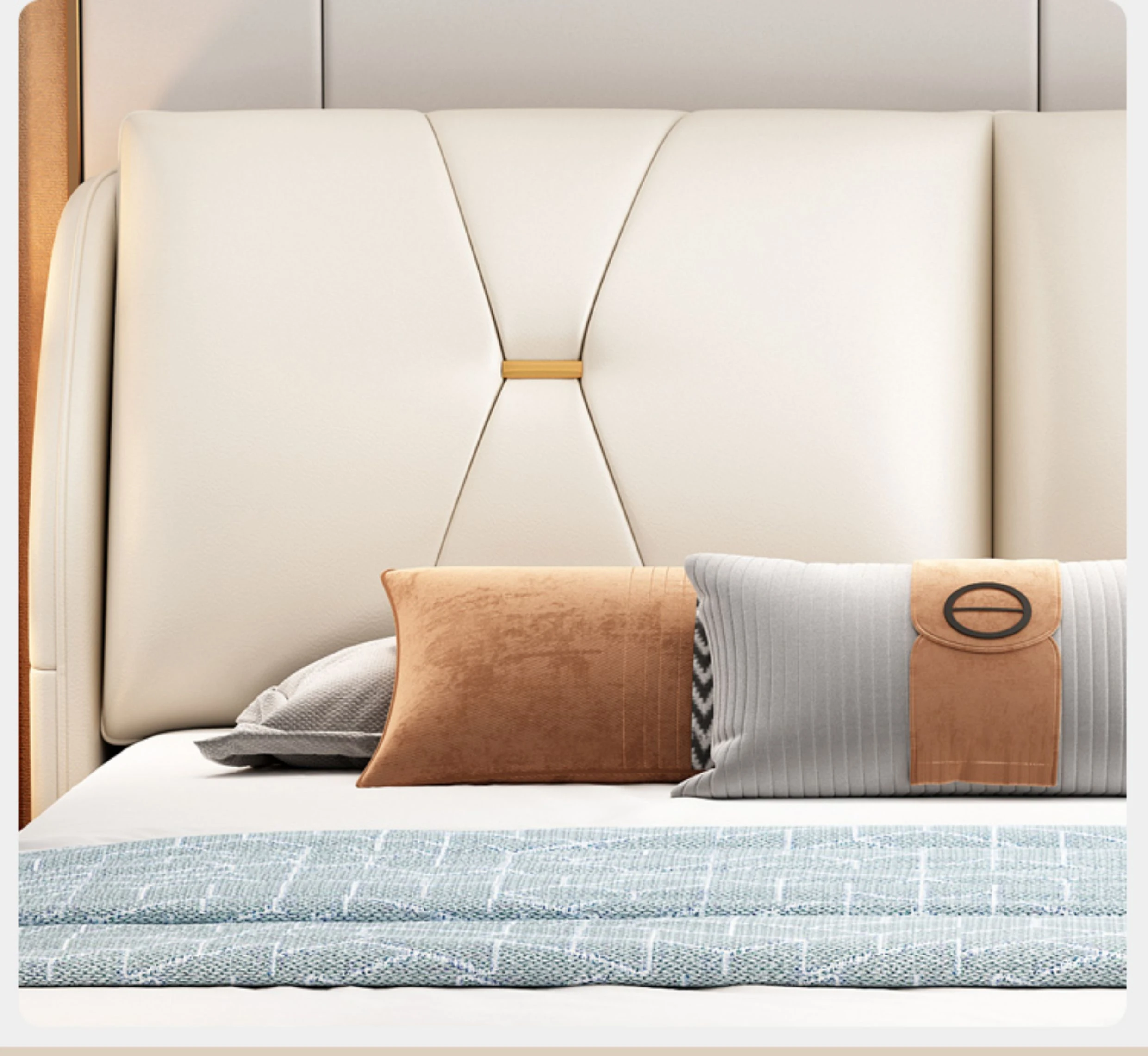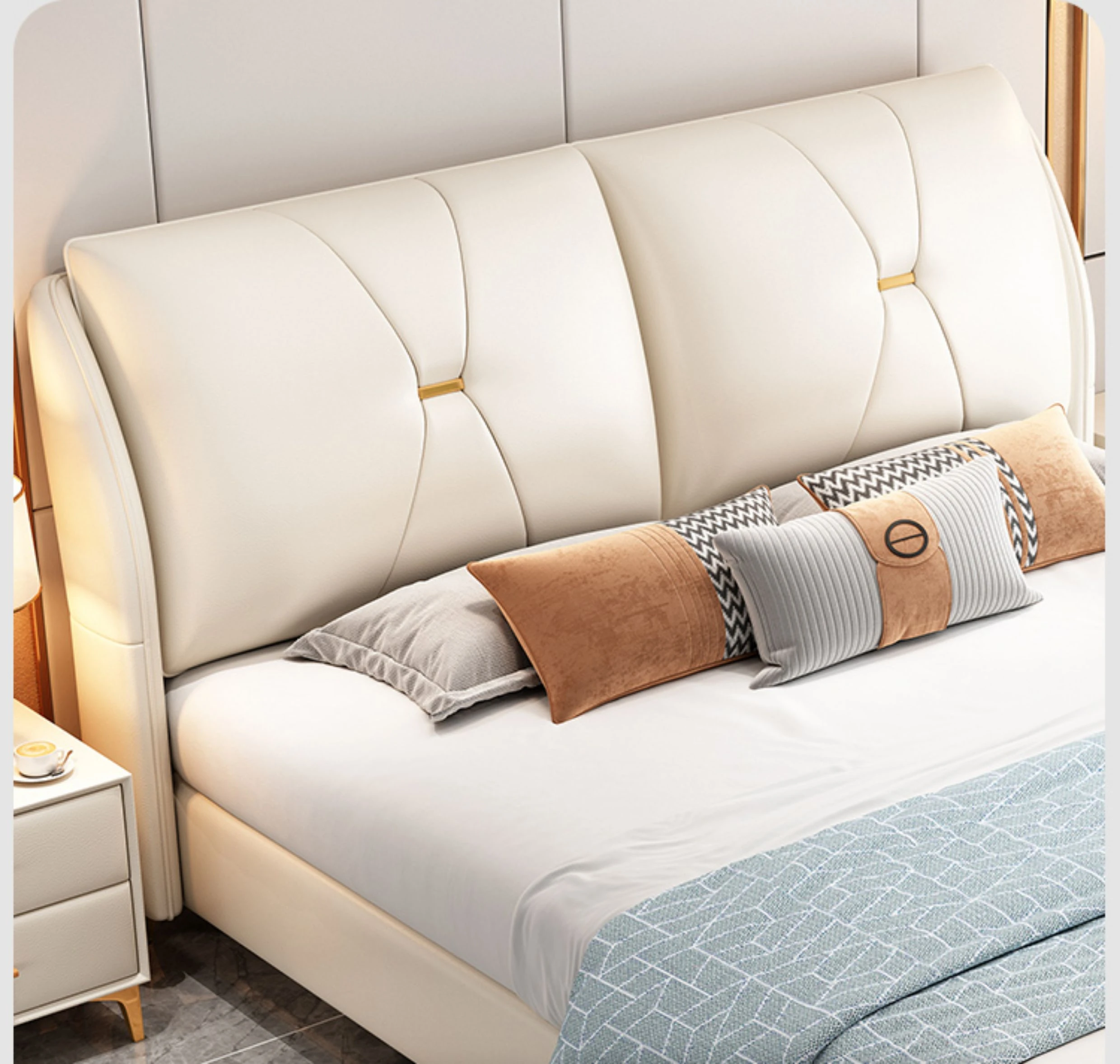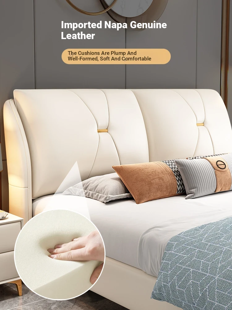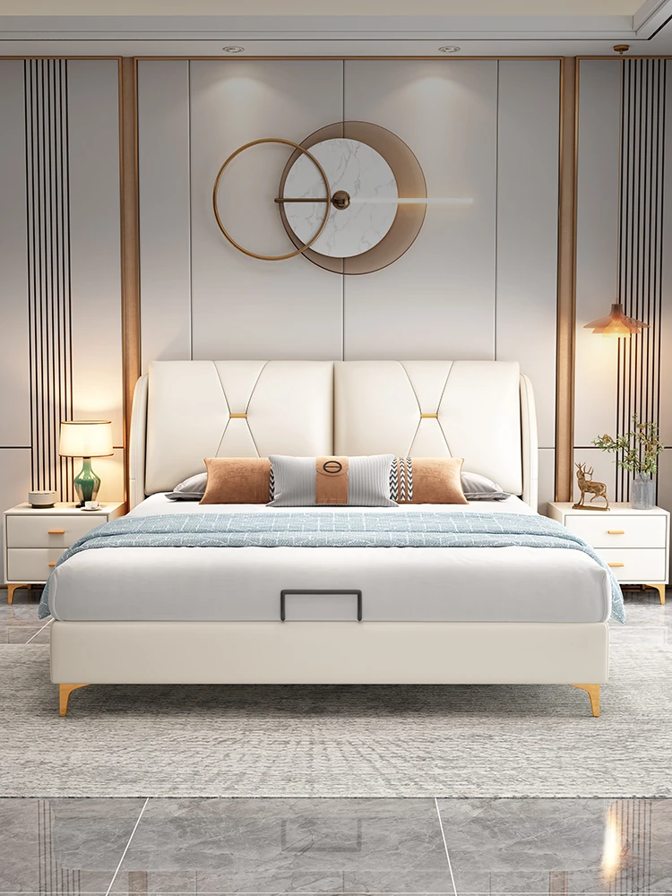 Modern Minimalist Italian-Style Luxury High-Storage Bed for Master Bedroom - 2025 New Arrival Cream Faux Leather Double Bed for Couples