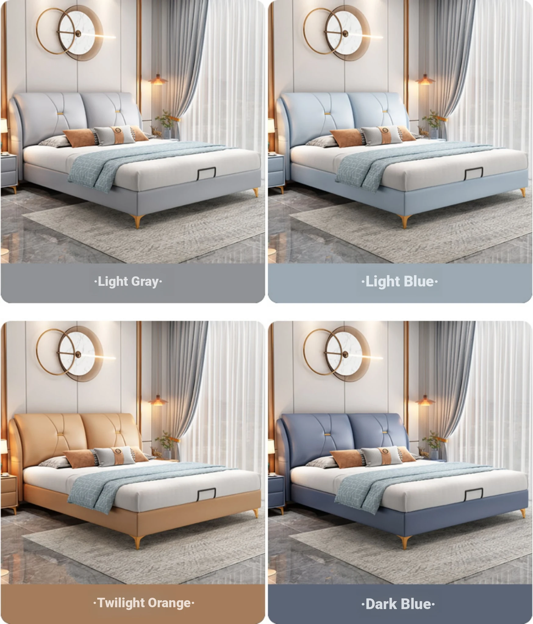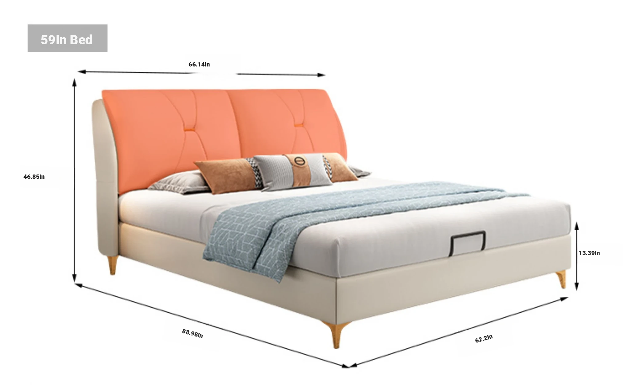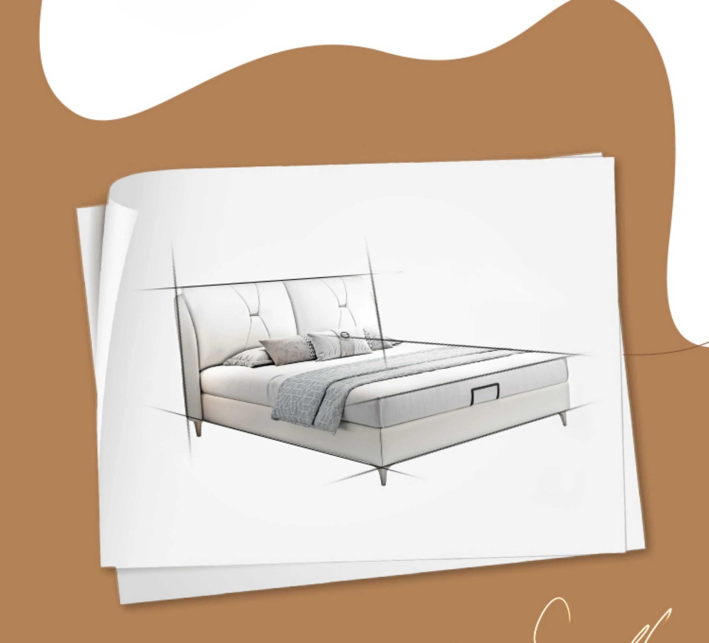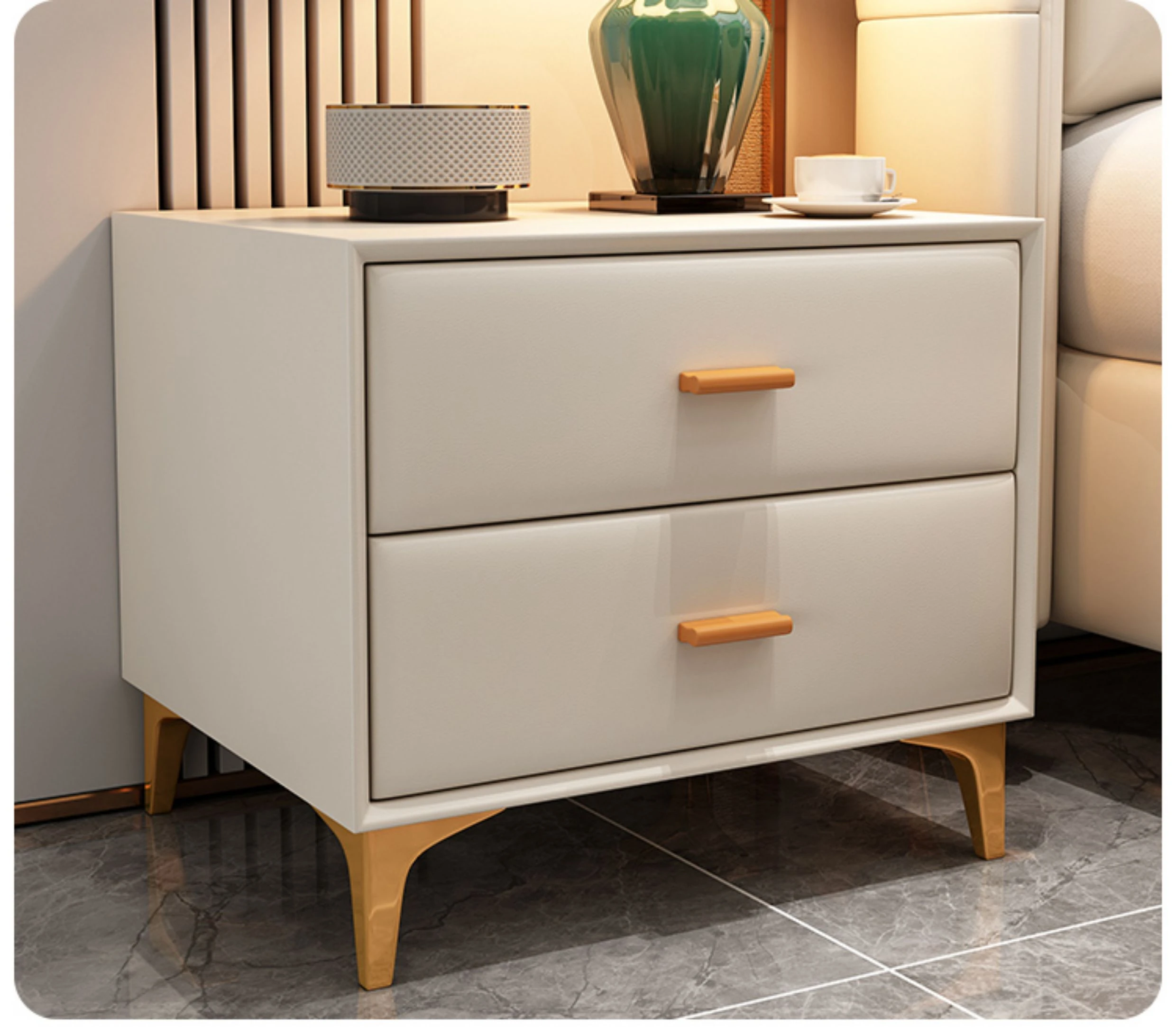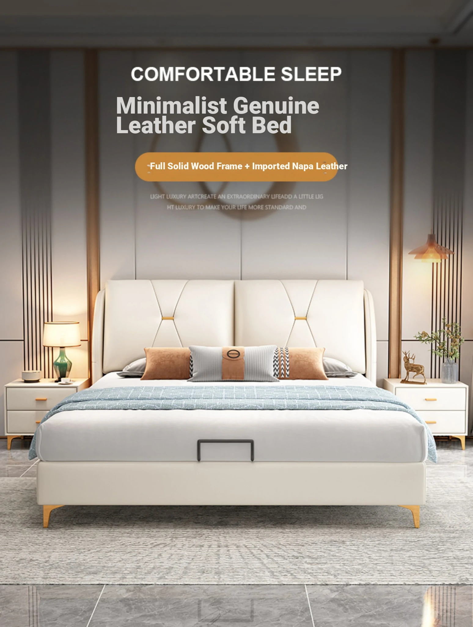 Modern Minimalist Italian-Style Luxury High-Storage Bed for Master Bedroom - 2025 New Arrival Cream Faux Leather Double Bed for Couples