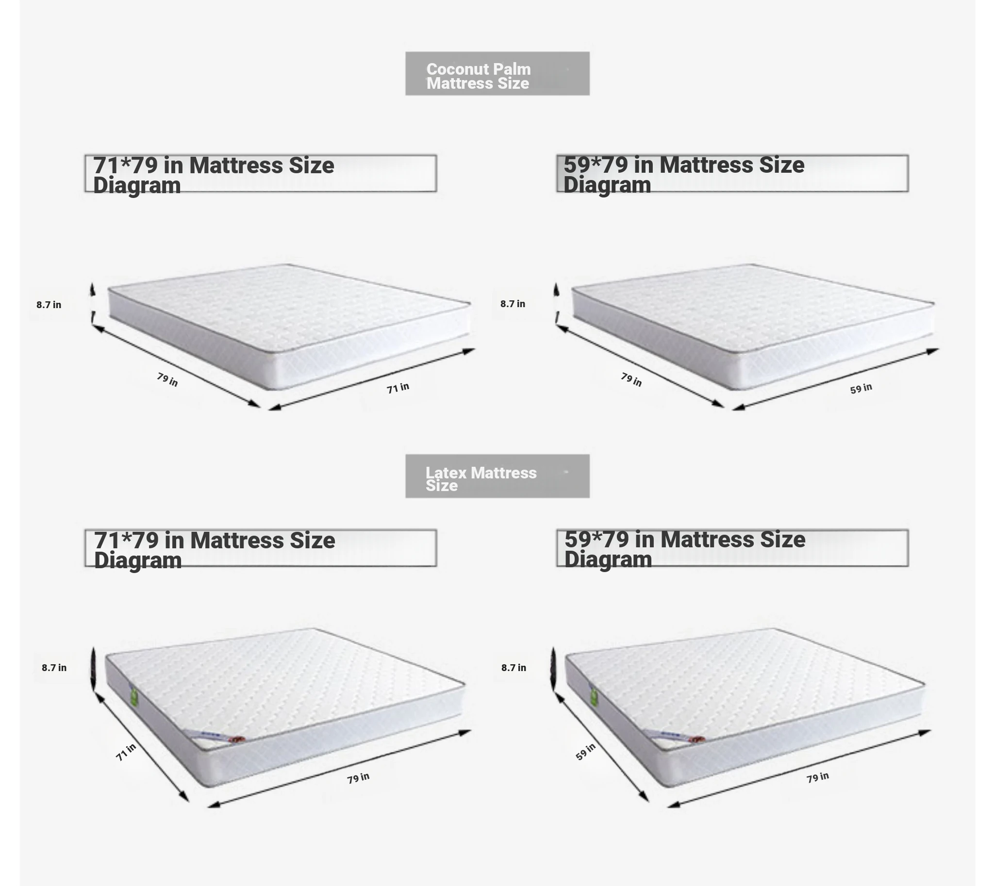 Import pine bare bed +8.66in coconut palm mattress
