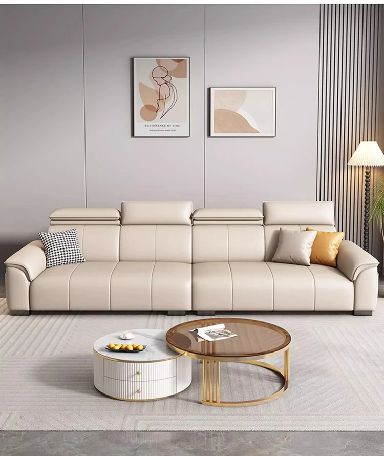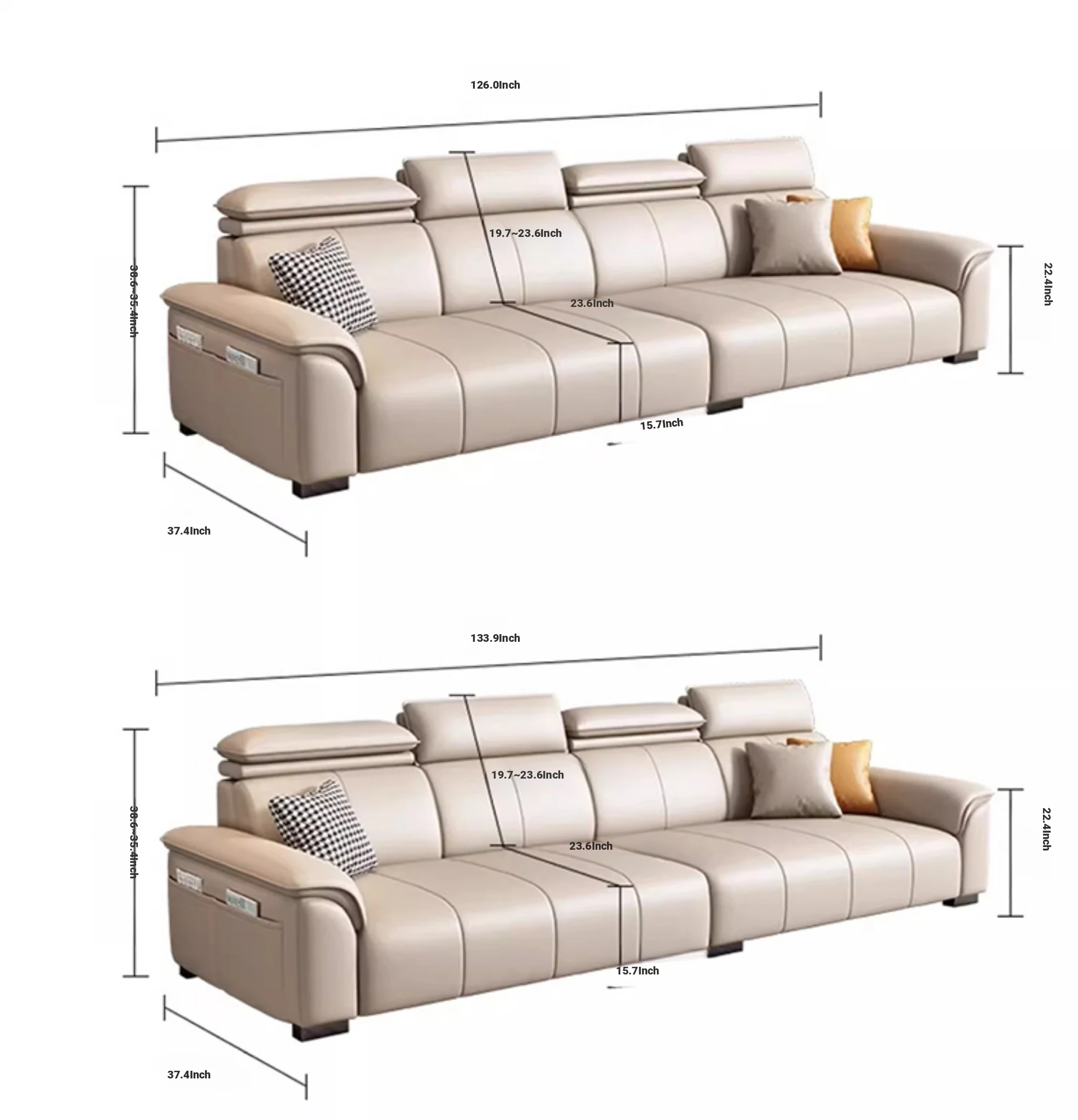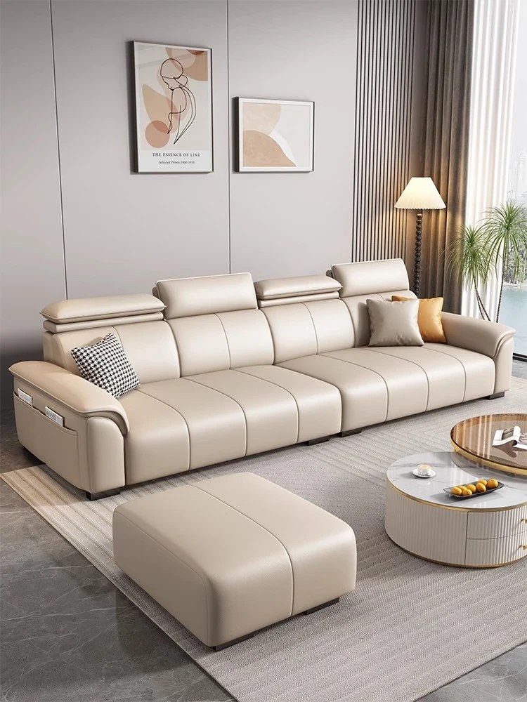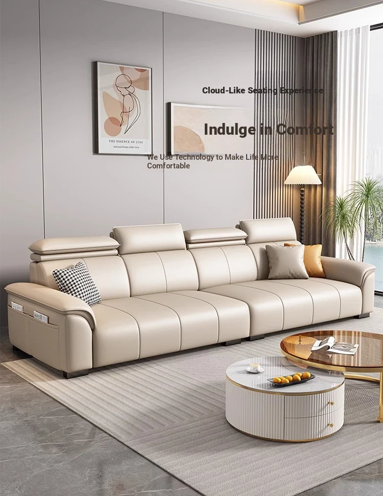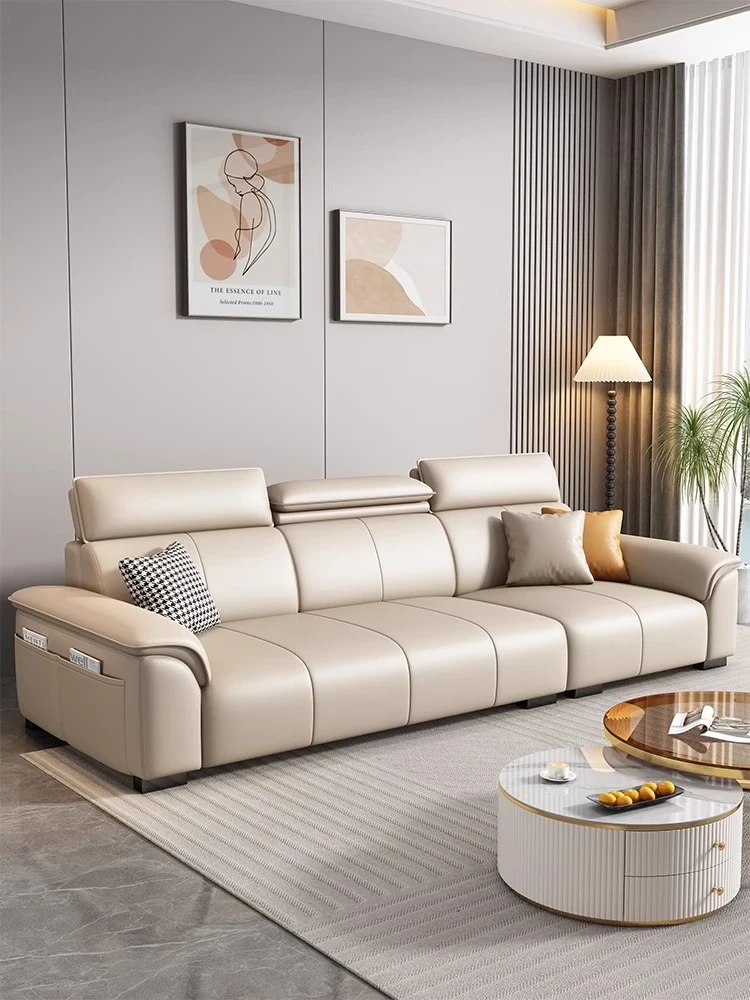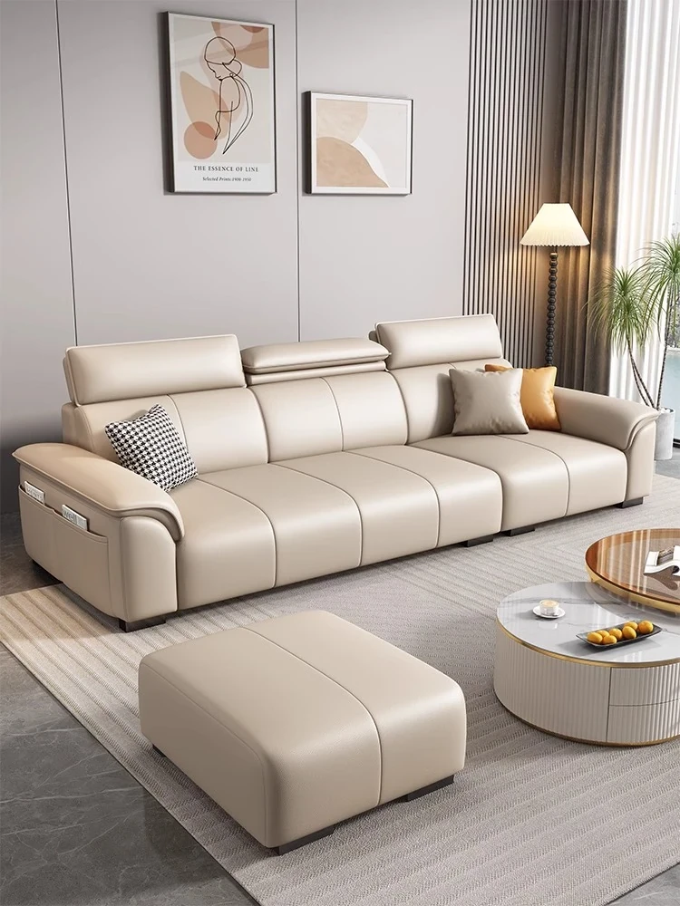Modern Minimalist Luxury Leather Sofa for Living Room - Cat Scratch Resistant, Top Grain Leather, Straight Design, Seats 3-4 People, Perfect for Small Spaces